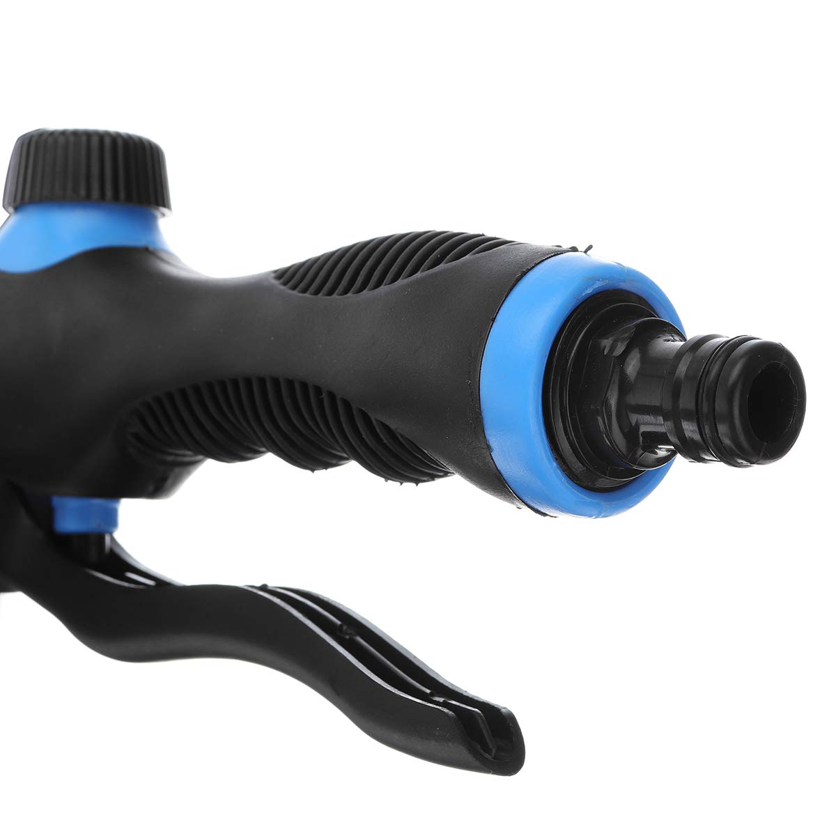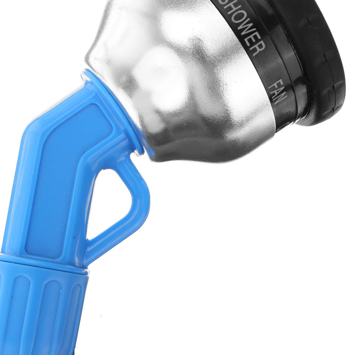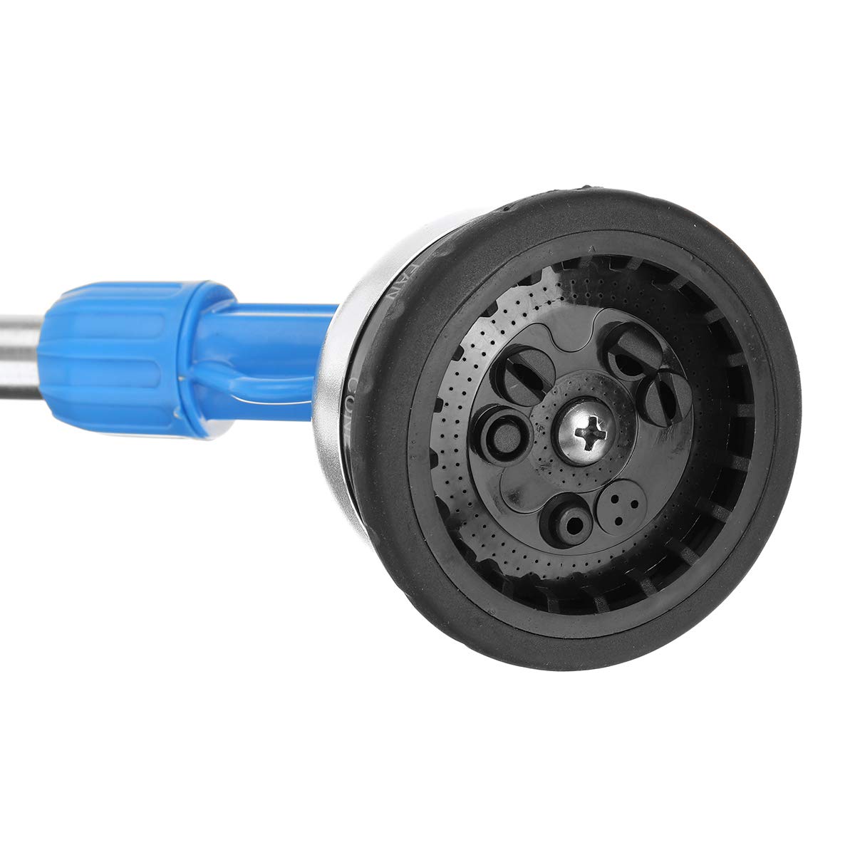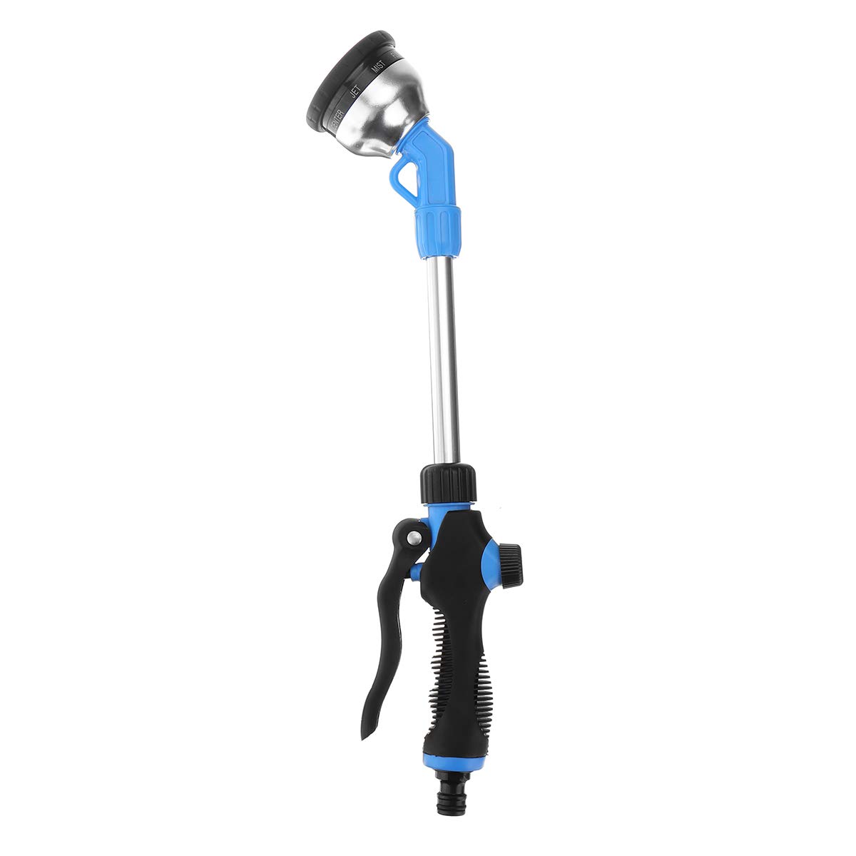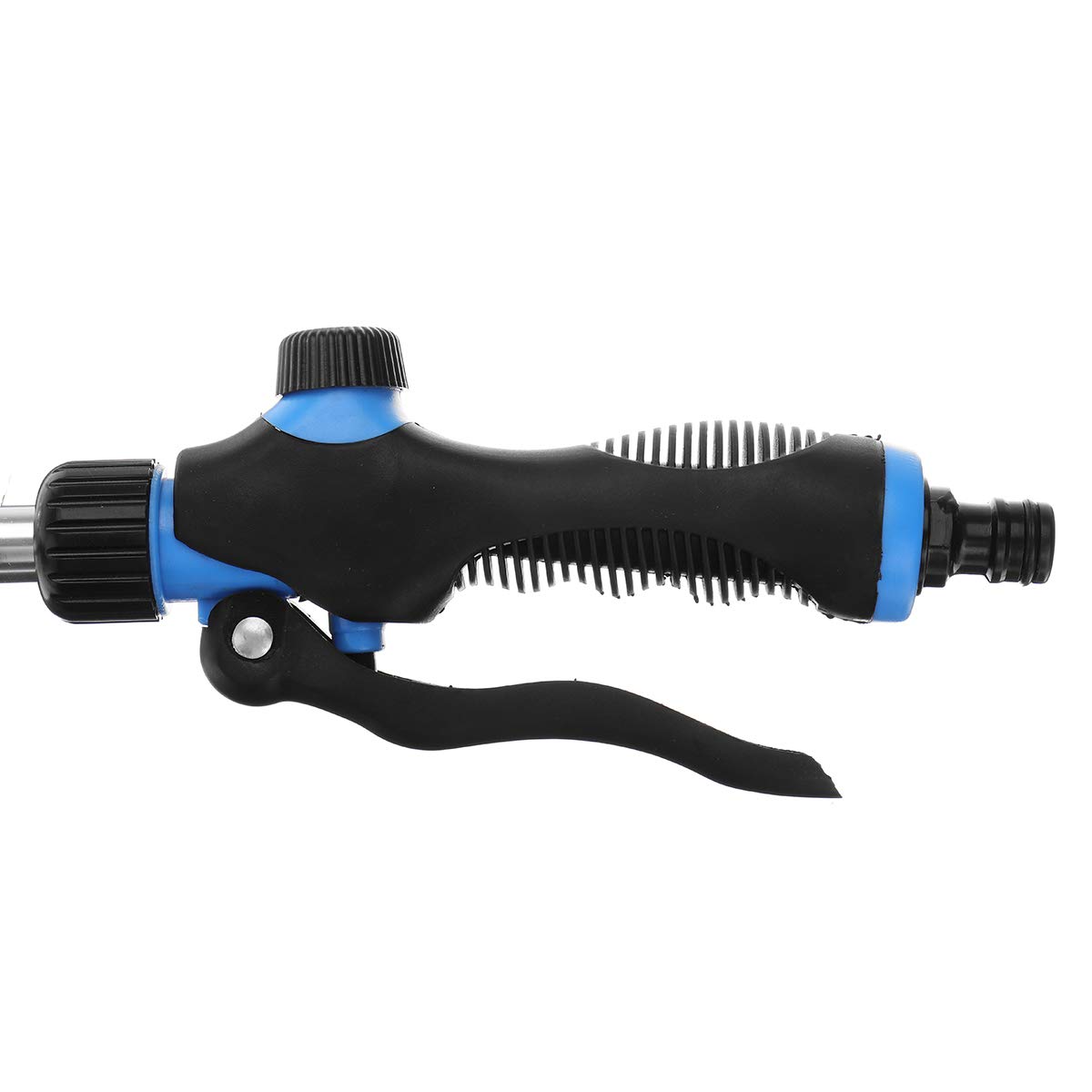 Irrigatore per irrigazione per lavaggio auto multifunzione a manico lungo regolabile per irrigazione dell'acqua per giardino Materiale: ABS + lega di alluminio Colore: blu + nero + argento Caratteristica: ugello regolabile a 9 funzioni Distanza di spruzzo: 15 m / 49.21 ft