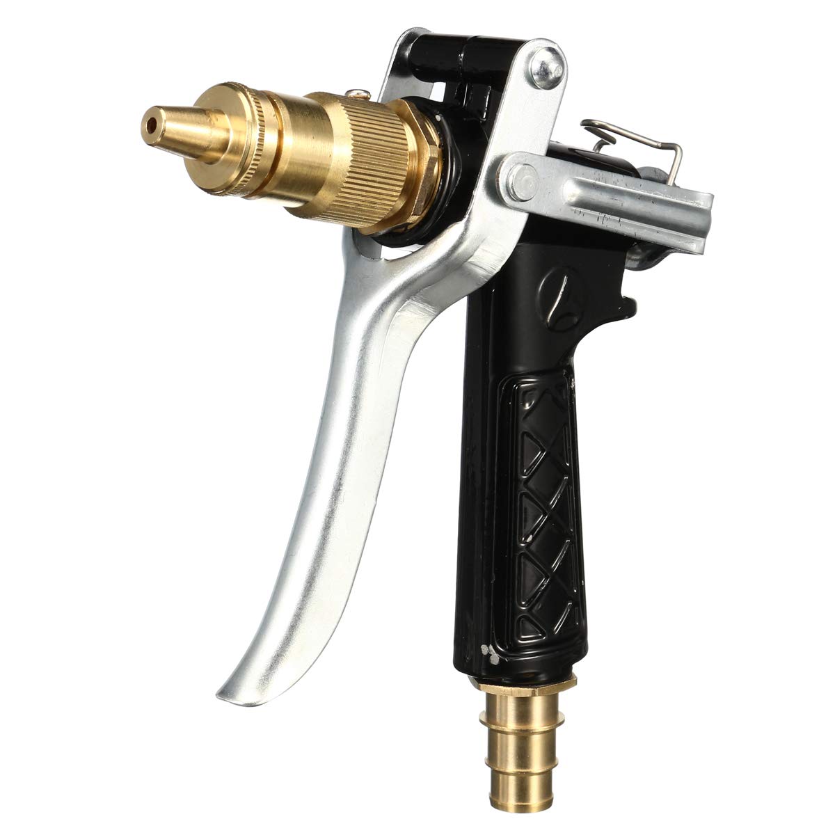 Materiale: rame + alluminio Colore: argento + nero Pressione dell'acqua: 5 kg Distanza del getto :: 8-15 (m) Diametro uscita: 8mm
