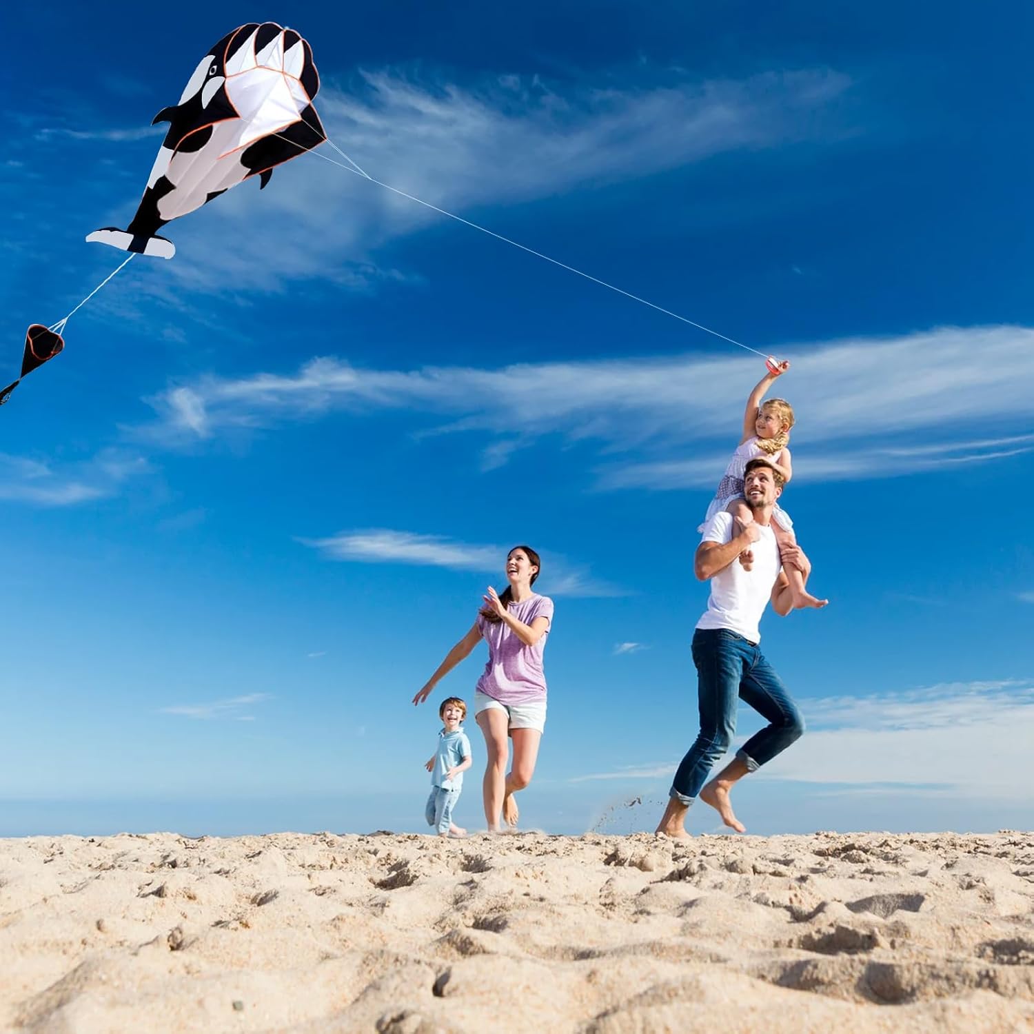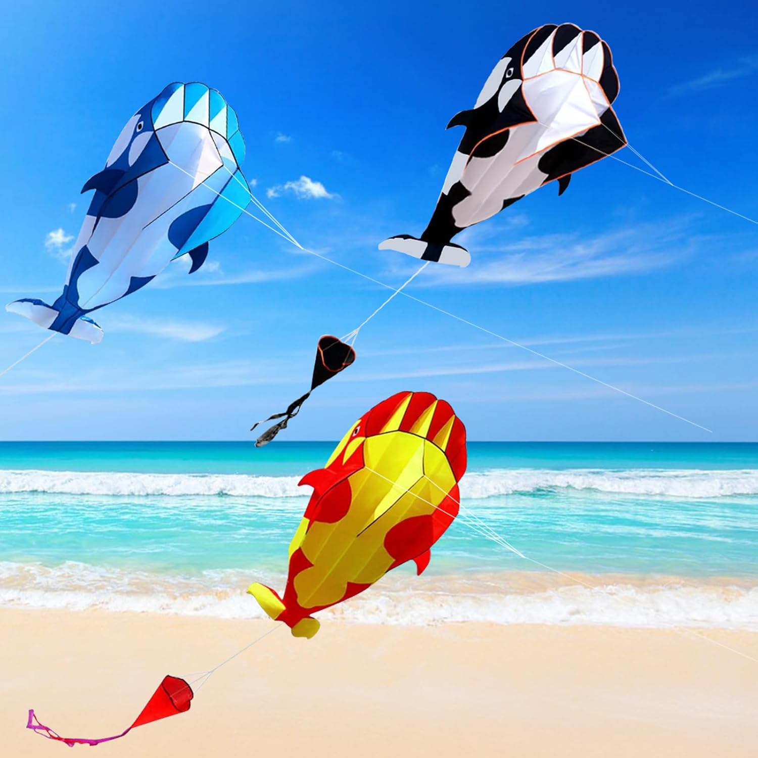 Accattivante design 3D per un'esperienza di volo indimenticabile: il nostro grande aquilone 3D è progettato in modo che il suo design vivace si adatti armoniosamente al cielo azzurro e sembri fluttuare sopra il mare. L'esclusivo look 3D garantisce un ulteriore fascino visivo e rende l'aquilone una vera attrazione nel cielo. Materiale di alta qualità per un divertimento duraturo: l'aquilone è realizzato in poliestere resistente, noto per la sua robustezza e longevità. Grazie all'accurata lavorazione manuale, ogni aquilone è unico e garantisce un'alta qualità che vi regalerà anni di gioia. Maneggevolezza comoda e facile da riporre: l'aquilone è dotato di un telaio flessibile e robusto che lo rende facile da piegare e trasportare. Dopo l'uso, puoi piegarlo facilmente e riporlo nella custodia inclusa. Si prega di notare di proteggere l'aquilone dalla luce solare diretta per garantirne la longevità. Volo stabile e ideale per tutte le età: l'aquilone 3D decolla dolcemente e vola con calma, rendendolo ideale sia per bambini che per adulti. Godetevi rilassanti ore di volo con la vostra famiglia e provate insieme la gioia di volare in deltaplano. Scelta perfetta per varie attività all'aperto: questo aquilone è ideale per l'uso in spiaggia, parco, prati o altre aree aperte. È l'ideale per giornate rilassanti all'aria aperta, gite o avventure con i tuoi bambini. Crea ricordi indimenticabili e goditi il tempo nella natura!