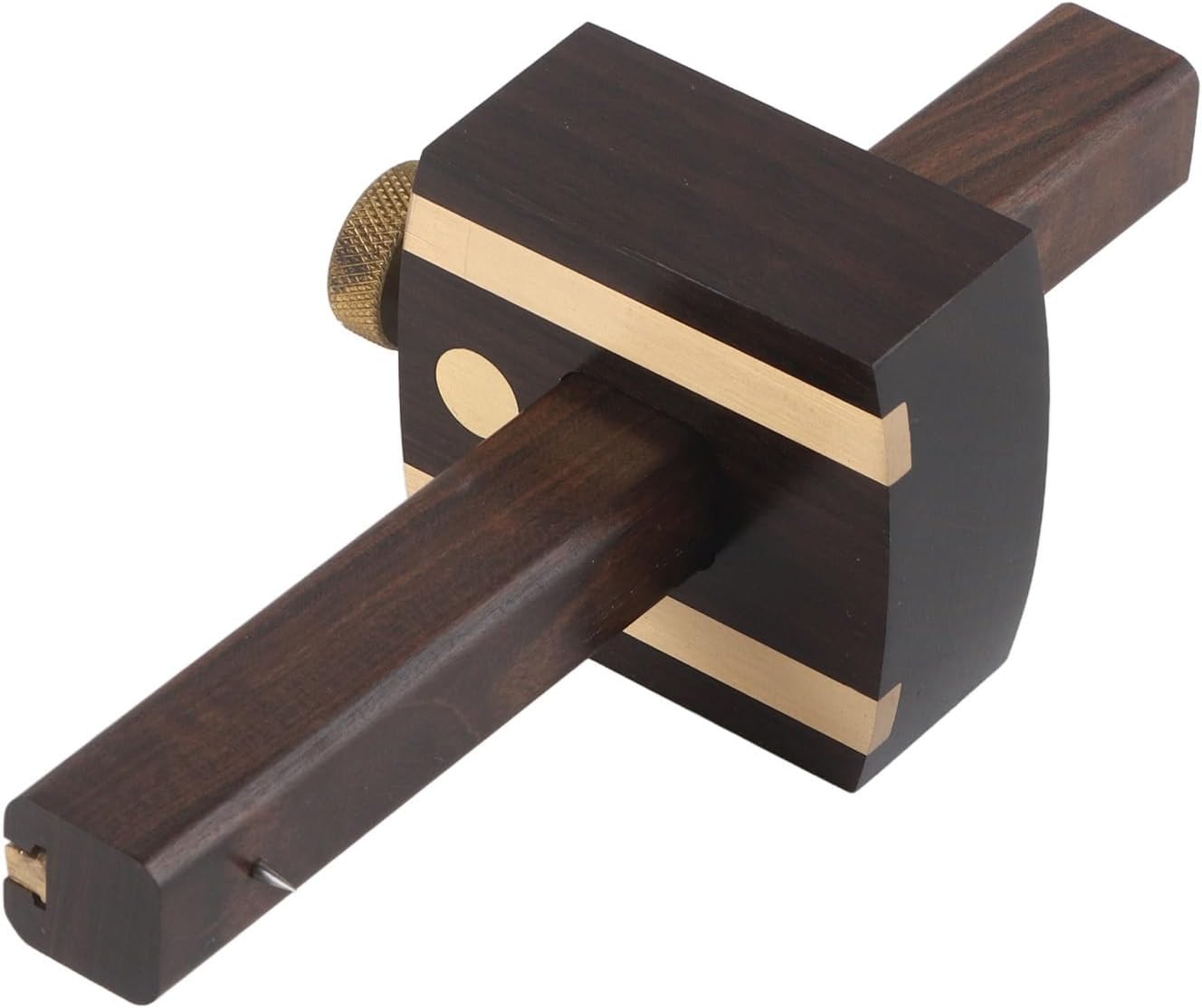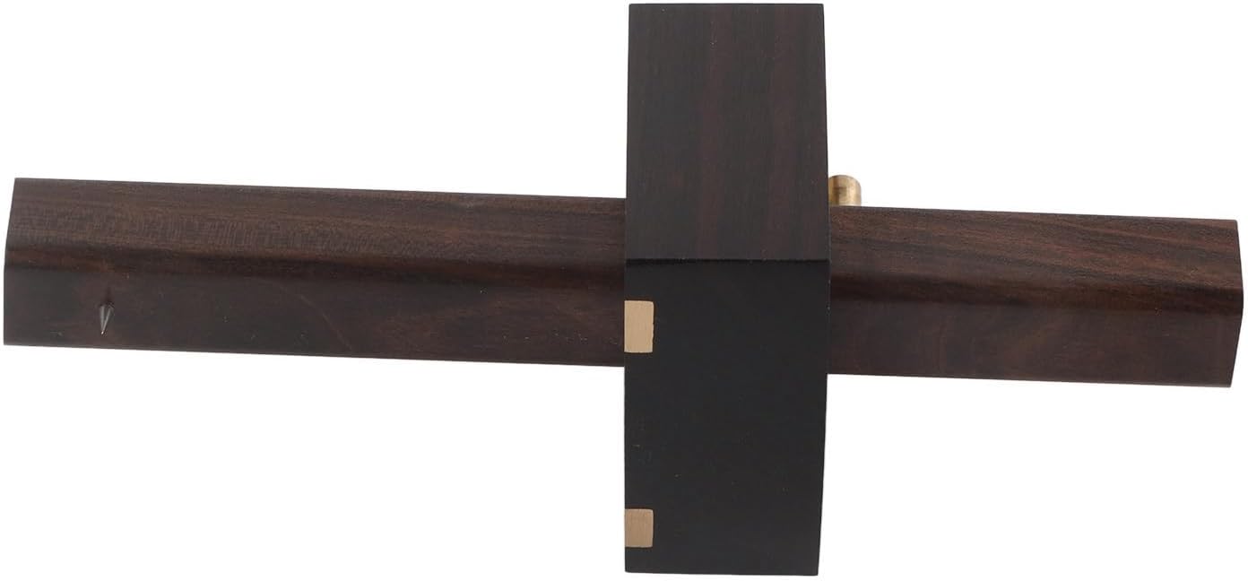 Materiale Prezioso In Legno Di Ebano: Questo raschietto è realizzato con impugnatura in legno di ebano caratterizzato da elevata durezza e finitura naturale che offre una piacevole sensazione al tatto garantendo comfort durante luso prolungato e una resistenza superiore nel tempo Struttura Rinforzata In Ottone Premium: Il supporto strutturale e il righello guida sono costruiti in ottone di altamente resistente allusura assicurando stabilità meccanica precisione nelle misurazioni e durata costante anche in condizioni operative intense A Triplo Ago Per Massima Precisione: Dotato di una configurazione a tre aghi su entrambi i lati lo strumento permette di tracciare linee singole o doppie con grande accuratezza facilitando lavorazioni complesse nel settore della falegnameria e intaglio del legno Ago In Acciaio Ad Alto Tenore Di Carbonio: La punta incisoria è realizzata in acciaio ad alto carbonio temprato altamente resistente allusura e mantiene il filo nel tempo consentendo di eseguire incisioni nette e durature su diversi di superfici lignee Regolazione Semplice Con Viti In Ottone: Equipaggiato con viti e bulloni in ottone anticorrosione che permettono facile aggiustamento della distanza tra gli aghi offrendo flessibilità operativa e controllo preciso durante ogni fase di lavoro