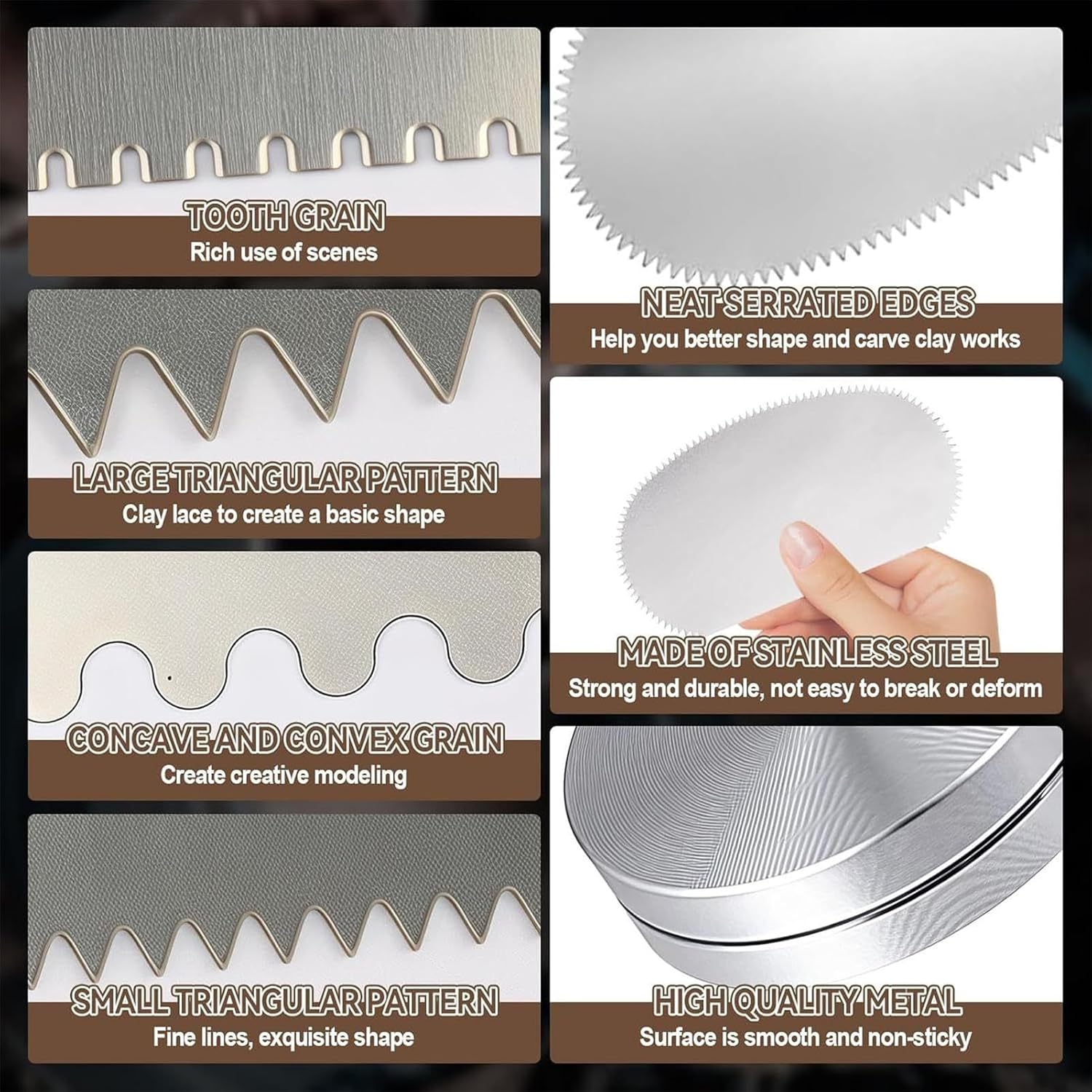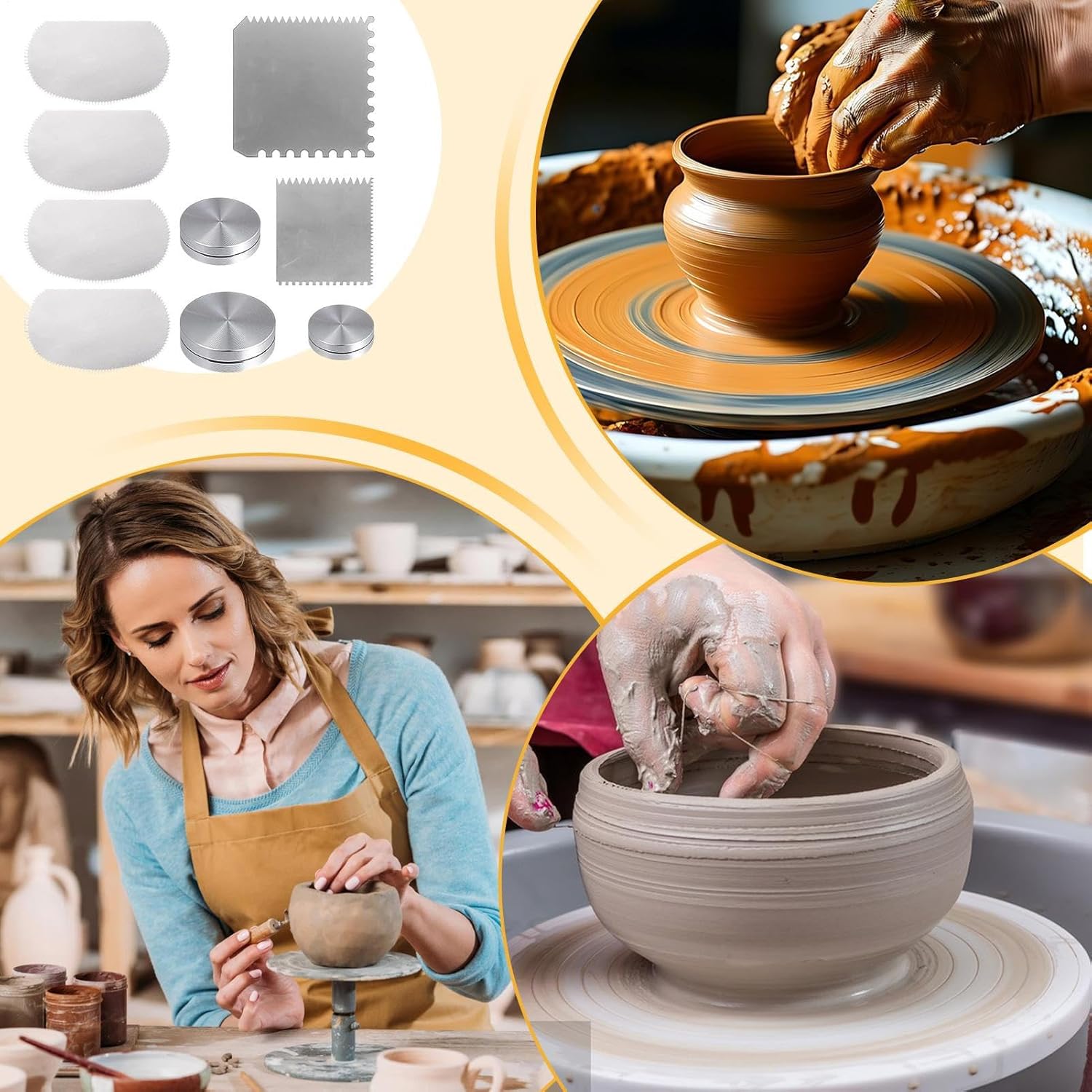 Set di strumenti completo: le nervature in metallo per ceramica includono 3 strumenti rotanti e 6 strumenti di intaglio, per soddisfare diverse esigenze di artigianato garantendo un'ampia quantità per tutti i progetti; questo versatile set di strumenti per ceramica supporta attività di modellatura, levigatura e dettaglio, migliorando la creatività nei disegni artistici in ceramica Design utile: il raschietto per serrating fornisce 3 misure per tagliare e modellare precisi, garantendo flessibilità durante l'uso durante la ristorazione a tutti i livelli di abilità, rendendolo ideale per artigianato, lavorazione del legno o riparazioni domestiche Facile da usare: progettato per la precisione, il raschietto per argilla aiuta i creatori a produrre disegni complessi ed effetti sottili senza sforzo, supportando lo sviluppo delle abilità tra i nuovi studenti e artigiani avanzati che lavorano su sforzi artistici Acciaio inossidabile resistente: questa nervatura scanalata, costruita con acciaio inossidabile, fornisce resistenza per lavori di ceramica impegnativi, rendendolo uno strumento per modellare l'argilla e ottenere disegni precisi con efficienza nel tempo Occasioni versatili: la nervatura in metallo offre prestazioni affidabili nella modellatura e nel dettaglio dell'argilla, accogliendo diversi metodi di ceramica per incoraggiare l'innovazione e la padronanza senza limitazioni, perfetta per officine o spazi di artigianato personali
