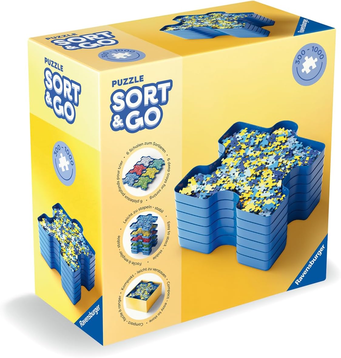 ORDINAMENTO: semplifica l'assemblaggio del tuo puzzle ordinando i pezzi con questi contenitori molto pratici. Per forma o colore, ognuno ha la propria tecnica di smistamento. Questi 6 contenitori di smistamento ti consentono di ordinare, conservare e trasportare facilmente i pezzi del puzzle. ORGANIZZARE: un accessorio perfetto per risparmiare tempo durante il completamento dei tuoi puzzle. Sta a te organizzare e ordinare i tuoi pezzi come ritieni opportuno per migliorare la tua efficienza. Quando vuoi fare una pausa durante il montaggio, impila i contenitori uno sopra l'altro per risparmiare il più spazio possibile. CONDIVIDI: Questi contenitori sono molto pratici per condividere e scambiare i pezzi quando si assembla un puzzle con altri. Inoltre, i contenitori si ripongono facilmente nella loro scatola, per trasportare i pezzi in modo sicuro e pulire rapidamente il tavolo. CONTENUTO: 6 contenitori in plastica blu a forma di pezzi di puzzle. Questi sei contenitori sono impilabili per ordinare e conservare i pezzi del puzzle: niente più pezzi persi. I 6 contenitori possono contenere i pezzi di un puzzle da 1000 pezzi. Dimensioni di ogni vassoio: 19 x 19 x 2 cm UN REGALO IDEALE per adulti e bambini appassionati di puzzle. Per completare il loro kit puzzle perfetto, gli appassionati saranno lieti di ricevere questo regalo molto pratico. Un regalo perfetto e originale per tutte le occasioni: Natale, un compleanno o semplicemente per divertimento