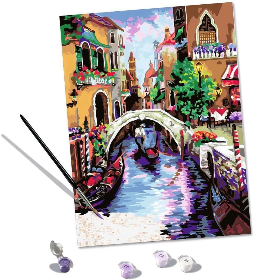 Occupazione creativa per adulti: con i kit completi di Ravensburger CreArt Dipingi con i numeri per adulti, le teste creative possono iniziare a disegnare a partire dai 12 anni dopo averli disimballati Rilassamento e sollievo dallo stress: con una pittura con i numeri, il percorso verso la pace interiore e il relax è molto facile, perché i campi da colorare sono numerati e gradualmente colorati con il colore acrilico abbinato Decorazione da parete creativa: le specifiche precise garantiscono un eccellente risultato di pittura per un fantastico progetto fai da te e una decorazione alla moda in salotto o camera da letto Idea regalo: l'idilliaca pittura con i numeri del motivo vacanza di Venezia è alla moda ed è ideale come regalo per donne e uomini, sia come regalo per Natale, Pasqua o come regalo di compleanno Il set da pittura contiene: colori acrilici in ciotole numerate richiudibili, lavagna da disegno in formato 30 x 40 cm, vernice lucida per la finitura, pennello, istruzioni (lingua italiana non garantita). I colori si asciugano rapidamente, sono a base d'acqua, inodore e non richiedono un detergente per pennelli
