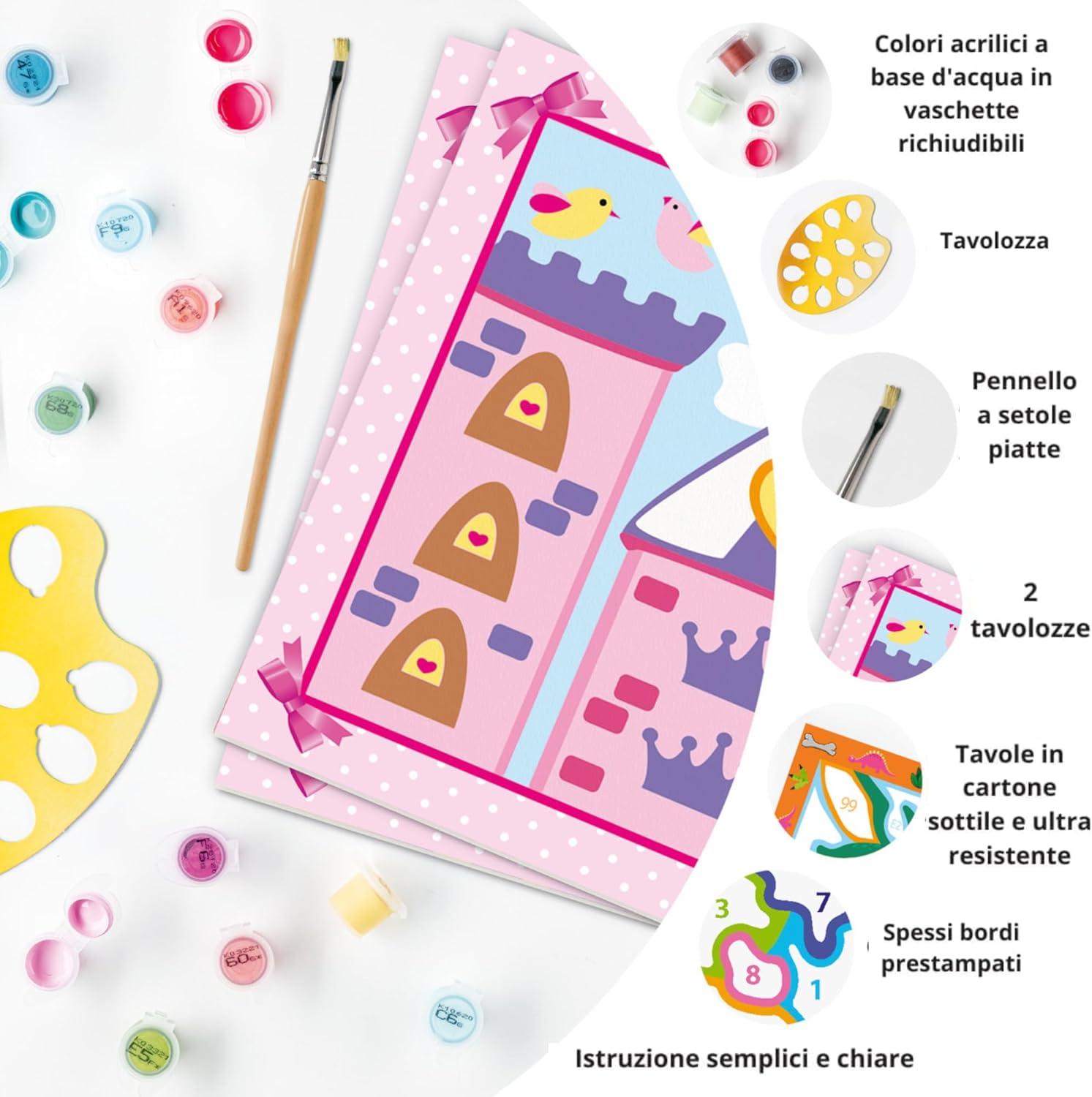 GIOCHI CREATIVI: il regalo per i bambini ideale per chi ama dipingere e vuole creare dei piccoli capolavori su tela grazie all'aiuto di numeri e bordi colorati per riconoscere gli spazi e colorare senza uscire dai margini