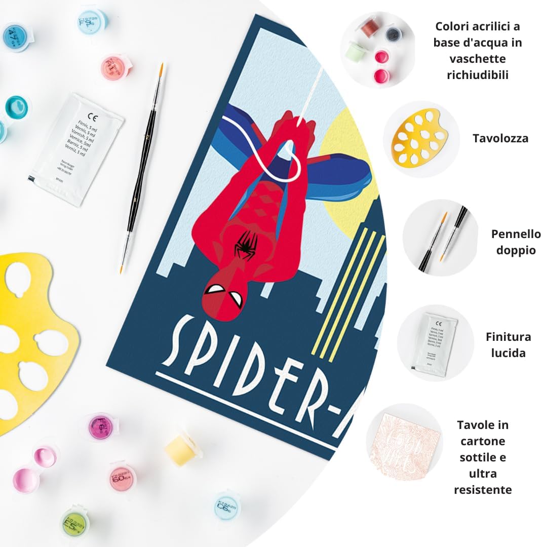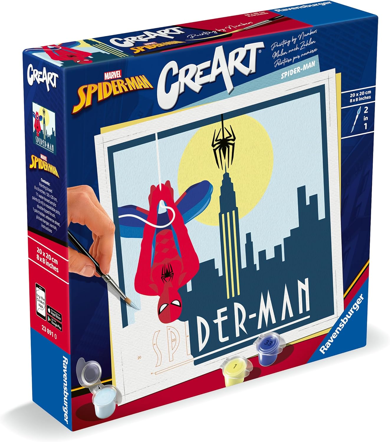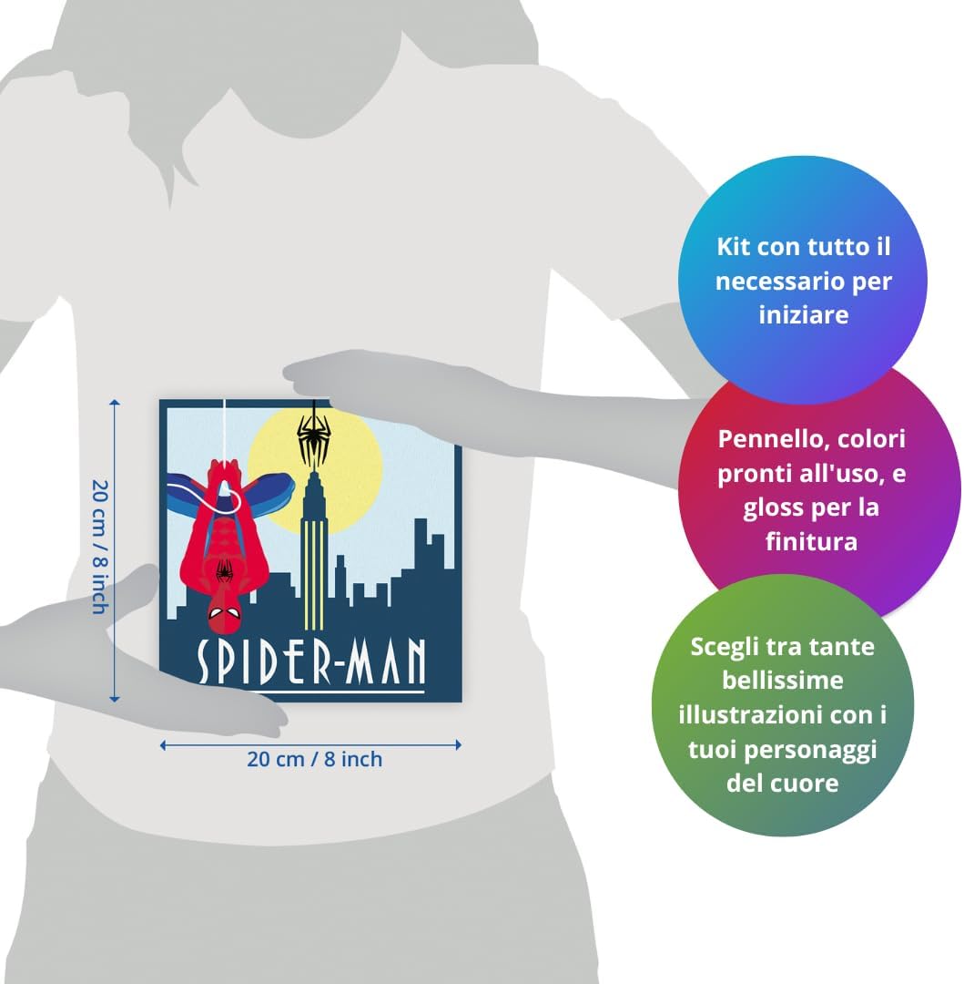 REGALI CREATIVI: il regalo ideale per chi ama dipingere e vuole creare dei piccoli capolavori su tela; basta rilassarsi, prendere in mano il pennello, aprire i barattoli con i colori già pronti all'uso ed iniziare a colorare KIT DI PITTURA A TEMA MARVEL: il kit comprende la tavola prestampata, i colori acrilici a base d’acqua in vaschette richiudibili e un porta tempere; il pennello e un foglio di controllo con campi numerati sono inclusi LIBERA LA FANTASIA: CreArt è il kit di pittura educativo per gli artisti più piccoli e rilassante per i più grandi che aiuta a esercitare la manualità e la motricità, stimola la fantasia e migliora la concentrazione PICCOLI CAPOLAVORI DI QUALITÀ: il kit completo di pittura CreArt garantisce sicurezza e qualità, grazie a una tavola da dipingere resistente e a colori a base d'acqua facilmente lavabili, rendendo l'arte accessibile e divertente; dipingere con i numeri non è mai stato così semplice SCOPRI IL MONDO CREART: puoi scegliere tra tantissimi soggetti e diversi livelli di difficoltà a seconda dei gusti e dell’età; il gioco creativo che permette ai bambini di decorare le loro camerette e agli adulti di rilassarsi colorando