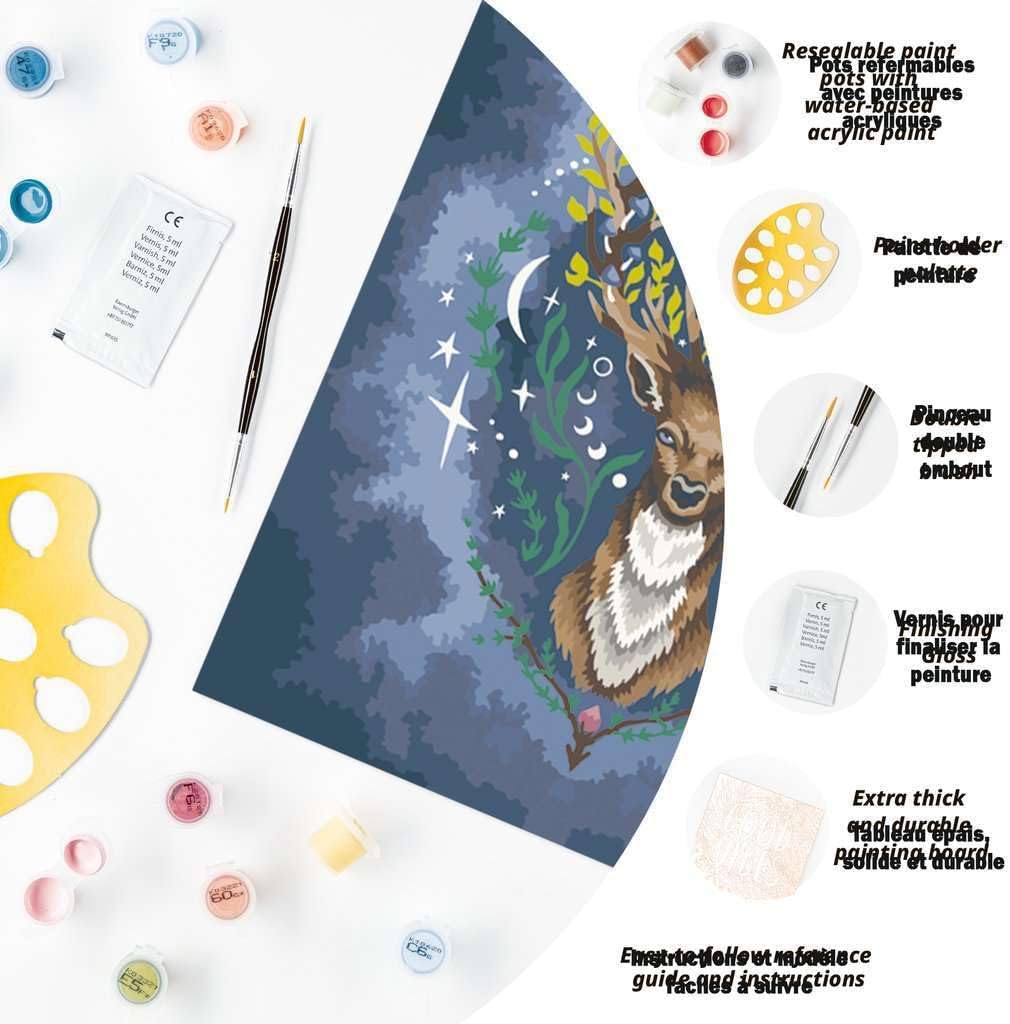 Disimballate e ricaricate energia con CreArt – Dipingere con i numeri, set completo a partire dai 12 anni in su Il percorso verso la pace interiore e il relax è molto semplice: i campi da colorare sono numerati e gradualmente colorati con la vernice acrilica corrispondente Le specifiche precise garantiscono un risultato perfetto per un fantastico progetto fai da te e una decorazione alla moda Il fantastico motivo con cervo dell'artista Pixie Cold è alla moda ed è ideale come regalo per adulti a partire dai 12 anni Il set da pittura contiene colori acrilici già miscelati in ciotole richiudibili e numerate, una robusta lavagna da disegno in formato 30,00 cm x 24,00 cm, vernice lucida per la finitura, un pennello e istruzioni (lingua italiana non garantita)