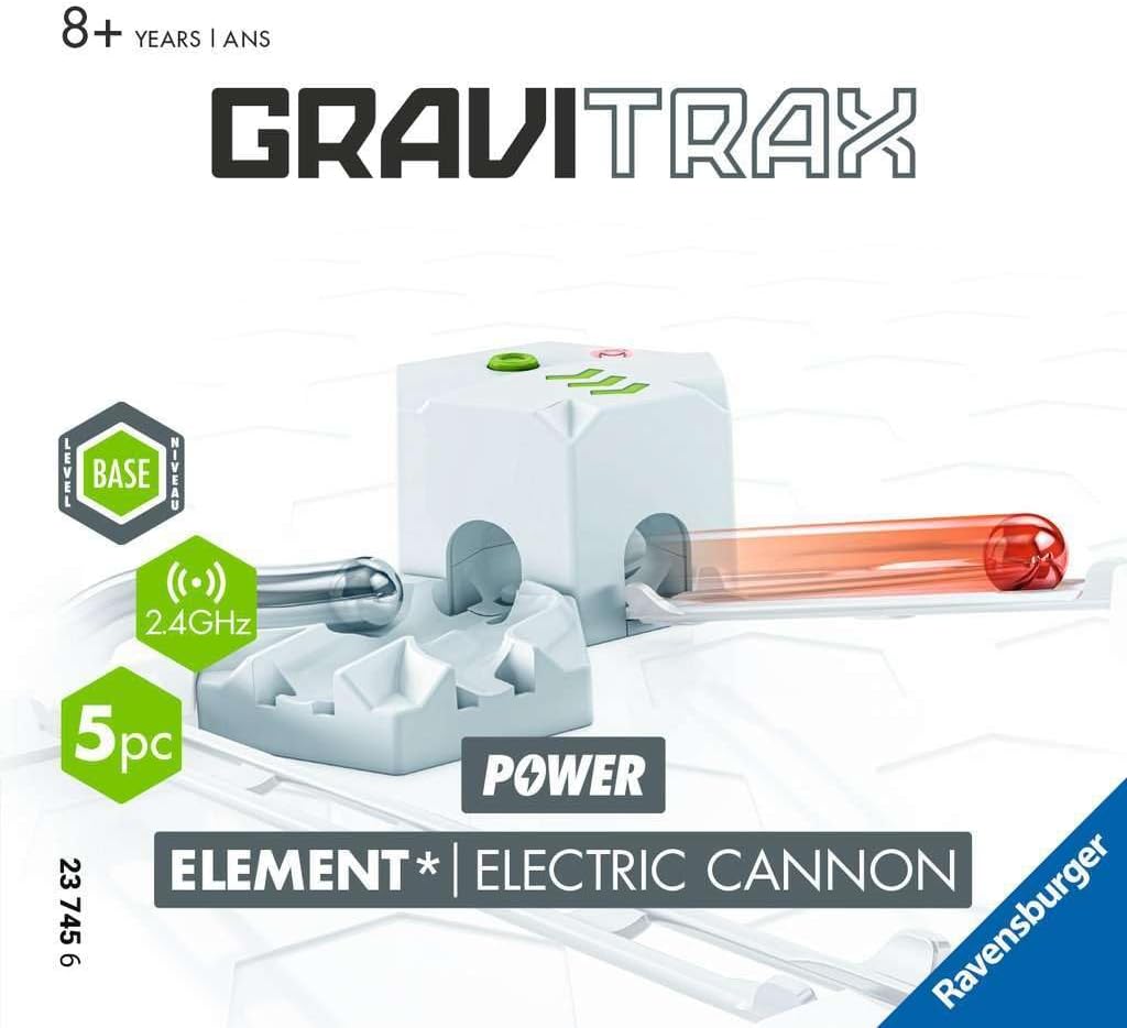 Il Power Element Electric Cannon porta movimento e azione a un nuovo livello! Attivando la pietra d'azione, le sfere ottengono un nuovo slancio. Quanto lontano rotoleranno le palline? GraviTrax è la pista flessibile espandibile e interattiva per bambini a partire dagli 8 anni. Questo prodotto deve essere combinato con uno starter kit e amplia le tracce esistenti Gli elementi elettronici della linea Power sono collegati in modo invisibile e si può così "programmare" la propria traiettoria individualmente. Batterie (2 batterie AAA) non incluse Per bambini a partire dagli 8 anni in su, ottimo regalo per ragazzi e ragazze a partire dagli 8 anni, regalo di Natale, regalo di compleanno o di Pasqua