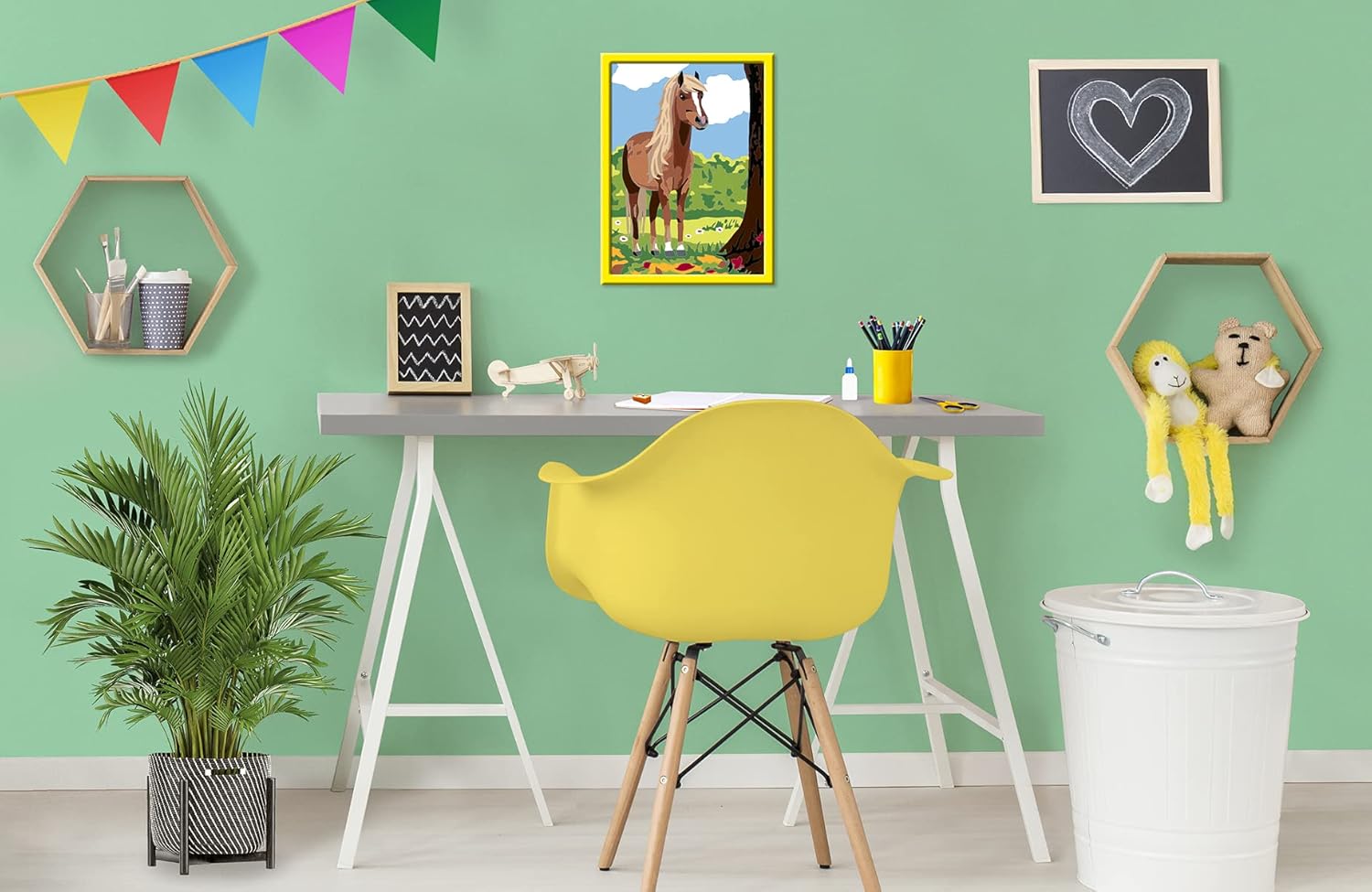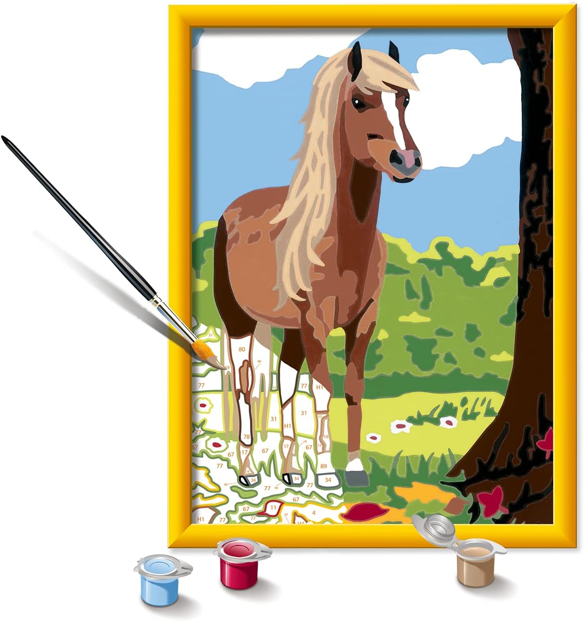 Un kit di medio formato per divertirsi a dipingere con i numeri. Ideale per scoprire il mondo dei cavalli. È facile, bello e divertente grazie alle linee colorate preverniciate e ai numeri che corrispondono ciascuno a un colore. L'attività rilassante necessaria per dipingere permette ai bambini di rilassarsi e sviluppare le loro capacità motorie. I colori acrilici sono di qualità, a base d'acqua e inodore. Non richiedono miscelazione e asciugano rapidamente. Le spazzole vengono pulite con acqua. Una volta dipinto e grazie alla cornice inclusa nel kit, il dipinto potrà essere incorniciato per ammirare appieno la sua opera! Cosa c’è di meglio per risvegliare la tua anima artistica? dai 7 anni. Contenuto: 1 quadro misura 18x24 cm, 15 vasetti di pittura acrilica a base acqua, vasetti richiudibili, 1 pennello, 1 sagoma, 1 cornice, adesivi