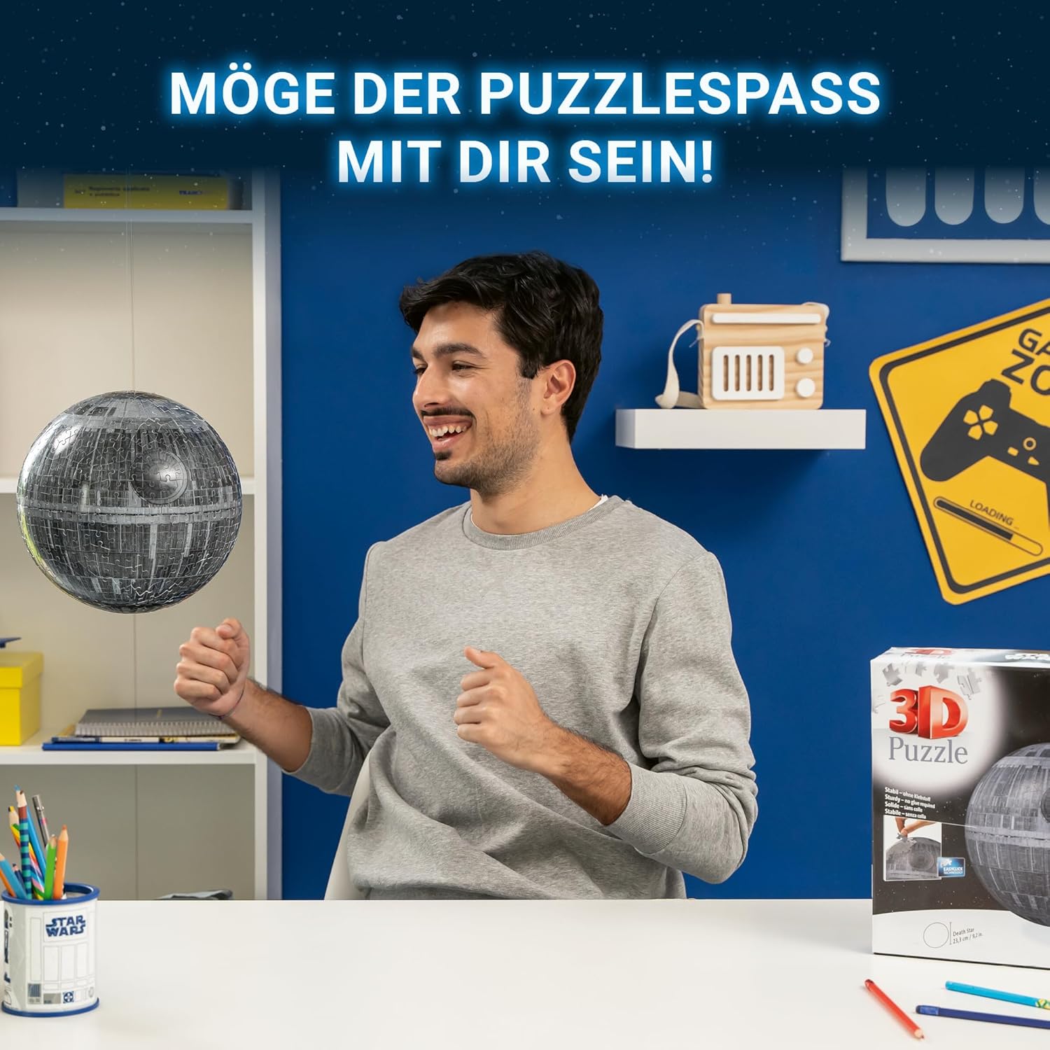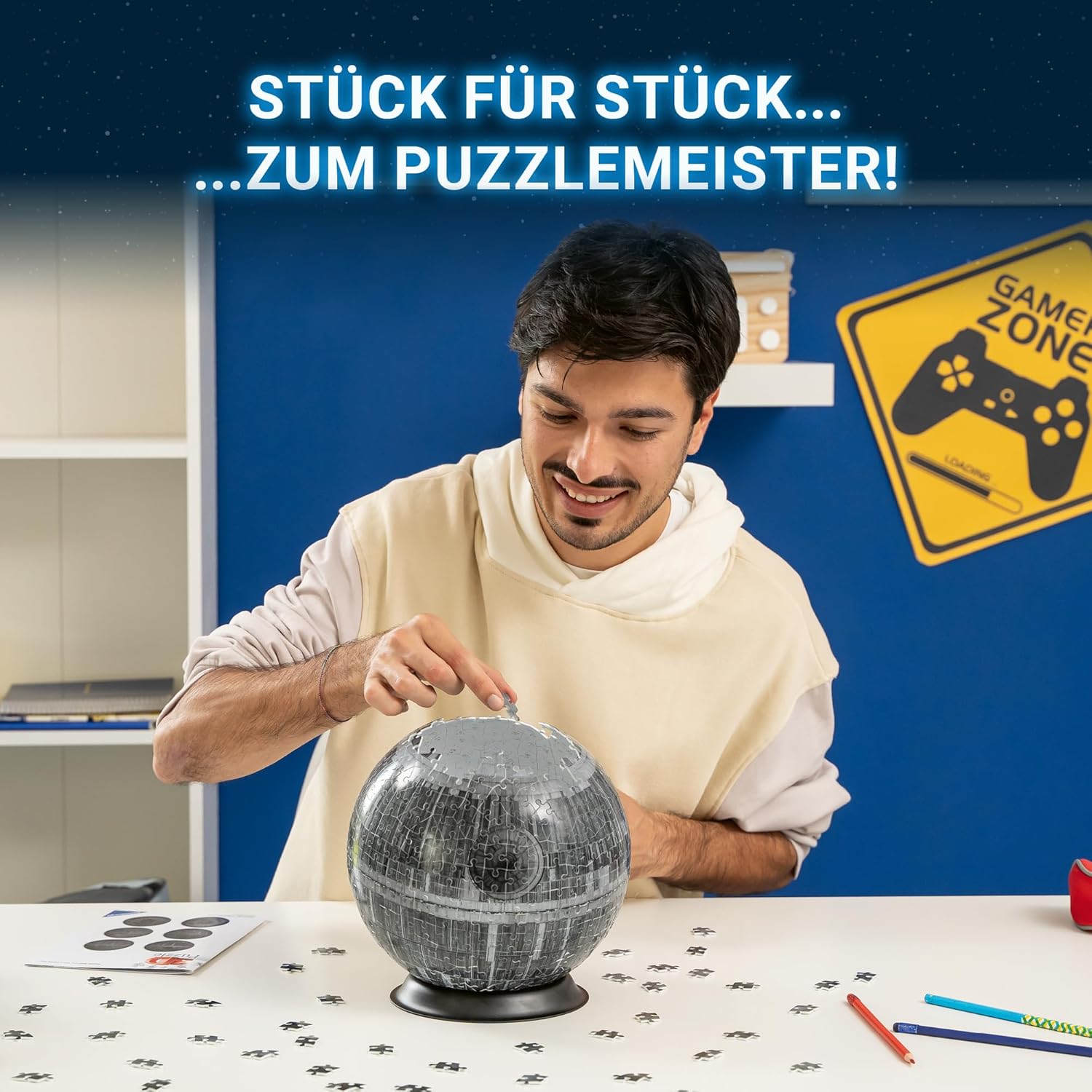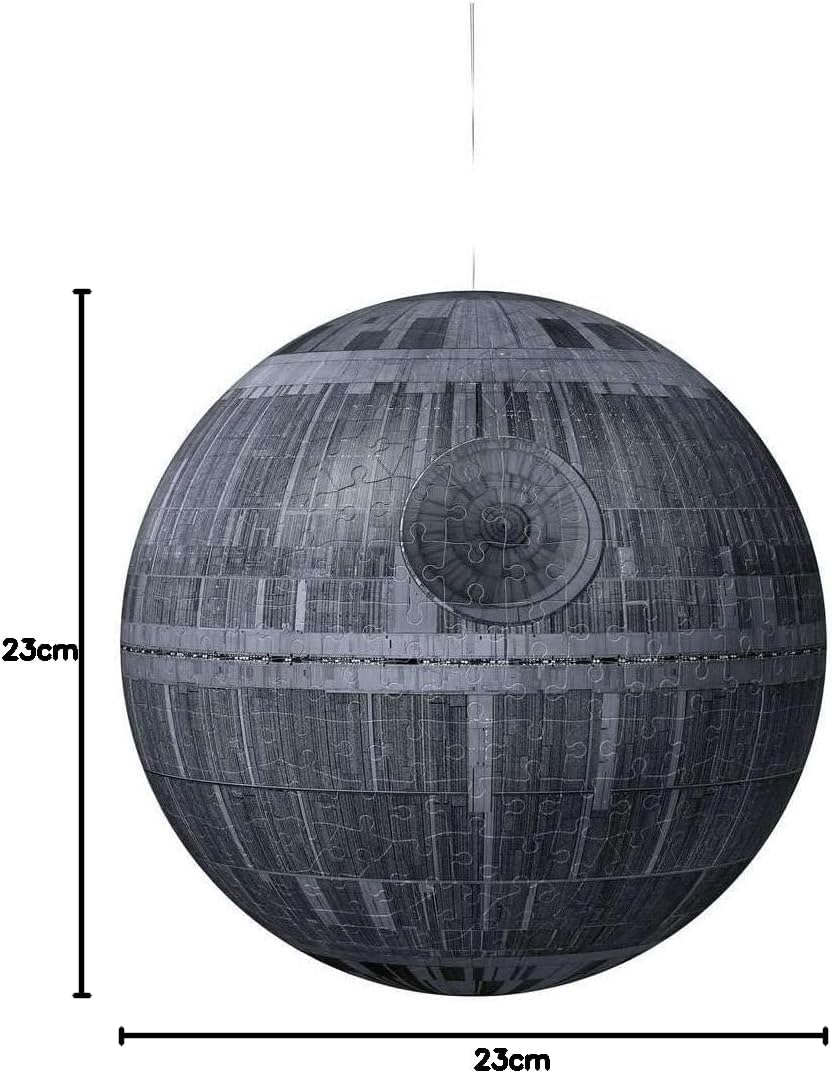 Puzzle nella terza dimensione! L'idea regalo ideale per tutti i fan di Star Wars dai 10 anni in su; Parti in plastica di alta qualità con tecnologia Easyclick per un adattamento preciso - stabile, senza colla. Da 540 pezzi di puzzle in plastica di alta qualità, pezzo per pezzo viene creata una palla puzzle 3D della Morte Nera - una vera attrazione - da appendere o da appoggiare. Attività ideale dal successo garantito - grazie alle istruzioni illustrate e colorate e ai pezzi del puzzle numerati; Promuove il pensiero spaziale e le capacità motorie. Questo prodotto è adatto a ogni fan di Star Wars, indipendentemente dall'età; È il regalo ideale per il compleanno o per Natale. Include un meccanismo per appenderlo in modo che la Morte Nera possa fluttuare nella tua casa