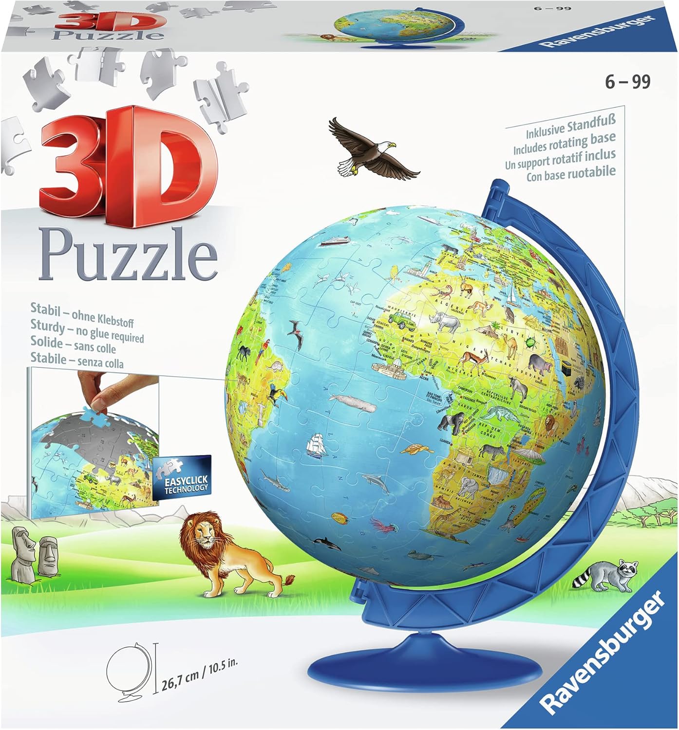 UN PUZZLE TRIDIMENSIONALE composto da 72 pezzi di plastica curvi, numerati, che si assemblano facilmente seguendo l'ordine dei numeri dei pezzi. Contenuto: 1 puzzle 3D da 72 pezzi a forma di sfera e relativo supporto inclusi. Diametro del puzzle assemblato: 13 cm. POKEMON: Questo puzzle offrirà a ragazze e ragazzi dai 6 anni in su una divertente esperienza di gioco con un puzzle originale nel mondo dei loro eroi preferiti. Immergiti nel magico mondo dei Pokémon con un puzzle 3D che raffigura le tue creature preferite, perfetto per i fan di tutte le età. ALTA QUALITÀ: La tecnologia Easyclick e la qualità del taglio dei pezzi permettono una perfetta integrazione e garantiscono così la solidità del puzzle 3D, il tutto SENZA la minima COLLA! La dimensione dei pezzi numerati permette al bambino di costruire autonomamente il proprio puzzle e di sviluppare la propria capacità di concentrazione. UN REGALO IDEALE per tutti i fan dei Pokémon! Questo puzzle 3D può essere assemblato da solo o insieme ad altri per condividere un momento di convivialità in famiglia o con gli amici. Un regalo perfetto per decorare la cameretta del tuo bambino, o per qualsiasi altra occasione: Natale, un compleanno o semplicemente per divertimento! AMBIENTE: Prodotto in Europa, questo puzzle è realizzato con materiali provenienti da foreste certificate FSC ben gestite, materiali riciclati e materiali provenienti da altre fonti controllate (FSC -C111262; FSC: organizzazione senza scopo di lucro che protegge, controlla e incoraggia la gestione sostenibile delle foreste).