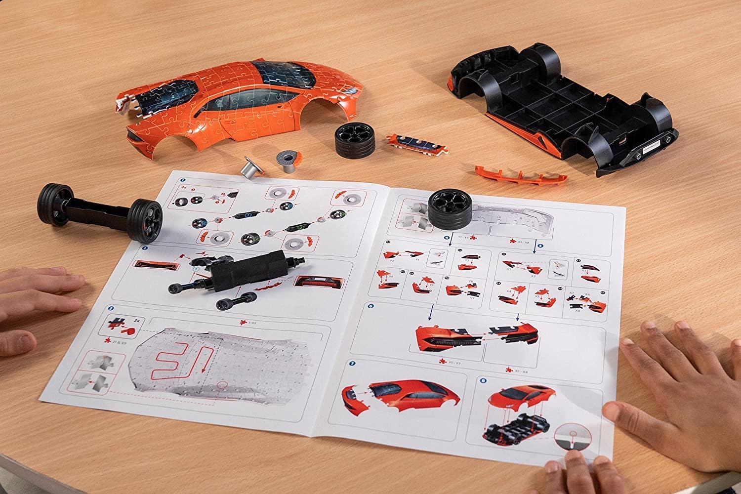 Ich bin ein großer Fan von Lamborghini, daher war dieses Produkt ein Muss für mich. Ich habe es mir vor ein paar Monaten gekauft und seitdem schon mehrmals zusammengebaut und wieder auseinandergenommen. Es macht einfach Spaß, dieses berühmte Fahrzeug als 3D Puzzle Auto zu besitzen und zu bewundern. Das Puzzle besteht aus 108 stabilen Kunststoff-Puzzleteilen, die individuell geformt und teils knickbar sind. Sie passen dank der EasyClick Technology perfekt zusammen und halten ohne Kleben. Das fertige Modell hat eine Länge von ca. 25 cm und eine Höhe von ca. 6,5 cm. Es ist im Maßstab 1:18 gehalten und entspricht dem originalen Design des Lamborghini Huracán EVO in der Farbe Arancio (Orange). Die drehbaren Räder und das detailgetreue Interieur runden das realistische Aussehen ab. Der Aufbau ist nicht sehr schwierig, aber auch nicht zu einfach. Man braucht schon etwas Geduld und Geschick, um die richtigen Teile zu finden und zusammenzustecken. Die bebilderte Anleitung hilft dabei sehr gut. Ich habe für den ersten Aufbau ca. zwei Stunden gebraucht, danach ging es schneller. Das Ergebnis ist aber jedes Mal beeindruckend und macht mich stolz. Das Puzzle ist nicht nur ein schönes Dekorationsobjekt für das Wohnzimmer oder das Büro, sondern auch ein tolles Spielzeug für Kinder ab 8 Jahren. Man kann es als Rennauto benutzen oder einfach nur anschauen und die aerodynamische Form und die sportliche Optik bewundern. Es ist auch ein super Geschenk für alle Autofans und Puzzleliebhaber. Die Vorteile dieses Produkts sind: - Es ist ein hochwertiges 3D Puzzle von Ravensburger, einem renommierten Hersteller von Puzzles und Spielen. - Es ist ein originalgetreues Modell des Lamborghini Huracán EVO, eines der bekanntesten und begehrtesten Sportwagen der Welt. - Es ist ein spannender und unterhaltsamer Zeitvertreib, der die Konzentration, die Feinmotorik und das räumliche Denken fördert. - Es ist ein attraktives Sammlerstück und ein Hingucker für jeden Raum. Die Nachteile dieses Produkts sind: - Es hat keine Licht- oder Soundeffekte, die das Fahrerlebnis noch realistischer machen würden. Ich habe dieses Produkt mit anderen 3D Puzzles von Fahrzeugen verglichen, wie zum Beispiel dem Porsche 911R, dem Volkswagen T1 oder dem Porsche 911 GT3 Cup. Alle diese Produkte haben ähnliche Eigenschaften wie das Lamborghini Puzzle, wie zum Beispiel die EasyClick Technology, die drehbaren Räder oder die detailgetreue Gestaltung. Sie unterscheiden sich aber in der Schwierigkeit des Aufbaus, der Größe des Modells und natürlich in der Marke und dem Design des Fahrzeugs. Ich finde das Lamborghini Puzzle am besten, weil es mein Lieblingsauto ist und weil es eine sehr elegante und futuristische Linienführung hat. Ich mag auch die Farbe Arancio sehr gerne, weil sie auffällig und fröhlich ist. Ich habe diese Produkte für den Vergleich ausgewählt, weil sie alle von Ravensburger sind und weil sie alle bekannte Fahrzeuge darstellen. Mein Fazit ist, dass das Ravensburger 3D Puzzle 11238 - Lamborghini Huracán EVO - 3D Puzzle ein tolles Produkt für alle ist, die sich für Autos und Puzzles begeistern. Es ist eine Herausforderung und eine Freude zugleich, dieses Modell zusammenzubauen und zu bestaunen. Es ist ein hochwertiges und originalgetreues 3D Puzzle, das den Charme und die Eleganz des Lamborghini Huracán EVO einfängt. Es ist ein schönes Sammlerstück und ein attraktives Dekorationsobjekt. Es ist aber auch ein spannendes Spielzeug für Kinder und Erwachsene, die sich gerne mit Autos beschäftigen. Ich vergebe diesem Produkt 4 von 5 Sternen, weil es mir sehr gut gefällt und weil es viel Spaß macht. Ich würde es jedem empfehlen, der ein Faible für Lamborghini hat oder der einfach mal ein 3D Puzzle ausprobieren möchte. Es ist ein tolles Erlebnis, das man nicht so schnell vergisst.