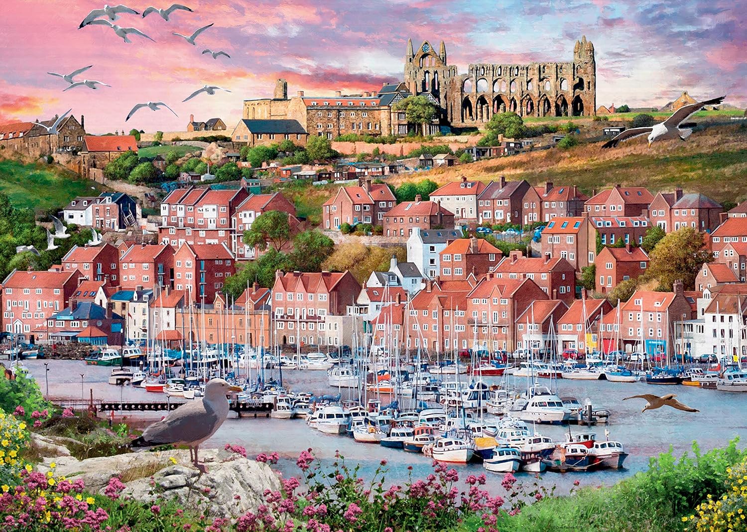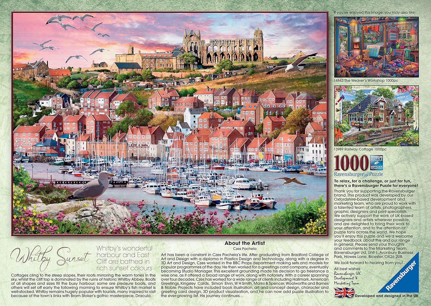Una meravigliosa vista del porto di Whitby e di East Cliff Puzzle da 1000 pezzi realizzato in cartone di alta qualità. Il puzzle finito misura 70 x 50 cm. Adatto a bambini dai 12 anni in su. Realizzato in cartone robusto e di alta qualità con finitura in lino per ridurre al minimo i riflessi sull'immagine del puzzle.