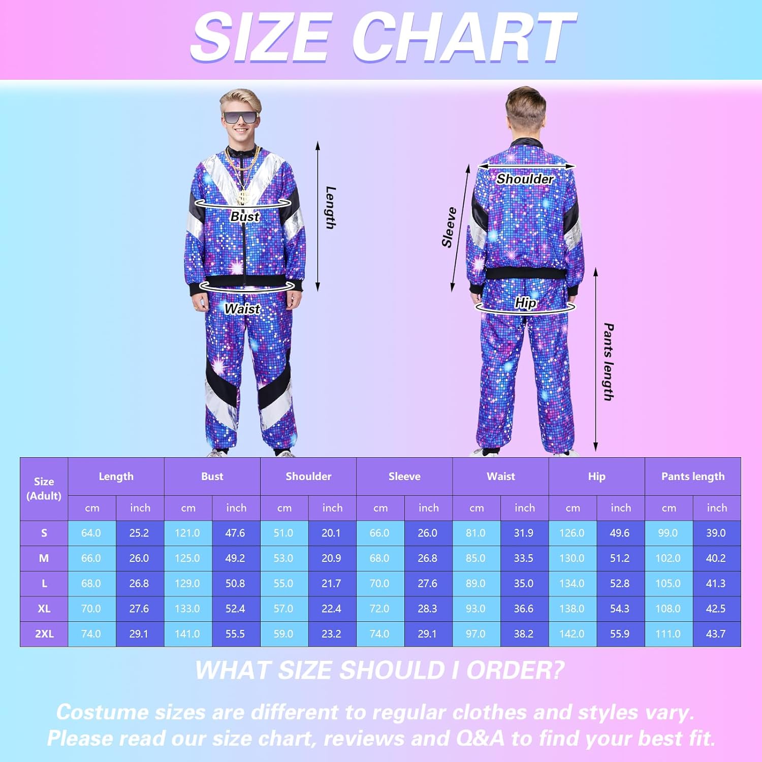 Raveparty Vestito da discoteca anni '80, per coppie, uomini e donne, abbigliamento da discoteca con abbigliamento sportivo, con braccialetti gonfiabili, fascia per occhiali da sole, per carnevale,