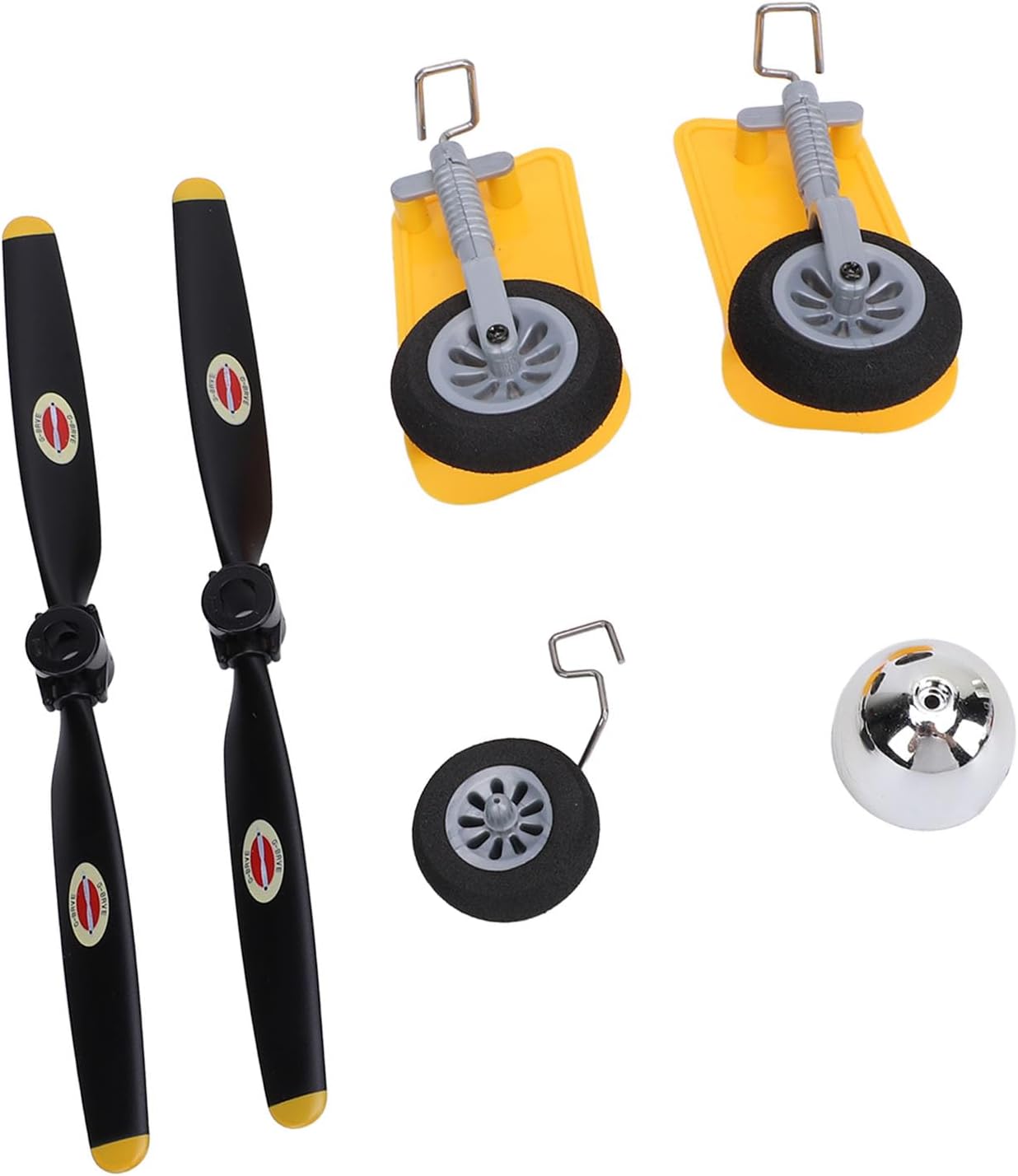 COMPATIBILITÀ: La combinazione di parti è appositamente progettata per l'aereo WLtoys XK A300 RC, il che garantisce che le parti possano sostituire perfettamente le parti originali e ripristinare la normale funzione dell'aereo. FACILI DA INSTALLARE: sono facili da installare e non richiedono molto tempo, migliorando praticità ed efficienza. Gli utenti possono completare facilmente l'assemblaggio. FINE LAVORAZIONE: Queste parti dell'aereo RC sono realizzate con pregevole fattura per garantire una buona durata e stabilità e possono essere utilizzate a lungo. MATERIALE PREMIUM: sono realizzati con materiali plastici e metallici di prima qualità con buona resistenza, garantendo che le parti non si danneggino facilmente durante l'uso e siano altamente affidabili. CONTENUTO: La combinazione include 2 ruote del carrello di atterraggio, 1 pneumatico per la testa, 2 eliche e 1 carenatura, in grado di soddisfare le varie esigenze di sostituzione delle parti.