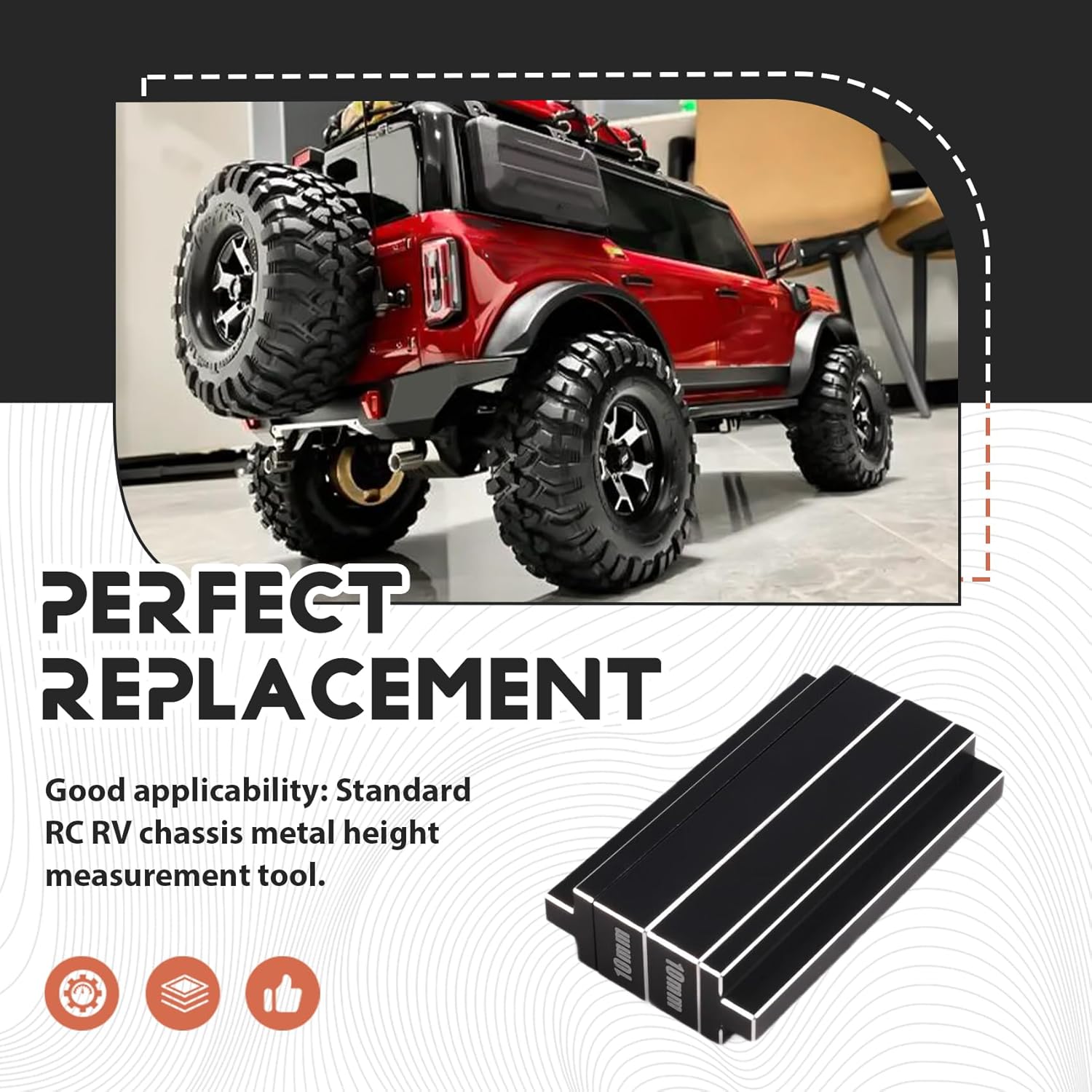 Pietra di regolazione rialzata di 10 mm, utilizzata con TT-129-A, lo strato aumenta di 10 mm, che può implementare comodamente i requisiti delle modifiche alla regolazione dei dati del telaio. [Materiale] Il righello di regolazione dell'auto RC è realizzato in materiale con un bell'aspetto e un carattere chiaro. [Funzione] Indicatore di abbassamento del telaio RC. Fornisce le misurazioni dell'altezza e dell'abbassamento del telaio del veicolo. Pietra di regolazione del telaio da 10 mm, utilizzata per misurare l'altezza del punto morto inferiore del forcellone e l'altezza dell'asse dell'albero di uscita per migliorare la precisione e la coerenza nella regolazione del sistema di sospensione dell'ammortizzatore ed è uno degli strumenti indispensabili per la regolazione del veicolo. [Buona applicabilità] Misuratore di altezza in metallo per telaio standard per auto da turismo RC.