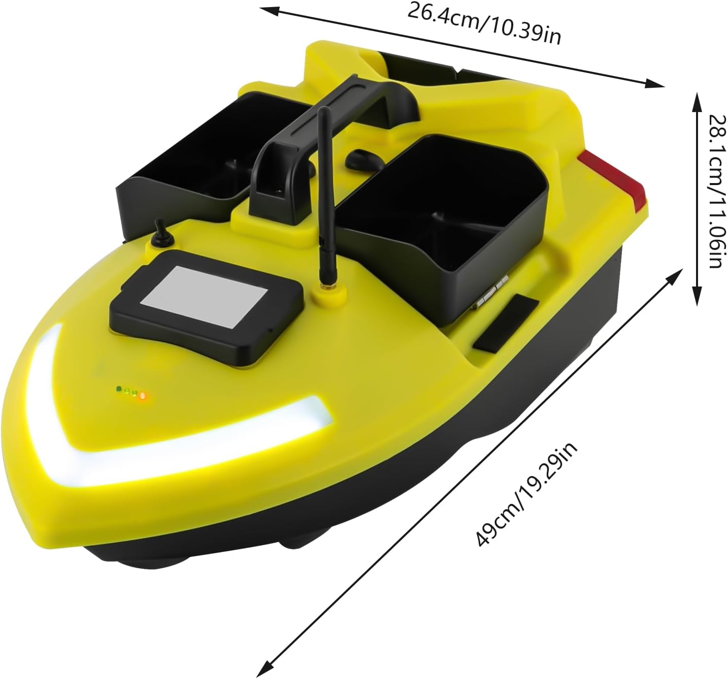 【Robusto e durevole】 La mangiatoia con telecomando è realizzata in materiale ABS di alta qualità, stabile, difficile da deformare e resistente all'usura. Offre una lunga durata ed è ideale per l'uso in vari corpi idrici, ad eccezione del mare. Forte forza motrice: l'esca da pesca è dotata di potenti motori doppi e di un'elica a tre foglie, che garantisce sufficiente spinta e velocità. Ciò consente una guida veloce ed efficiente in acqua. Lunga durata: la batteria al litio da 12000 mAh offre una ricarica rapida e una durata continua fino a 4 ore. Questo è sufficiente per sostenere una giornata intera di pesca all'aperto. Navigazione precisa: con il telecomando da 2,4 GHz (portata fino a 500 metri), il sistema di calibrazione Beidou e il posizionamento GPS possono essere memorizzate 40 posizioni. Ciò garantisce un'esca precisa e migliora l'efficienza della pesca.