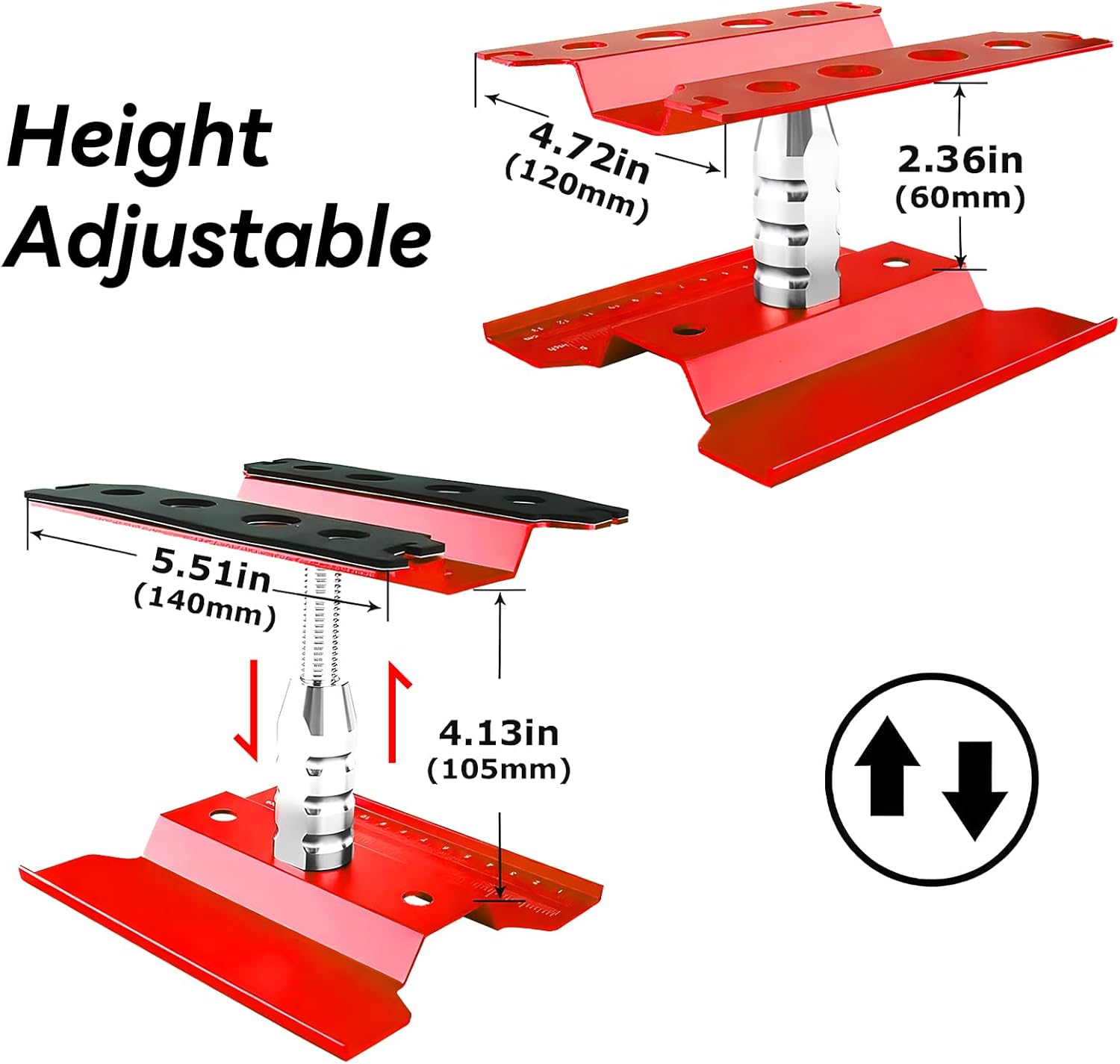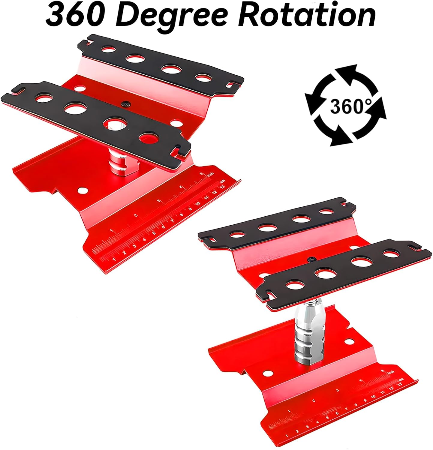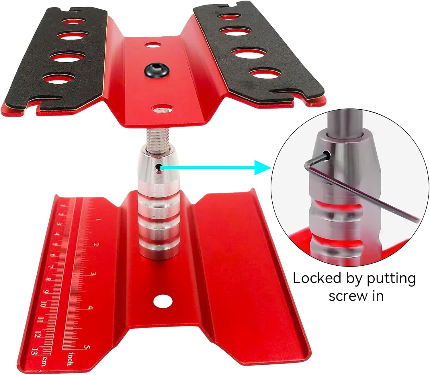 Supporto di riparazione RC compatibile: tuta per scala 1/8 1/10 1/12 1/16 1/18 Scala Traxxas TRX4 Axial Arrma Redcat Losi RC Crawler Monster Truck Buggy Rotazione a 360 gradi: altezza regolabile da 112 mm a 168 mm. Un supporto di riparazione con funzione regolabile in altezza consente di trovare una posizione comoda per riparare il modello di auto. Ideale per modelli da 1/8th a 1/18th RC Cars Truck, Buggy, Crawler, Drift Qualità eccellente: è realizzato in acciaio di alta qualità con lavorazione eccellente. Lunga durata. Il supporto ha una scala cm/che è conveniente per misurare la lunghezza di parti o viti. Quattro cuscinetti antiscivolo nella parte inferiore lo rendono più stabile durante l'uso. I due cuscinetti in spugna nella parte superiore assicurano che la tua auto RC non si graffi durante l'uso. Supporto a vite: le viti o altre piccole parti possono essere riposte durante lo smontaggio del modello per evitare la perdita. Assicurarsi che possa essere montato un veicolo completo. Contenuto della confezione: 1 supporto di riparazione RC (con viti e cacciaviti necessari per l'installazione), 1 supporto per viti, 1 manicotto trasversale. Soddisferà tutte le tue esigenze per la riparazione di auto con telecomando, può essere dato come regalo agli amici che amano i modelli di controllo remoto.