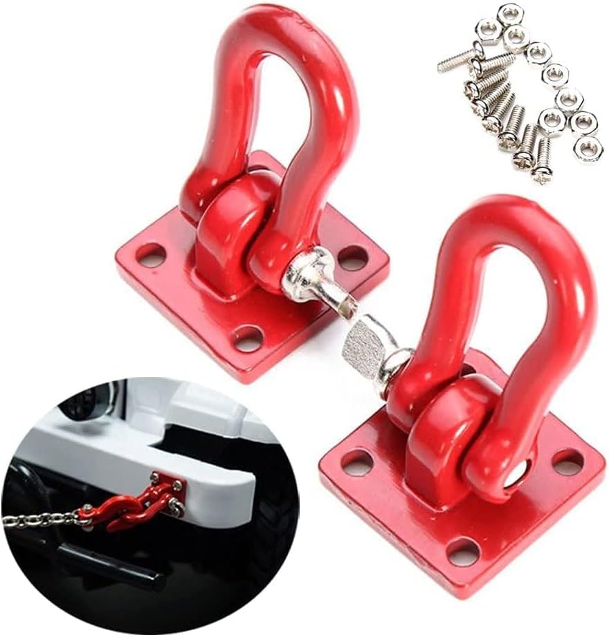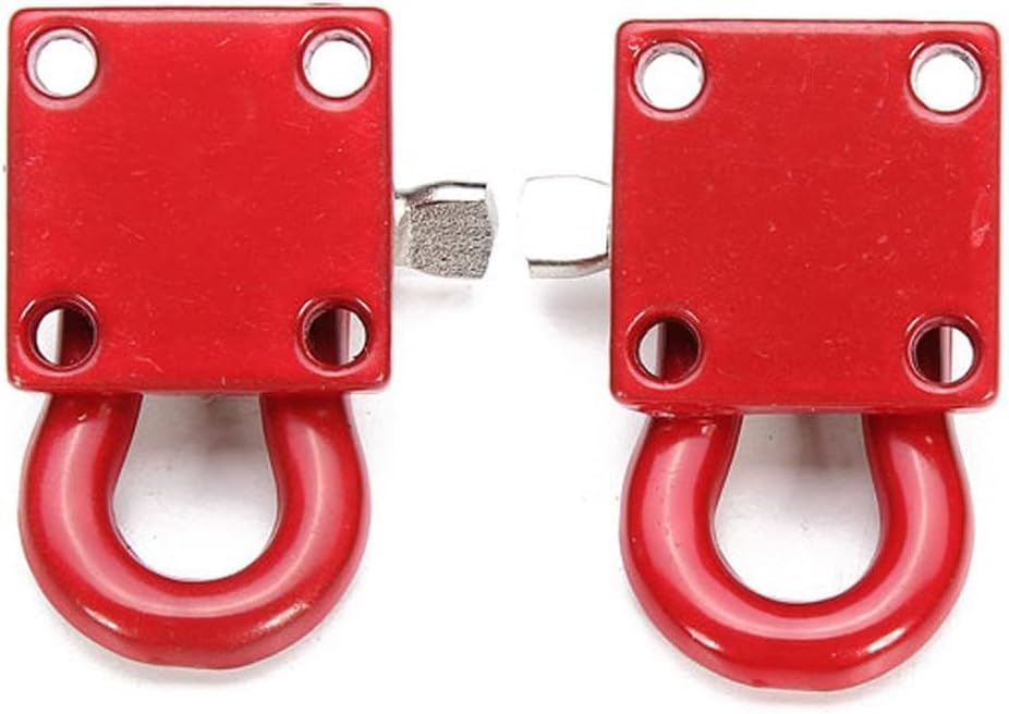 Realizzato in metallo di alta qualità per una lunga durata, facile da montare e utilizzare. Accessorio ideale per auto, ideale per trainare le catene quando si rimane bloccati lungo la strada. Dimensioni: 12,5 x 12,5 x 22 mm. Compatibile con asse cingolato 1/10 per SCX10 D90 D110 Traxxas TRX4 TRX6 Redcat. Confezione: 2 ganci di traino+1 set di accessori a vite (come mostrato nell'immagine)
