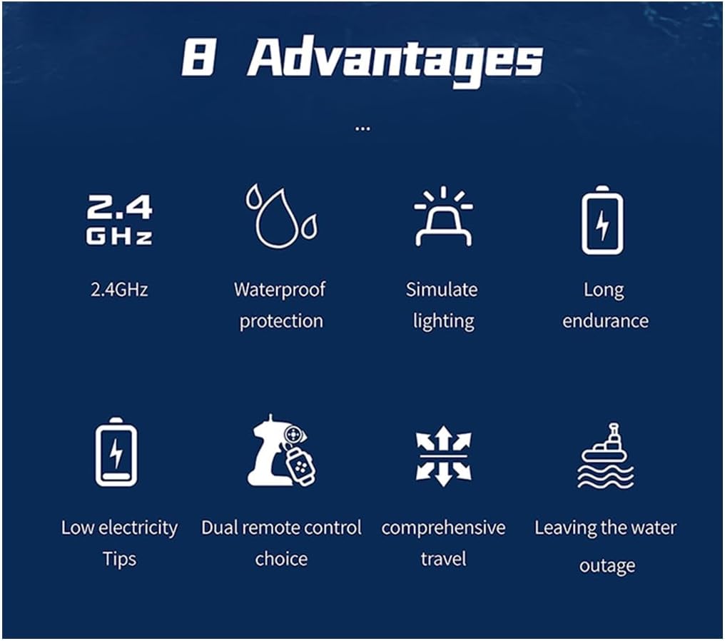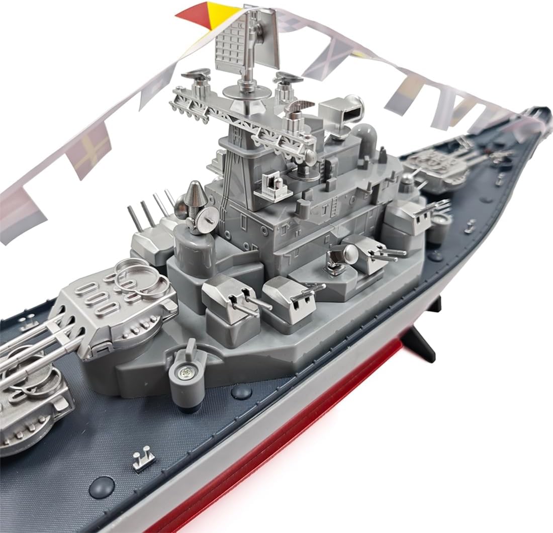【RTR e prestazioni complete】Questa corazzata elettrica RC viene fornita pronta all'uso (RTR), non richiede alcun assemblaggio complicato. Naviga sapientemente piscine, laghi e stagni con controlli precisi in avanti, indietro e in svolta, offrendo un'esperienza di navigazione senza sforzo e divertente fin dalla scatola sia per principianti che per hobbisti esperti Vela potente e a lungo raggio: dotata di un sistema a doppio motore ad alta frequenza e di una batteria di grande capacità da 7,4 V 1500 mAh, questa barca RC impermeabile raggiunge una velocità di 8-10 km/h. Goditi fino a 100 metri di controllo ininterrotto a 2,4 GHz, consentendo a più navi da guerra RC di giocare insieme senza interferenze, perfetto per emozionanti gare di gruppo sull'acqua 【Ripristino del capsize e design durevole】Non preoccuparti mai di capovolgersi. Questa corazzata RC da 2,4 GHz è dotata di una funzione di reset capsize intelligente, che si raddrizza automaticamente per continuare a giocare. Realizzato in plastica impermeabile ad alta resistenza e ad alta luminosità, è progettato per resistere ai rigori delle avventure acquatiche, garantendo una lunga durata Dettagli realistici e uso multiscenario: questo modello in scala 1:390 altamente dettagliato con luci realistiche e armi simulate mobili, è perfetto per giochi d'acqua dinamici in piscine e laghi, e funge anche da splendido pezzo decorativo per scrivanie o salotti, attraente per collezionisti e appassionati di militari Caratteristiche intelligenti e regalo perfetto: migliora la sicurezza e la praticità, il telecomando ha un allarme di batteria scarica. Presentato in una squisita confezione regalo, questa corazzata RTR RC per adulti è un regalo significativo ed emozionante per ogni occasione