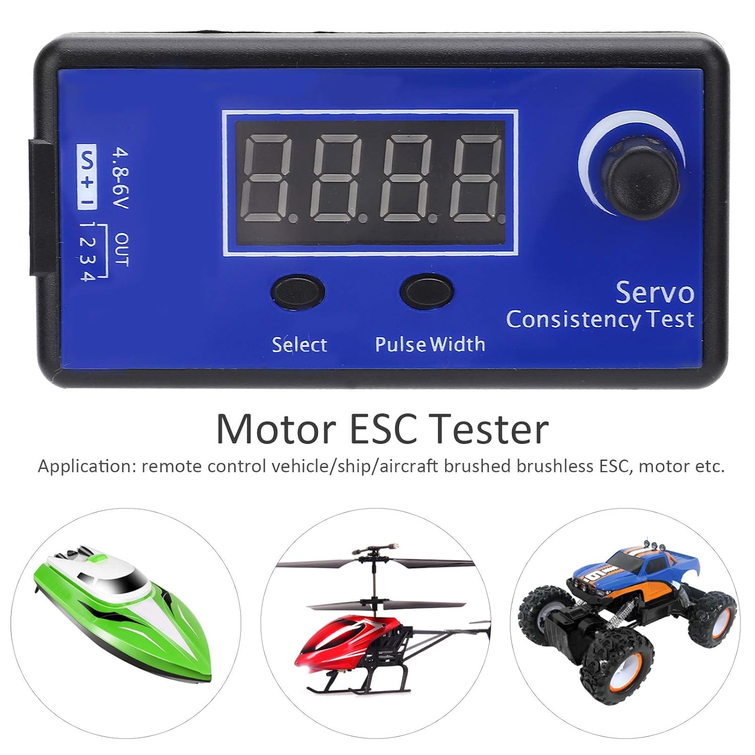 FUNZIONE: il servos tester digitale RC può in uscita in modo sincrono e prestazioni del servo, utilizzate per il controllo preciso dei segnali di servomo e output e testare se ogni carrello di sterzo ha lievi modifiche (1 millisecondi = 1000 microsecondi). ALTENTE PRECISSO: il potenziometro rotante del tester del motore senza spazzole può ridurre o aumentare la larghezza impulso di uscita. Può eliminare accuratamente segnali e testare se l'ingranaggio dello sterzo può rispondere a piccoli segnali di impulsi Specifica: il controllo del cambio di sterzo con display ha una larghezza del segnale di 800-2200us e una tensione di lavoro di 4,8-6,0 V. Può essere in modo sincrono di controllo dei servi e confrontare le prestazioni degli ingranaggi di sterzo. È un servo tester multifunzionale Utilizzo: l'alimentazione del tester di coerenza ESC inserisce automaticamente la modalità manuale e la larghezza del segnale di impulso può essere regolata ruotando la manopola. Può testare la regolazione elettrica, simulare l'azione di spinta olio del telecomando e selezionare la funzione di commutazione della chiave (neutro, automatico, manuale) Ampia intervallo di applicazioni: il tester servo ESC ha una dimensione di 75x38x15mm/3x1.5x0.6in, con una vasta gamma di applicazioni, adatte per il telecomando di auto, navi, aeroplani, servolo ESC senza spazzola