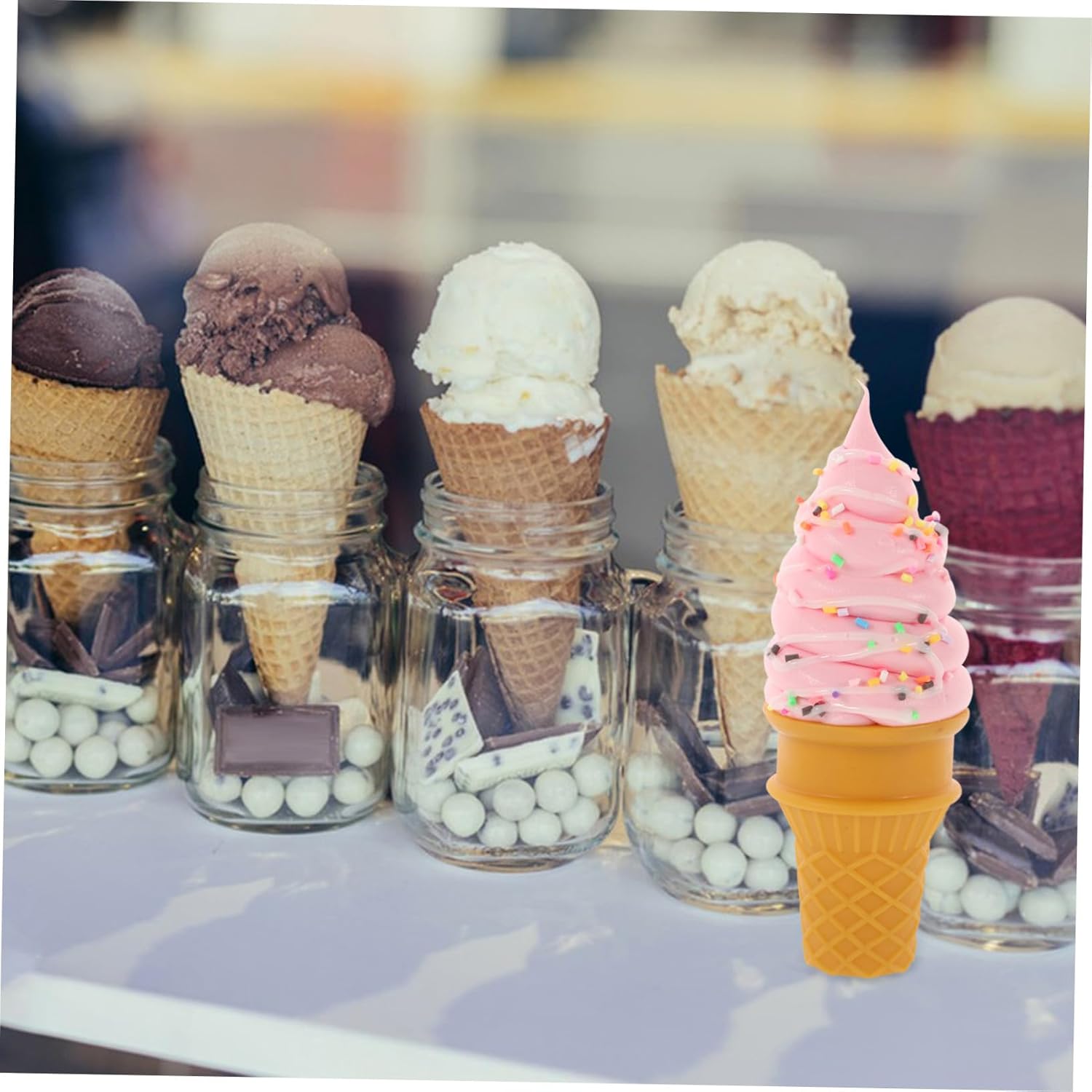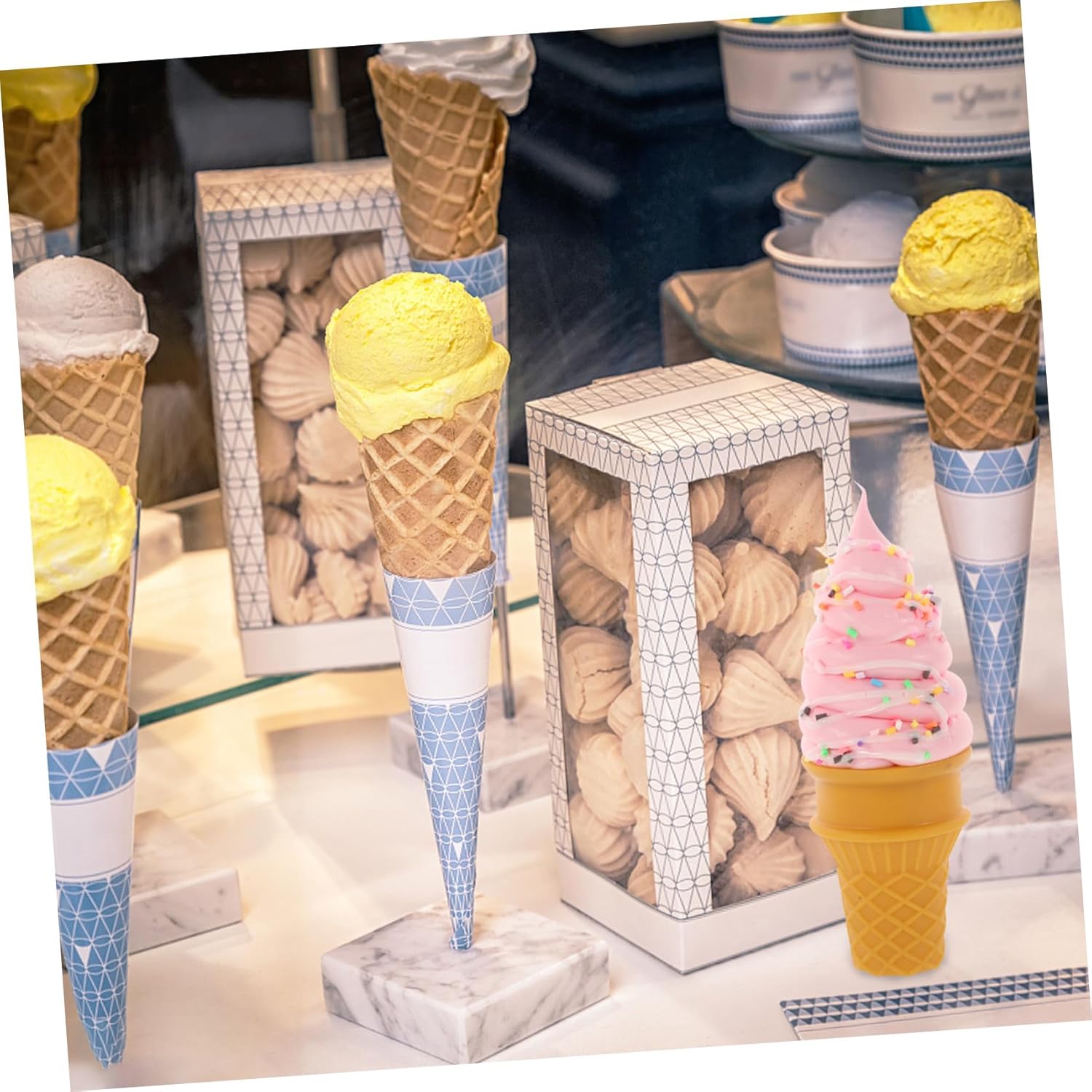 Gelato artificiale - Il modello di cono gelato artificiale è affidabile e adatto per una varietà di decorazioni di scena, vetrine e decorazioni per la casa, Gelato artificiale Cono gelato - Con il suo design accattivante, questo modello è adatto per attirare clienti e aumentare l'attrattiva visiva delle sale di vendita, Cono gelato artificiale Cono gelato - Materiale selezionato in PVC, flessibilità e durata eccellente, facile da usare, per lungo tempo Tempo di utilizzo, centrotavola gelato Arredamento gelateria - L'imitazione del cono gelato è affascinante e carina, adatta e meravigliosa per esporre campioni di cibo, esporre vetrine, decorare centri commerciali e decorare gelati artificiali Gelato finto: ideale per la fotografia professionale. Questo modello migliora l'immagine fornendo un soggetto realistico e attraente. cono gelato riutilizzabile