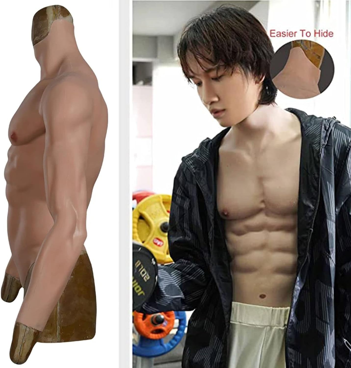 [Unicità]Sono state aggiunte due braccia. [Vantaggio] può essere il trucco, di qualità forte e non facile da strappare. [Materiale] Realizzato in silicone di alta qualità di grado medico, è innocuo per il corpo umano, morbido e reale. Facile da pulire. [Design] Simulazione muscolare reale del corpo umano. I muscoli pettorali, addominali, clavicola, ecc. sono splendidamente progettati e sufficientemente realistici da rendere difficile per gli altri distinguere tra vero e falso. [Applicazione] danza, festa, uso quotidiano, pigiama, spettacoli teatrali, donne che vogliono essere uomini, uomini transgender o per cosplay, abiti da pseudo-mamma, feste in maschera, divertimento di Halloween ecc.