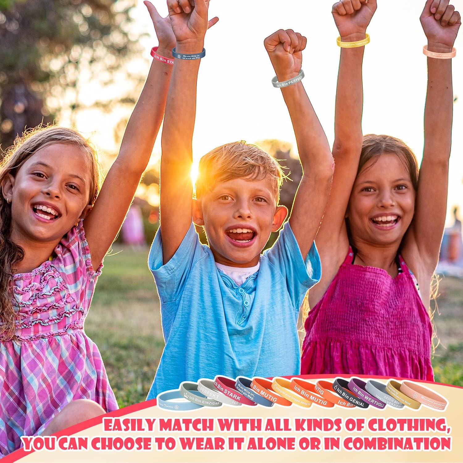 Die Motivationsarmbänder aus Silikon von Realjoy kamen super verpackt und loose in einer Box hier an. Der Druck der Bänder ist sehr gut und leserlich, gerade die kurzen Botschaften überzeugen meine Schüler. Ich betreibe eine kleine Nachhilfeschule und habe die Bänder als Geschenk zum Schulstart besorgt. Die Bänder mit "Ich bin mutig", "Ich bin stark", "Ich bin einzigartig" und "Ich bin genial" werden sehr gerne von den Schülern mitgenommen. Die längeren Botschaften sind meiner Meinung nach nicht so gut für Kinder geeignet und bei den Bändern "Sei die beste Version von Dir selbst" wurden die ersten beiden Wörter zusammengeschrieben, das ist für mich als Deutschlehrer schwer zu überlesen. :) Sieht man aber auch auf den Produktbildern hier. Die Farben sind wirklich toll gewählt, nicht so aufdringlich und vor allem passen sie für Mädchen und Jungen aller Altersklassen dank des elastischen Silikons. Laut der Schülern ist der Tragekomfort angenehm, sie schneiden nicht ein und man merkt kaum, dass man sie trägt. Auch am Folgetag hat keines der Kinder allergische Reaktionen von den Bändern gehabt. Finde ich auch wichtig zu erwähnen. Ich kann die Bänder daher wirklich empfehlen und vergebe gerne die volle Punktzahl. Alles in allem bekommt man hier wirklich viel für sein Geld, man kann theoretisch eine komplette Schulklasse mit den Motivationsbändern ausstatten.