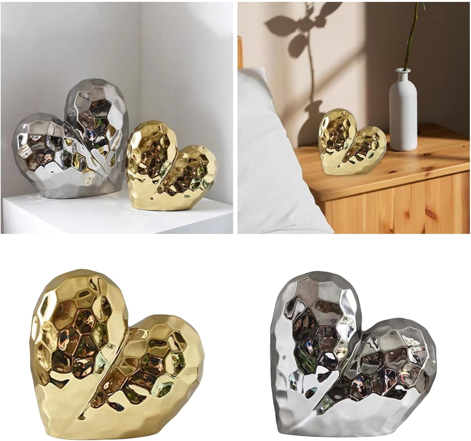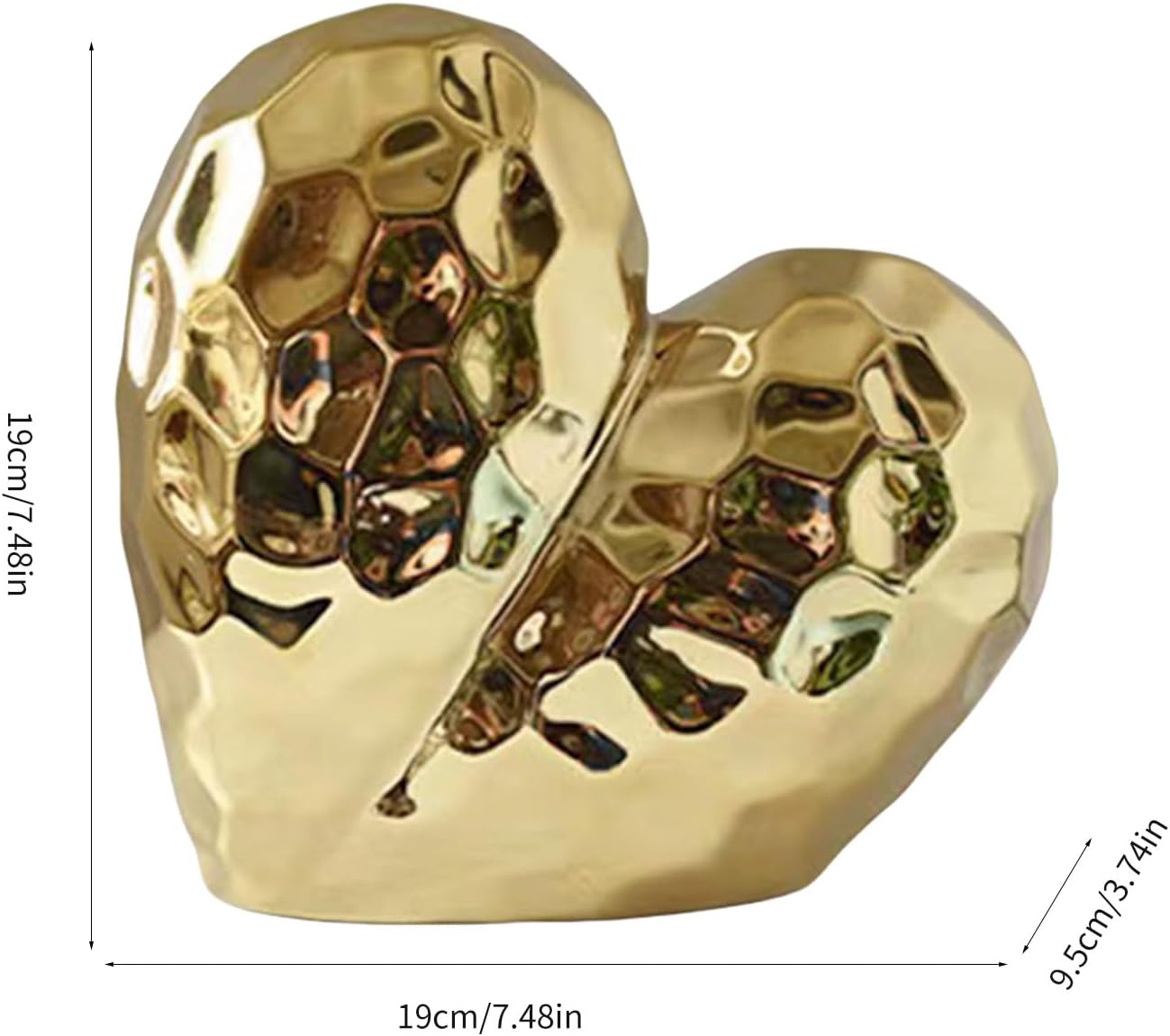Questa decorazione per la casa si integra perfettamente con i contemporanei, rendendola accessibile alla vostra collezione di casa Perfetto per il posizionamento di tavoli da caffè, librerie o mensola del camino, aggiungendo un tocco moderno a qualsiasi stanza Per le coppie che perseguono un'estetica elegante per la casa, apprezzano la decorazione artistica Realizzata con materiali ceramici, questa resistenza allo sbiadimento simboleggia la bellezza dell'amore Aumenta l'eleganza del tuo salotto con la decorazione a forma di cuore e combinato con l'oro per un tocco di raffinatezza