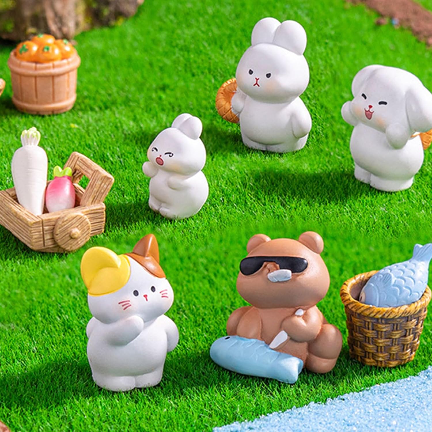 Perfetto per aggiungere fascino a luoghi di lavoro, librerie, scaffali per bambini o come decorazione per piani cucina in interni moderni Adorabili statuette di animali in miniatura con tema vivace mercato degli agricoltori e resina dipinta a mano Ogni oggetto da collezione presenta intagli elaborati e colori delicati e cattura personaggi giocosi come coniglietti e cuccioli Queste statue di animali in resina servono anche come giocattoli educativi per giochi fantasiosi e allo stesso tempo servono come ricordo senza tempo per la decorazione della casa Ideale per gli amanti della decorazione di interni, collezionisti di miniature e impiegati che cercano accessori da scrivania stravaganti per tutte le età