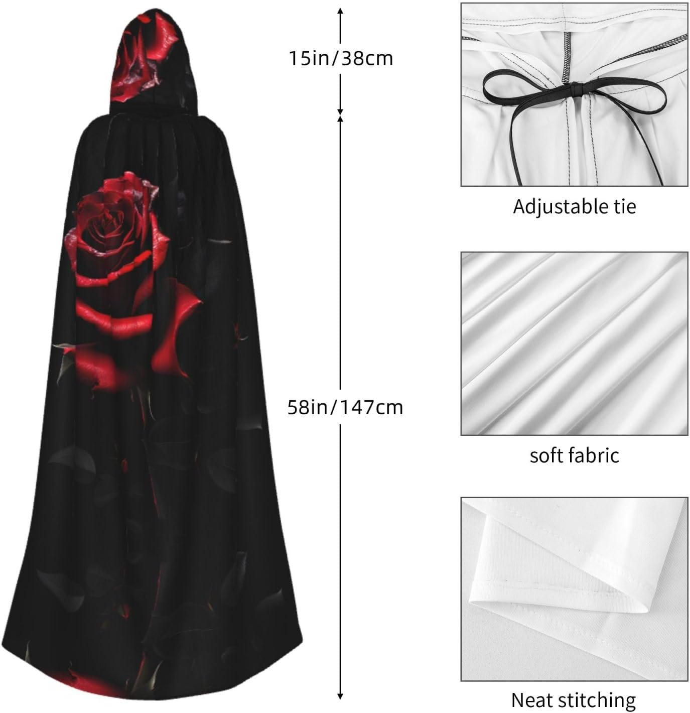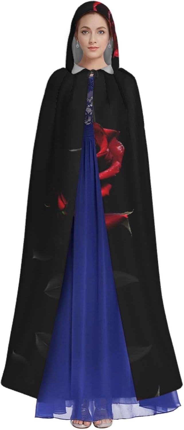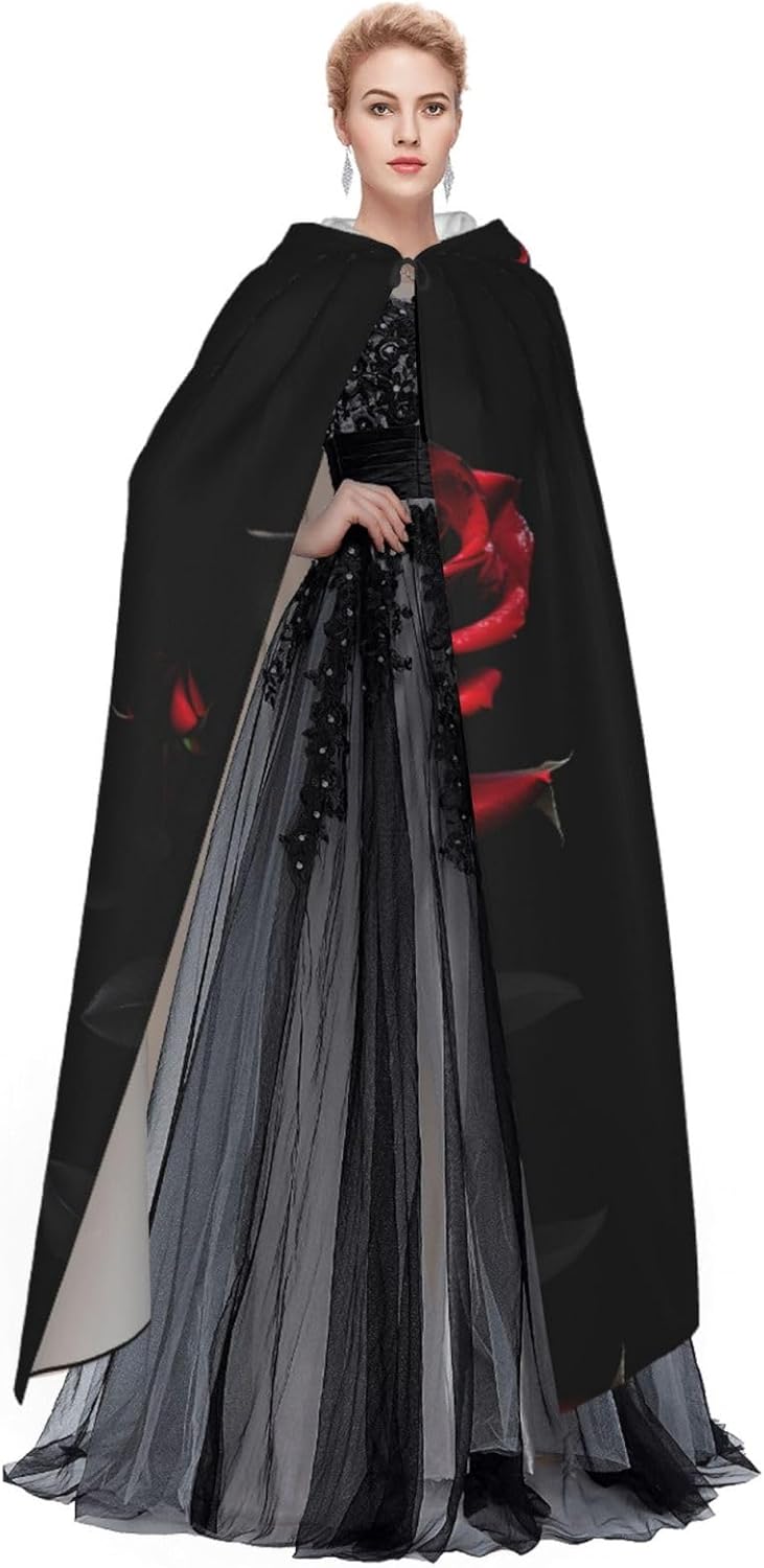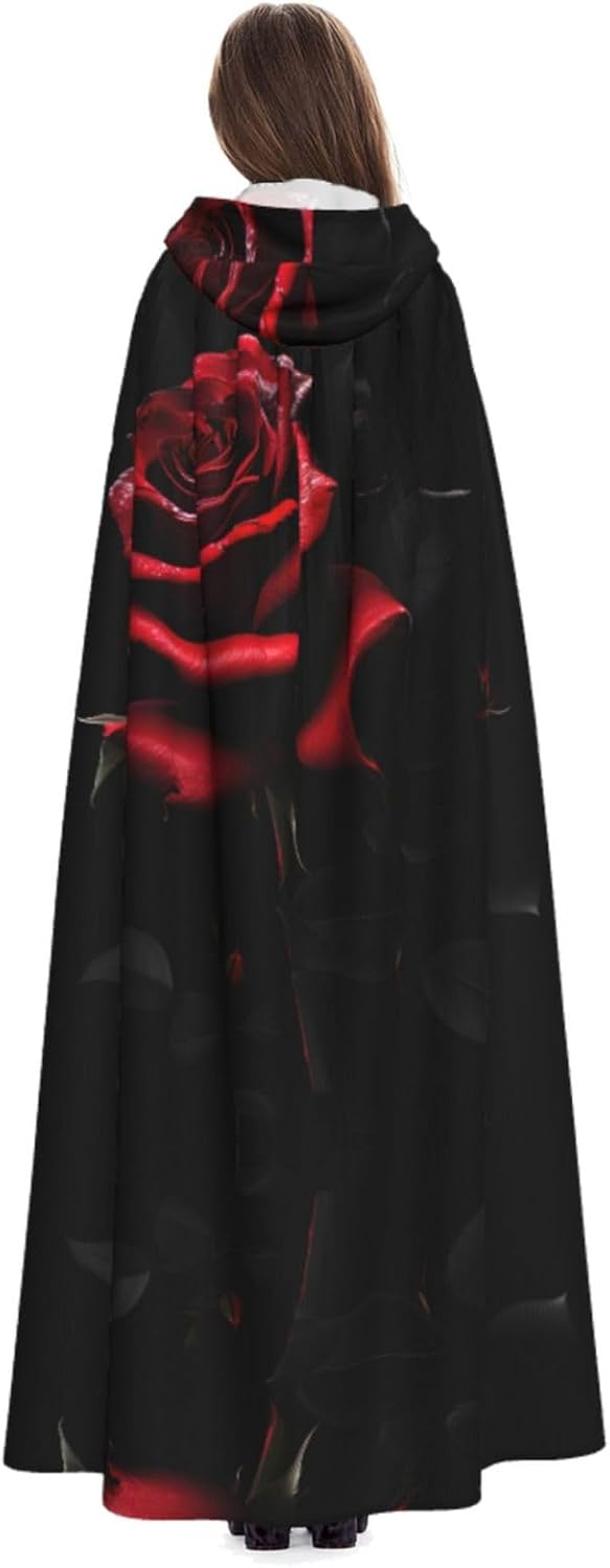 Red And Roses Mantello con cappuccio Unisex Halloween Natale Mantello Vampiro Mago Robe Costume Cosplay