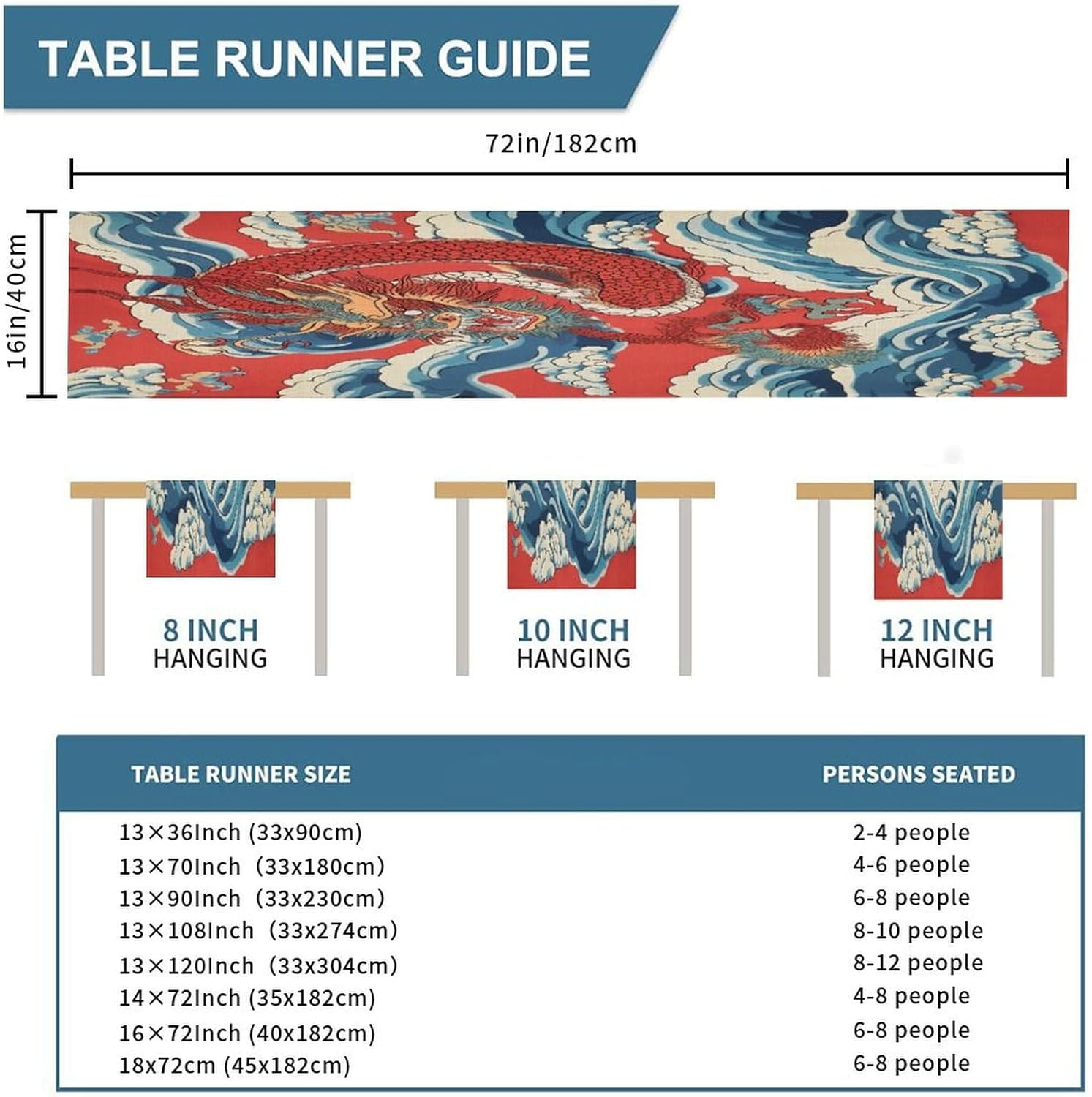 Red Dragon Chinoiserie - Runner da tavola di ispirazione asiatica, 40,6 x 183 cm, in iuta, rustico, facile da pulire, per soggiorno, cena, decorazione per la casa, regalo per la casa