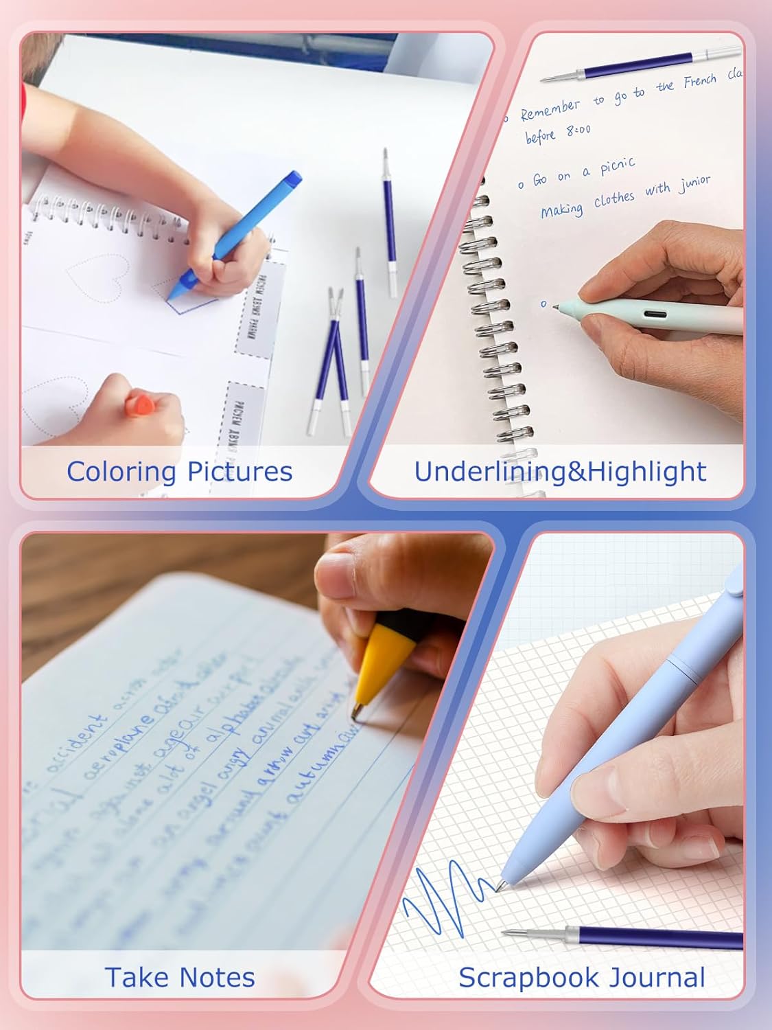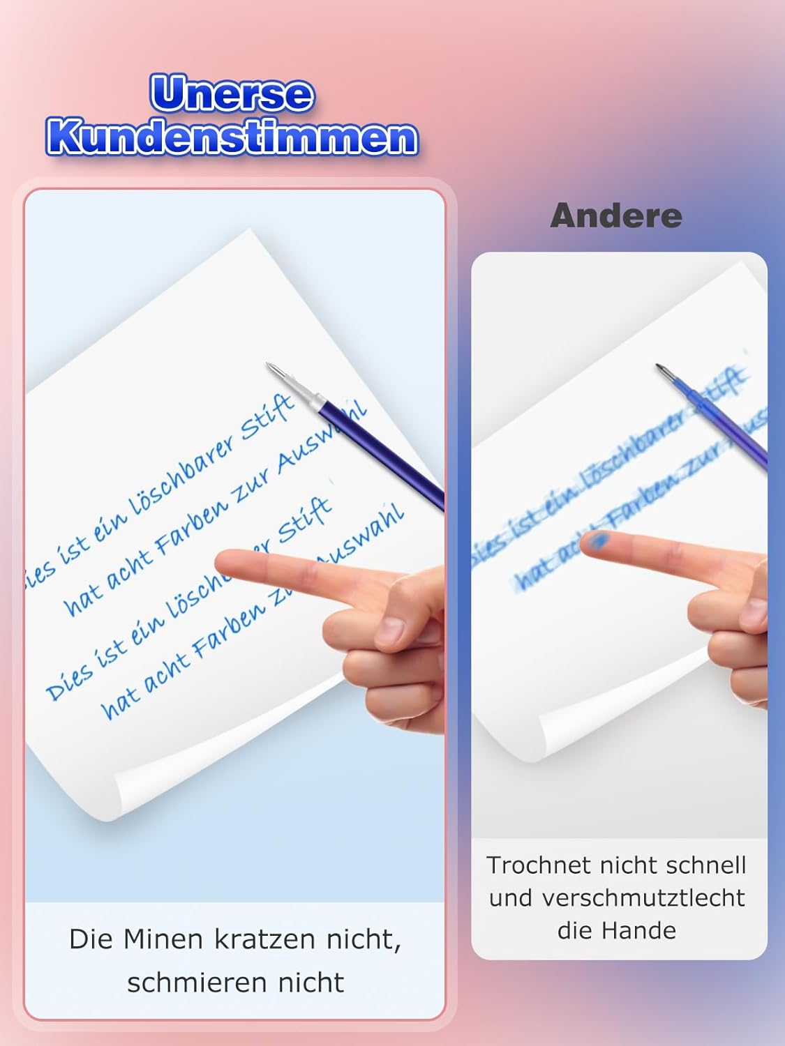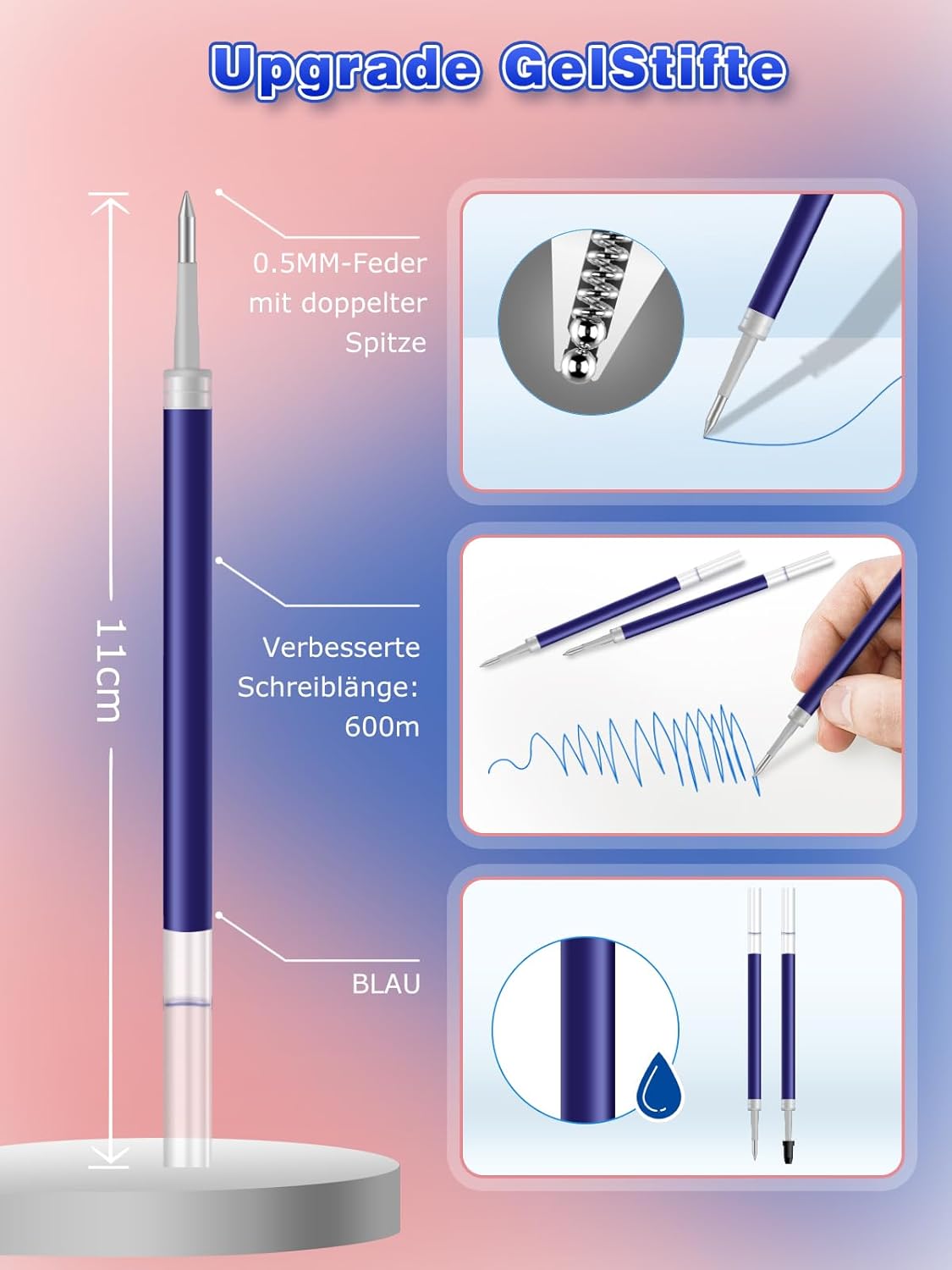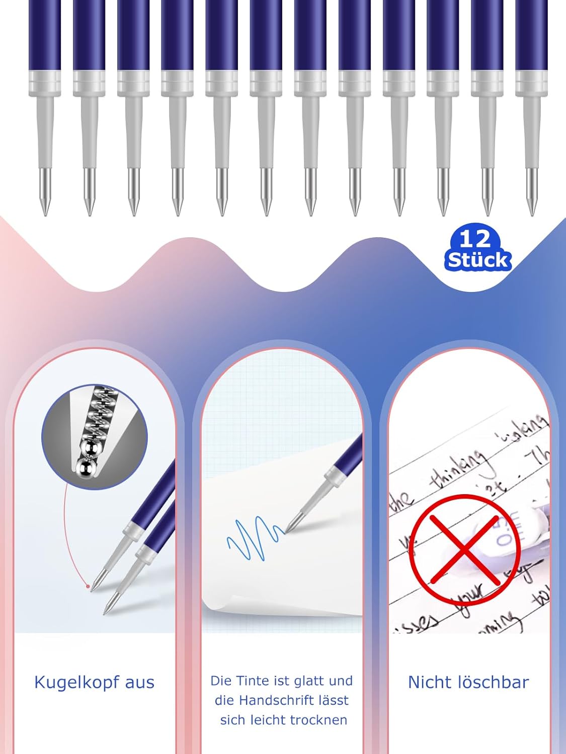 Ricariche per penna gel di alta qualità con tecnologia innovativa: queste ricariche offrono un flusso di scrittura uniforme senza sbavature o perdite. L'inchiostro blu vivace garantisce una piacevole sensazione di scrittura, ideale per una scrittura precisa e progetti creativi – [Non rotabile] Ampia compatibilità per un uso flessibile: queste mine di ricambio si adattano (non cancellabili) nella maggior parte delle penne a sfera retrattili, tra cui Pilot G2-05. Questa versatilità li rende una scelta pratica per diversi strumenti di scrittura Set di 12 mine di ricarica: il set contiene 12 mine con una punta in metallo sottile da 0,5 mm, adatta per scrivere e disegnare con precisione. La punta in acciaio inox con sfera in carburo e inchiostro gel garantisce una lunghezza di scrittura di circa 600 metri Con inchiostro ad asciugatura rapida e punte a sfera aggiornate: l'inchiostro ad asciugatura rapida impedisce le sbavature, mentre la punta a sfera aggiornata offre una sensazione di scrittura fluida. Perfetto per appunti, firme, schizzi e disegni creativi Ideale per molteplici applicazioni: perfetto per studenti, insegnanti, infermieri e tutti coloro che scrivono o disegnano molto. In ufficio, a scuola o a casa, sono ideali per appunti, firme, schizzi e persino progetti artistici