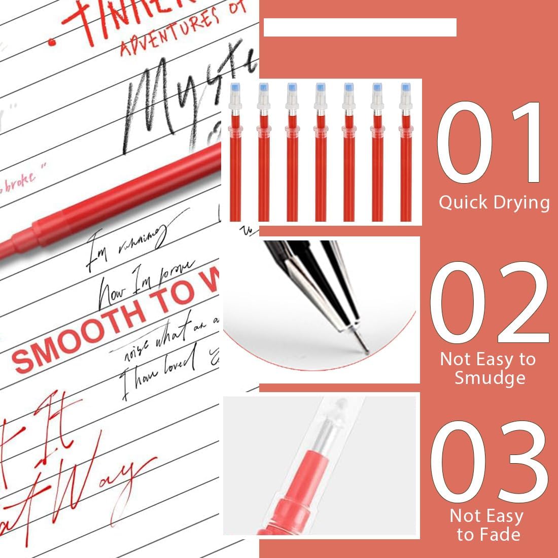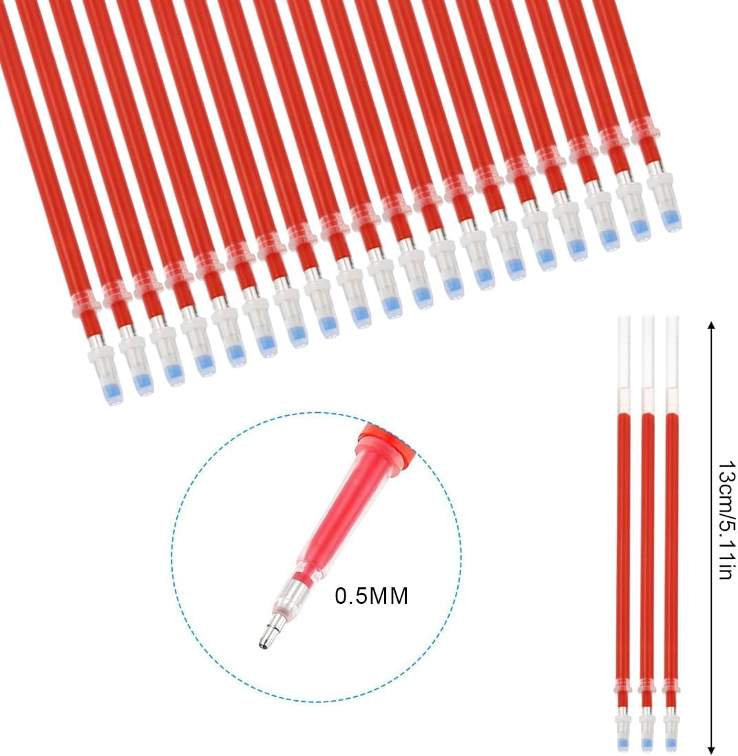 Confezione da 30 penne di ricambio cancellabili, compatibili Legami, rosse, punta da 0,5 mm. Nuove penne a inchiostro gel cancellabili termicamente con punta da 0,5 (dura il 40% in più rispetto a 0,7 e non sbava). Le penne a inchiostro gel cancellabili termiche consentono una scrittura fluida e una cancellazione completa senza strappare la carta. Cancellazione facile, Basta strofinare l'inchiostro sulla carta con la gomma sul cappuccio della penna. È un ottimo prodotto per la scuola, l'ufficio e il tempo libero poiché evita disordine durante la scrittura di appunti, compiti o puzzle o quando viene utilizzato per lavorare su tessuto o pelle.