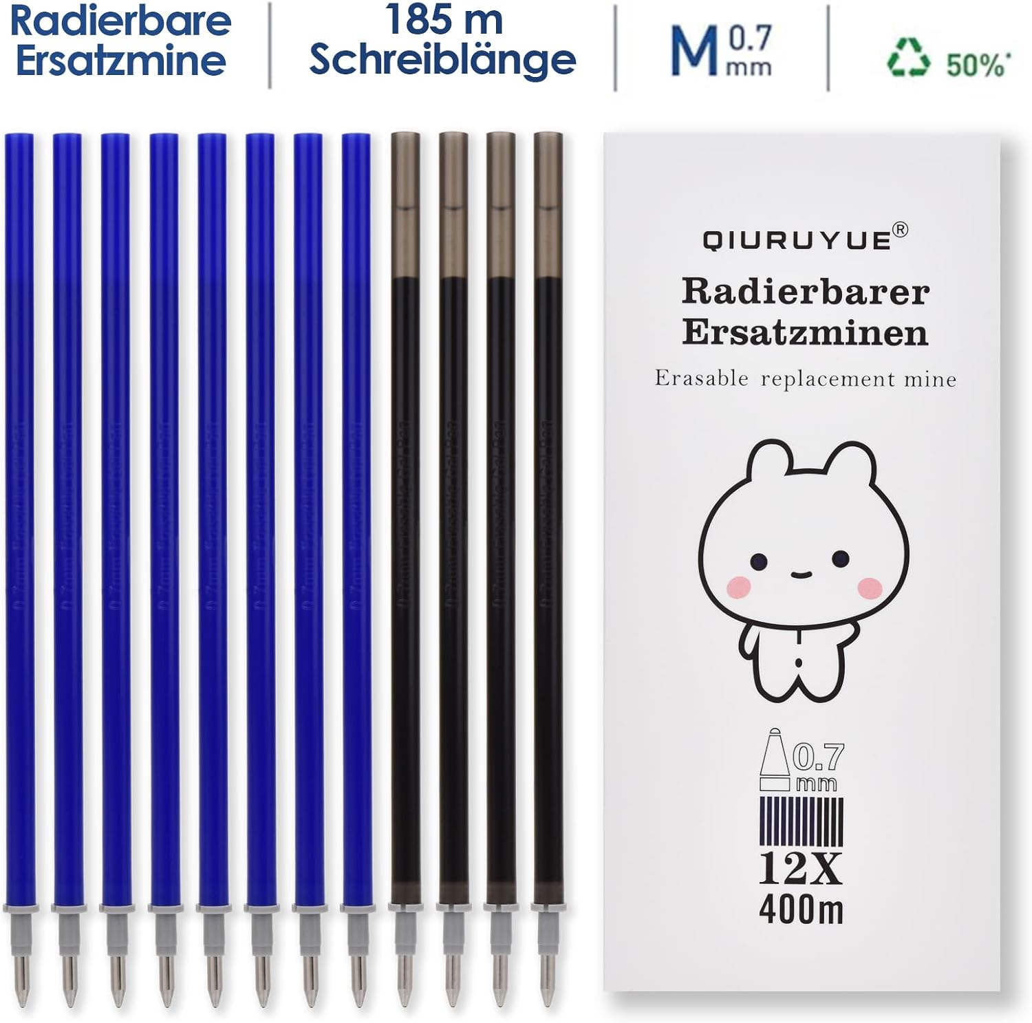 12 pezzi cavi di ricambio cancellabili: Compatibili con Legam, 8 Blu+ 4 nero, punta 0,7 mm. Cancellazione facile: Basta strofinare l'inchiostro sulla carta con la gomma sul cappuccio della penna. | Pericolo! L'inchiostro è sensibile al calore. Tenere gli appunti importanti lontano da fonti di calore Materiali e dimensioni: Inchiostro sensibile al calore di alta qualità. Altezza 13 cm. Diametro 4 mm, lunghezza di scrittura: 185 M Questo è il miglior regalo: che si tratti di bambini, studenti, insegnanti, amici, colleghi o familiari, queste penne sono una buona scelta per compleanni, festa dei bambini, Natale o occasioni per il rientro a scuola Senza graffi: Scritto su carta sottile ecologica, è antigraffio, adatto a principianti o bambini