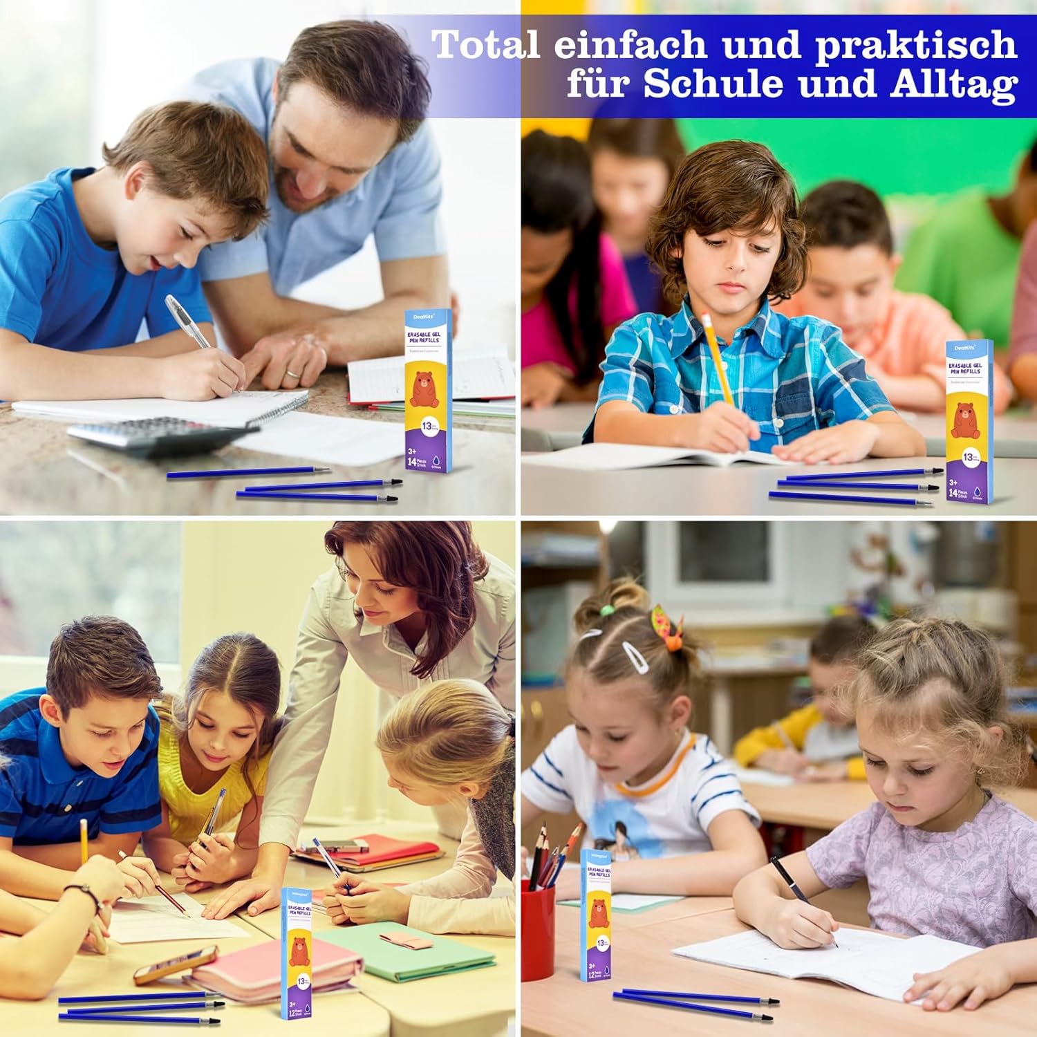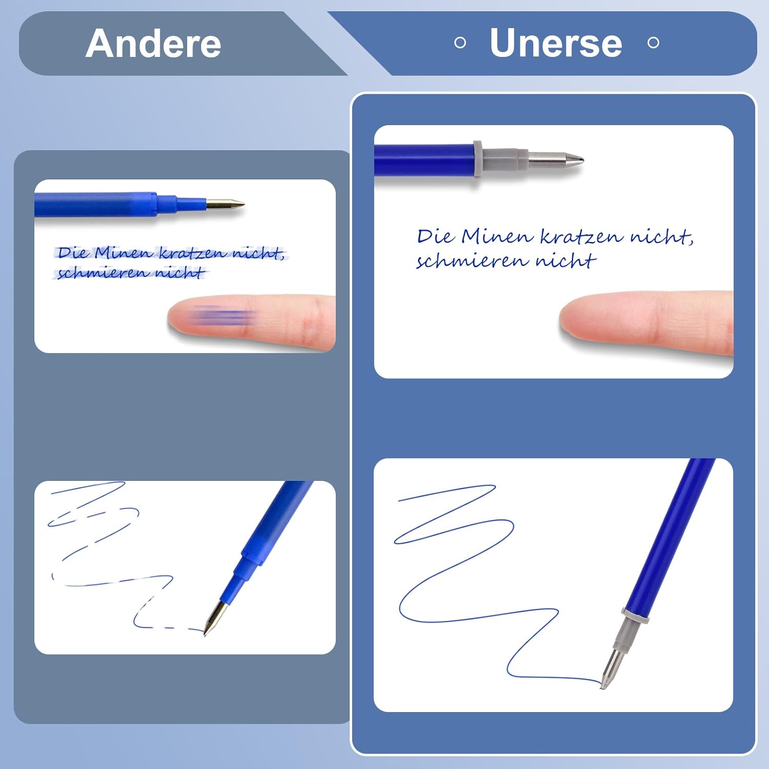 Compatibile con Legami: 14 riempimenti di ricambio per penne gel cancellabili. Colore: blu, punta 0,7 mm. Permettiti di scrivere fluentemente. Cancella facilmente: basta pulire l'inchiostro con il cappuccio della penna originale o con un bastoncino termico professionale. Materiali e dimensioni: diametro 0,8 cm, altezza 13 cm. Diametro punta: 0,7 mm. Inchiostro sensibile al calore di alta qualità. Regalo per il rientro a scuola: che si tratti di bambini, studenti, insegnanti, amici o colleghi, queste penne sono una buona scelta per compleanni, festa dei bambini, Natale o eventi di rientro a scuola. Suggerimenti caldi: pericolo. L'inchiostro è sensibile al calore. Tenere i file importanti lontano da fonti di calore. Se il testo scompare a causa del calore, mettilo in una borsa impermeabile e mettilo in frigorifero per ripristinarlo.