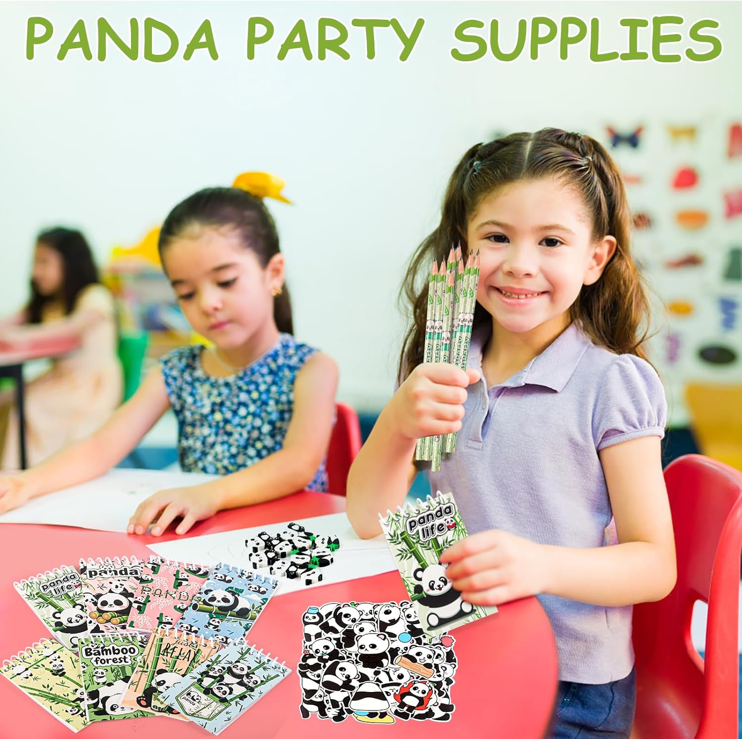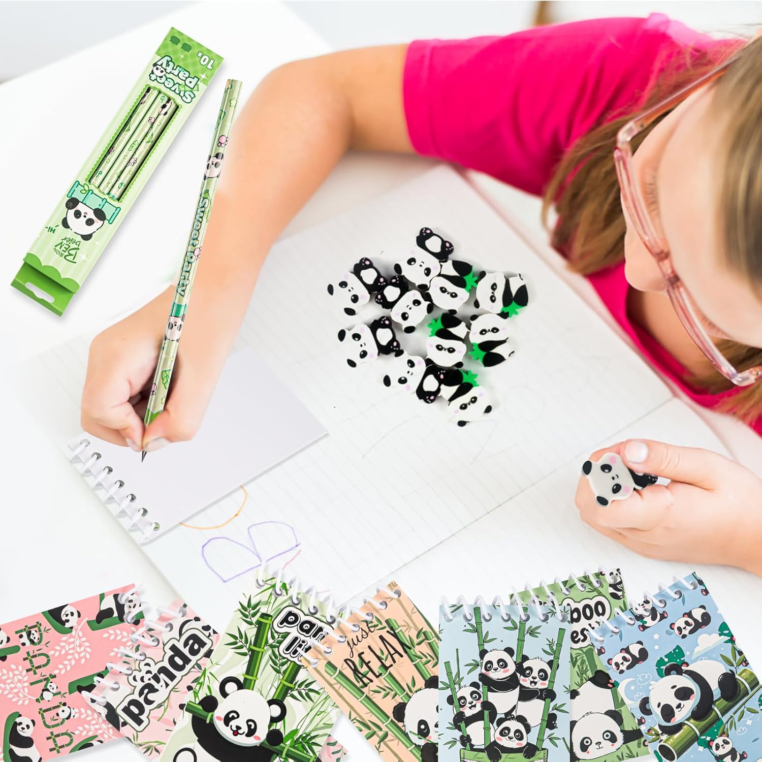 SET REGALO SCUOLA PANDA: 78 pezzi in totale, 8 blocchetti a spirale, 10 matite, 10 gomme, 50 adesivi QUALITÀ PREMIUM: i regali di compleanno per bambini Panda sono realizzati in carta, TPR e legno di alta qualità, forma unica, bel motivo, facile da usare e riutilizzabile. REGALI DI COMPLEANNO CON I MOTIVI DEL PANDA: le matite con i motivi del panda sono realizzate in legno, molto comode da tenere in mano e facili da scrivere. SET VERSATILE DI PANDA: Tanti divertenti adesivi con simpatiche illustrazioni, perfetti per decorare quaderni, scatole per il pranzo o borracce, ecc. USO VERSATILE: regalo ideale per i bambini in occasione di feste di compleanno, feste a tema, anniversari, Pasqua, Natale, ricompense in classe, premi di gioco e altri eventi e celebrazioni.