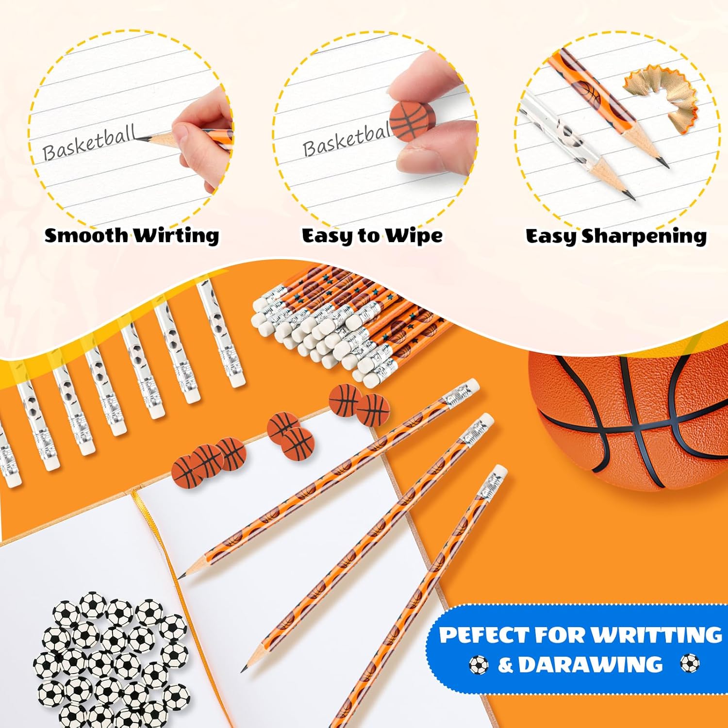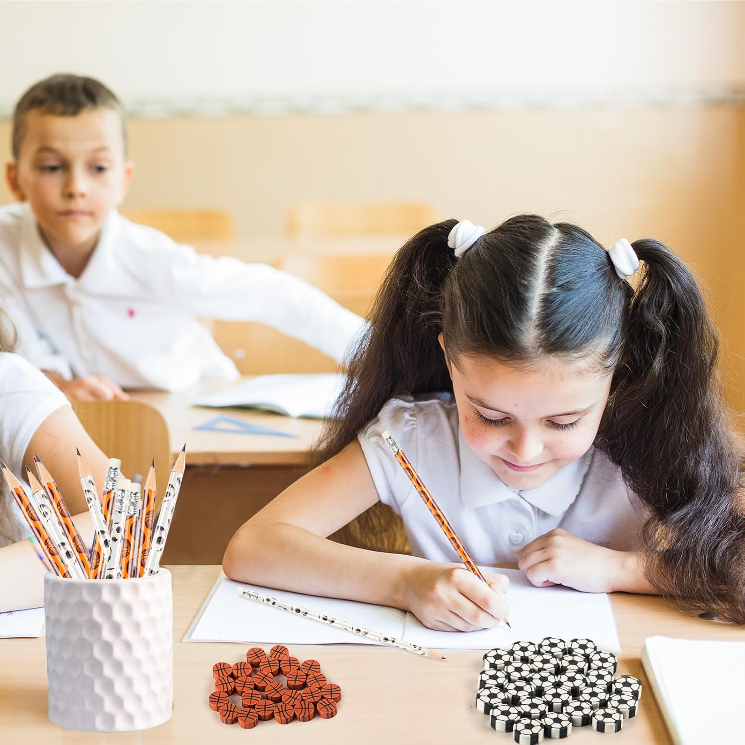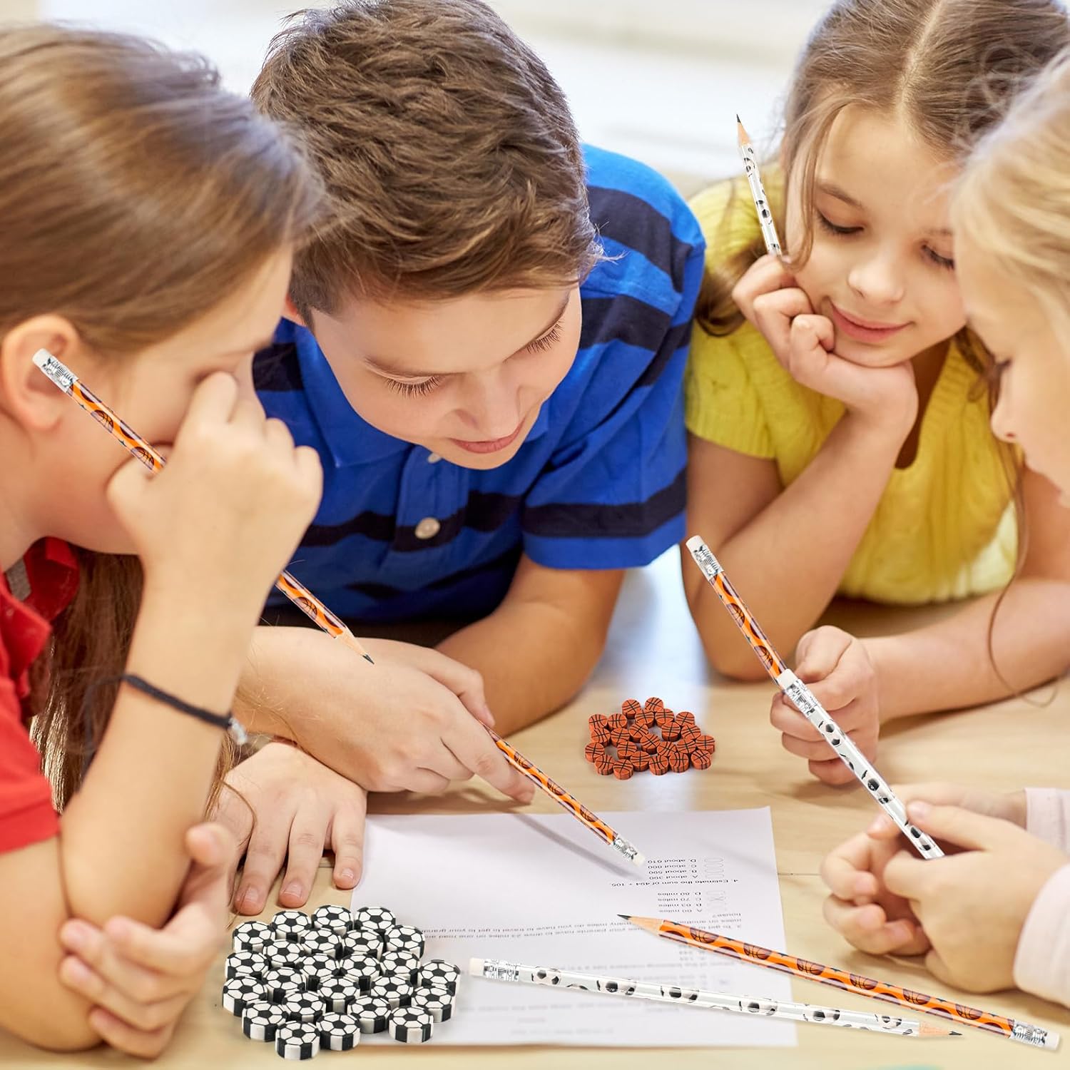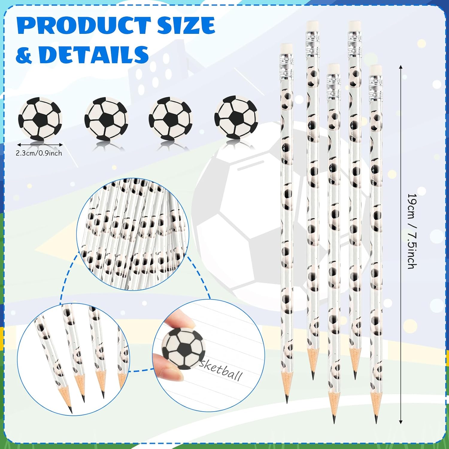 SET ACCESSORI SCUOLA CALCIO: 48 pezzi in totale, tra cui 24 matite, 24 gomme da basket. SET DI MATITE DA CALCIO: le matite sono realizzate in legno e carbonio, robuste e durevoli, scrittura scorrevole e facile da impugnare. SET GOMMA PER GOMME DA CALCIO: le gomme sono realizzate in gomma di alta qualità, non si strappano facilmente e permettono di cancellare facilmente la scrittura. PATTERN FOOTBALL: Sia la matita che la gomma hanno un design con elementi di basket, un tema decorativo e ovvio, adatto ai bambini che amano il calcio. USO VERSATILE: regalo ideale per i bambini in occasione di feste di compleanno, feste a tema, anniversari, Pasqua, Natale, premi in classe, premi di gioco e altri eventi e celebrazioni.