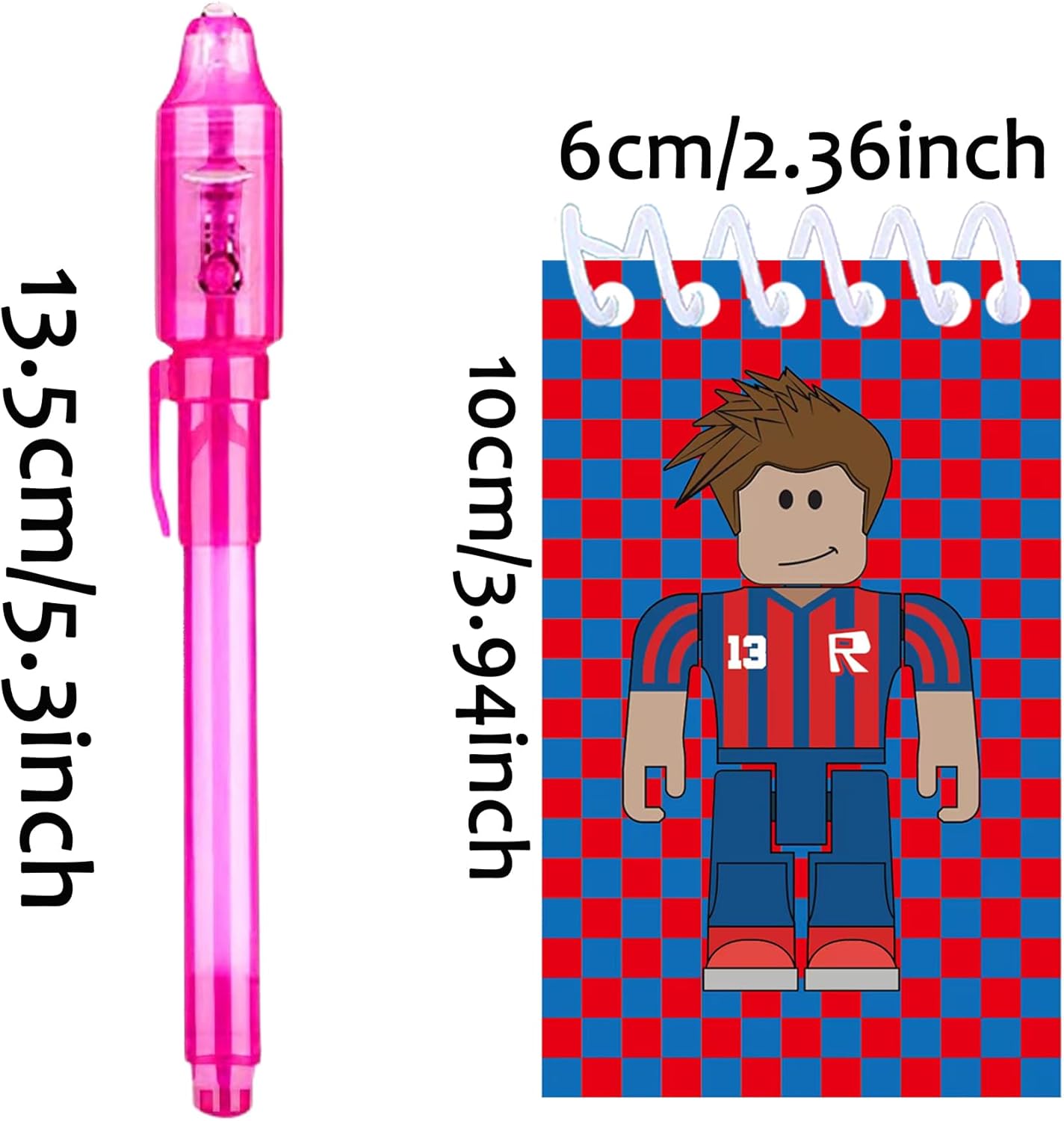 Bomboniere con blocchi robot per 12 ospiti; contiene 12 penne a inchiostro invisibile con luce UV e 12 mini taccuini (6x10 cm) Bomboniere perfette per Robot Blocks da utilizzare con il compleanno delle ragazze Forniture per feste Robot Blocks come bomboniere Robot Blocks gratuite, San Valentino, compleanno, regali di Pasqua, premi in classe Penne magiche per bomboniere Robot Blocks Scrivi sui mini taccuini con la penna a inchiostro a scomparsa. le incredibili penne magiche rimangono segrete finché la luce della penna non si illumina al buio, un'ottima alternativa disordinata a tutti i libri da colorare, blocchi robot multiuso, bomboniere per il riempimento di pinata, premi in classe; Feste di Natale, riempitivi di pinata; Riempitivi per cestini pasquali; Regali con scrigni del tesoro per la classe; Ottima idea per matrimoni, giochi di società per bambini. Le bomboniere Robot Blocks sono anche dei simpatici premi per le attività scolastiche, bomboniere, riempitivi per calze di carnevale e altro ancora, goditi i taccuini e la penna Roblox per te