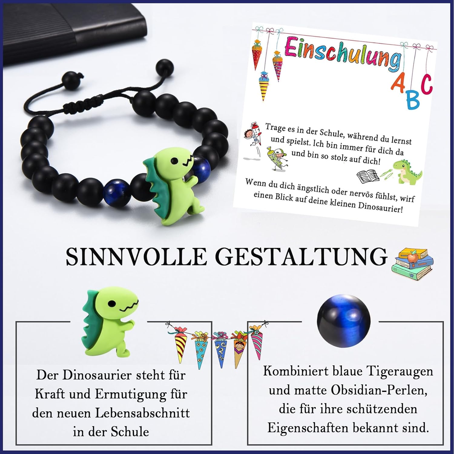 Regali per il rientro a scuola, braccialetto con dinosauro regalo per ragazzo per il rientro a scuola, regali per ragazzi, figlio, nipoti, nipote, fratello, figlioccio, 23 cm, pietre