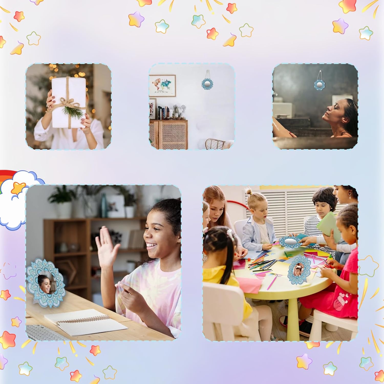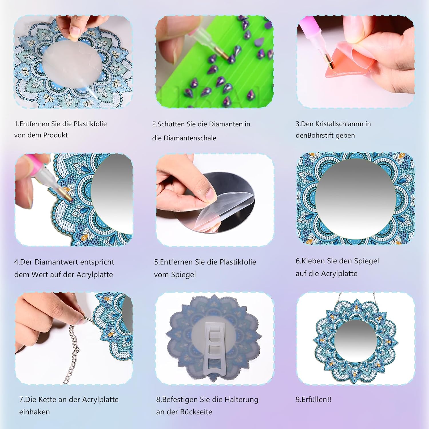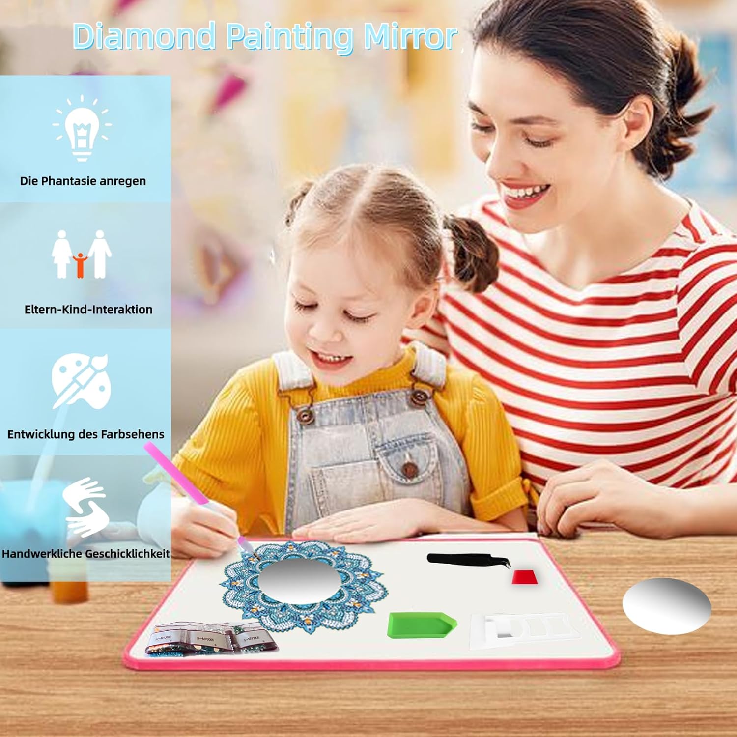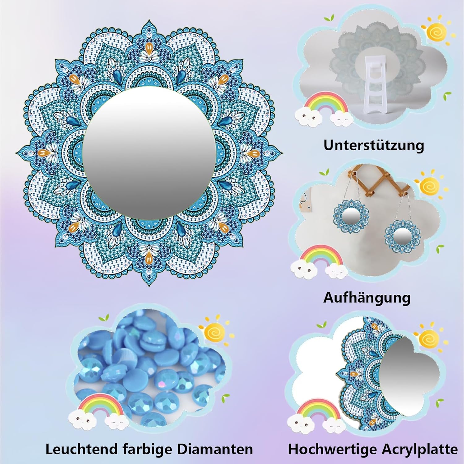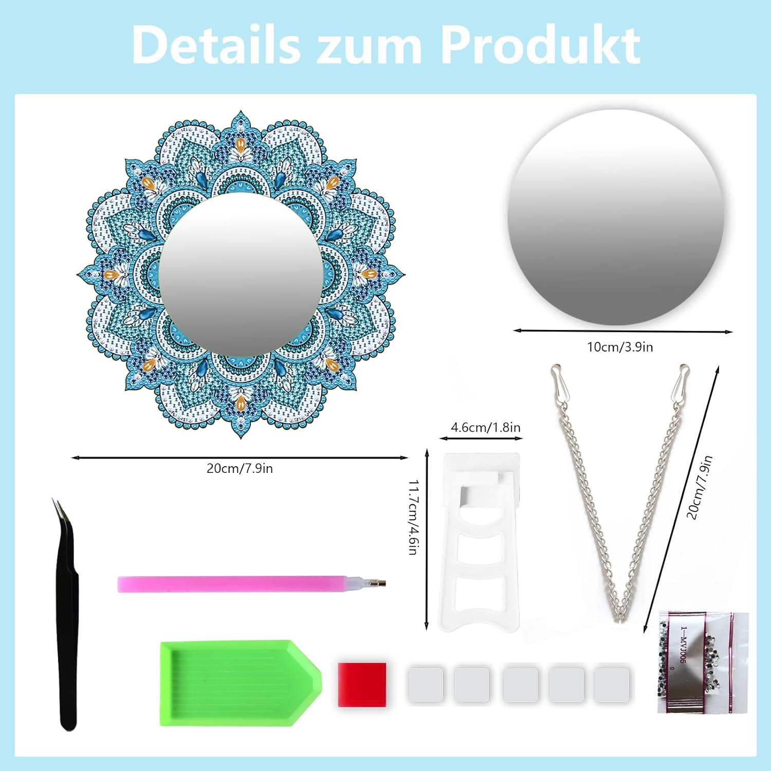 Specchio per pittura con mandala 5D: il set fai da te per bambini ha un motivo mandala chic e bello, delicato ed elegante, sembra squisito e opaco. Set fai da te per bambine da 6, 7, 8, 9, 10, 11, 12 anni. Set fai da te per bambini dai 6 ai 12 anni: lo specchio da trucco è un set fai da te per bambini, ragazzi e adulti. Non solo può sviluppare le capacità pratiche, la pazienza e la resistenza dei bambini, ma anche divertirsi fai da te. Materiale di qualità: i giocattoli a specchio con mandala sono principalmente realizzati in vetro di alta qualità e acrilico, forti e durevoli, forte aderenza, i diamanti non cadono facilmente, così potrete sperimentare il divertimento del fai da te. Facile fai da te: gli specchi da trucco per bambini sono molto facili da usare per bambini e principianti nella pittura a diamante, tutti i passaggi sono disegnati digitalmente. Basta scegliere il colore giusto e incollare i diamanti con una penna. Ampiamente utilizzato: il diamond painting 5D per bambini è delicato ed elegante, può essere utilizzato non solo per decorazioni, ma anche per kit fatti a mano, giocattoli per bambini e bellissimi regali per bambine di 6, 7, 8, 9, 10, 11 anni.