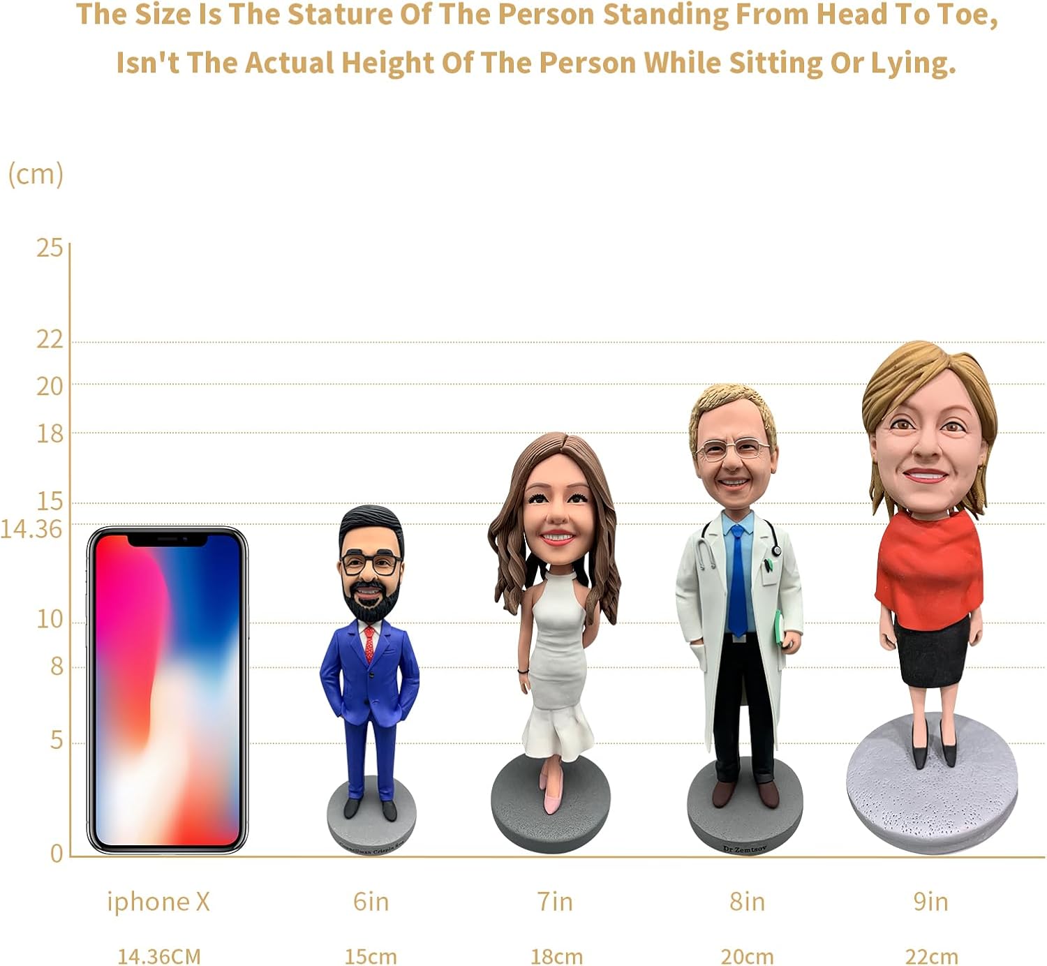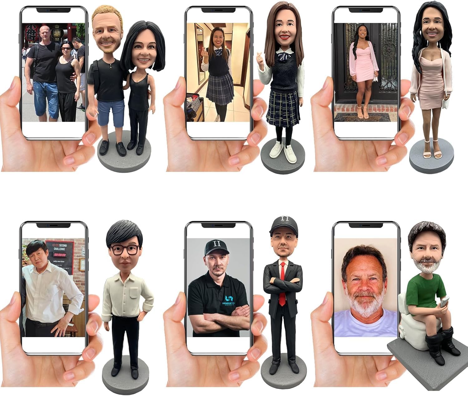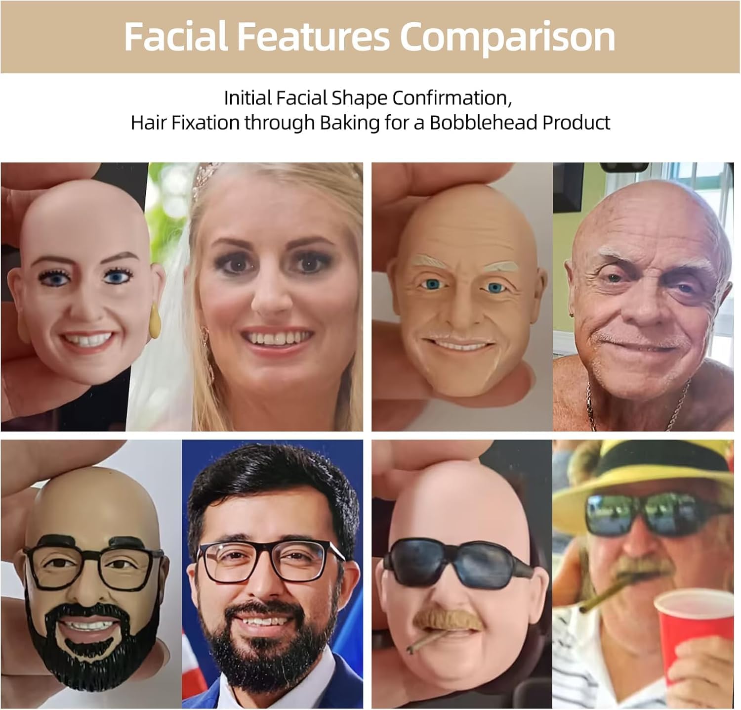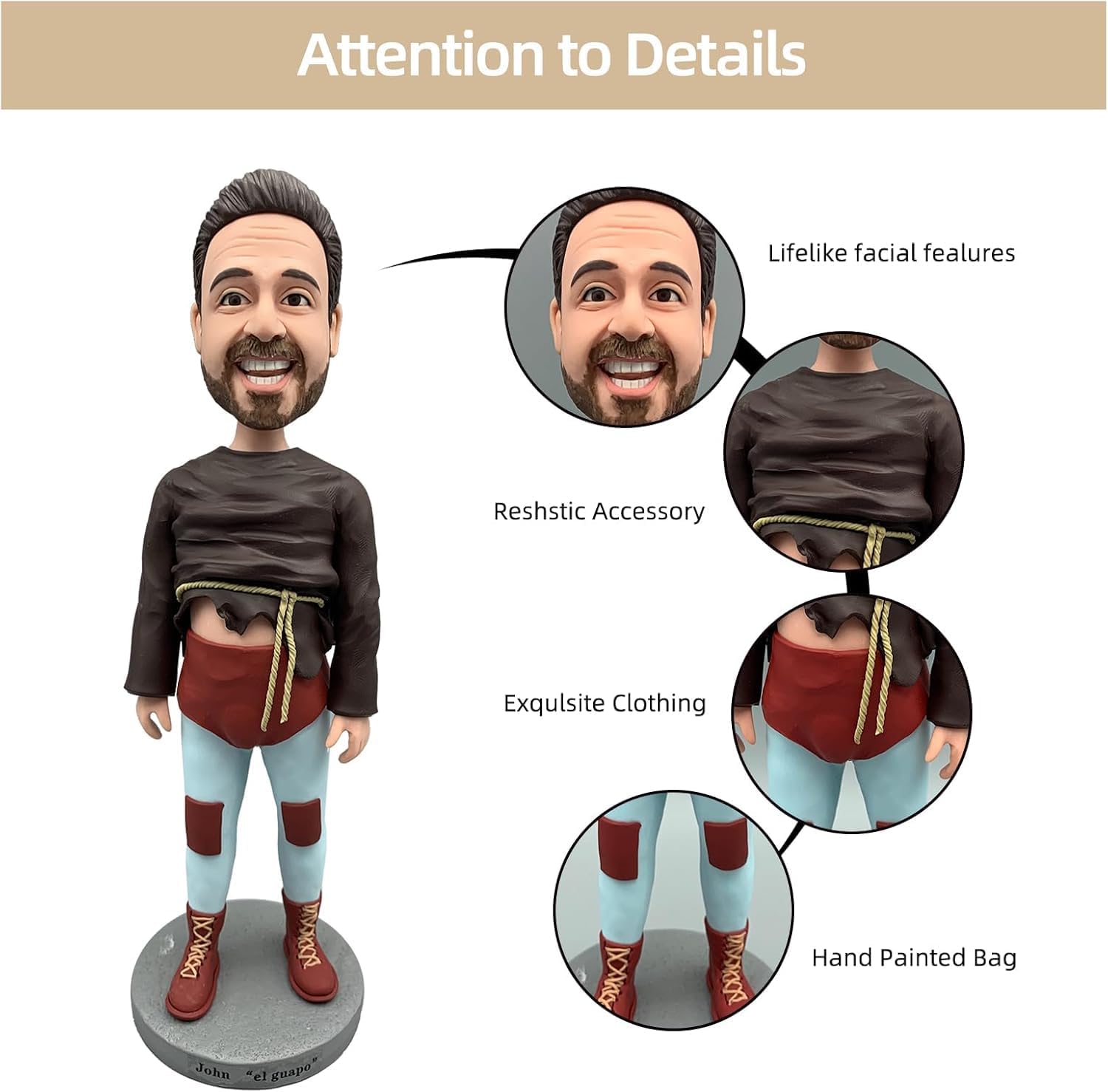 Somiglianza realistica: cattura l'essenza di una persona cara o di te stesso con questi bobblehead meticolosamente realizzati con dettagli realistici del viso e acconciature. Abiti personalizzabili: ogni bobblehead viene vestito con un abito elegante, con la possibilità di personalizzare abbigliamento e accessori per abbinare lo stile del destinatario. Costruzione durevole: realizzati con materiali di alta qualità, questi bobblehead sono progettati per un divertimento e una visualizzazione di lunga durata. Deliziosa idea regalo: perfetti per compleanni, lauree, pensionamenti o qualsiasi occasione speciale, questi pompon unici sono un regalo caro e indimenticabile. Ricordo da collezione: non solo un articolo di novità, questi bobbleheads servono come affascinanti oggetti da collezione che possono essere orgogliosamente mostrati e apprezzati per gli anni a venire.