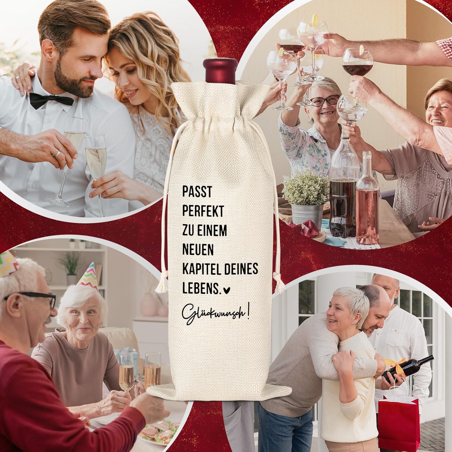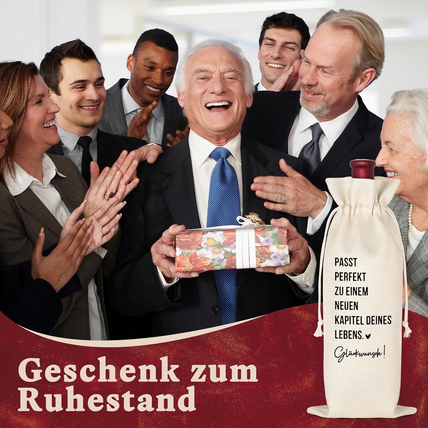 Regalo di pensionamento: questa borsa per vino è il compagno perfetto per il nuovo capitolo della vita di un festeggiato in pensione o di addio. Con il sincero detto "PERFETTAMENTE ADATTO PER UN NUOVO CAPITOLO DELLA TUA VITA. Congratulazioni!" su entrambi i lati trasmette non solo cura, ma anche profondo apprezzamento - una dichiarazione di stile per una transizione indimenticabile. Unisce umorismo ed emozione, rende la celebrazione indimenticabile e sarà ricordata a lungo come un ricordo amorevole. Ideale per la pensione, i cambiamenti di lavoro o le fasi della vita che segnano un nuovo inizio. 【Decorazione con cuore】 La borsa non è solo un regalo, ma anche un elemento che attira l'attenzione durante la celebrazione! La potente frase in caratteri moderni aggiunge un tocco personale all'arredamento della festa - sia sul buffet, come decorazione da tavolo o in mano a chi festeggia: irradia gioia e sottolinea l'importanza del momento. 【Materiale di iuta robusto e pratica cordoncino】 Realizzata in iuta resistente e di alta qualità (14 cm×34 cm), la borsa offre una protezione affidabile per bottiglie di vino o champagne. Il pratico cordoncino permette una chiusura sicura e un'apertura facile, mentre il formato spazioso è perfetto per bottiglie standard da 750 ml (vino, spumante, champagne). Un regalo che unisce funzionalità ed emozione in uno 【Servizio clienti】 Acquista con fiducia. Tutti i nostri articoli sono coperti dalla nostra garanzia di rimborso per assicurarti di ricevere un prodotto di qualità senza difetti. Se avete domande, non esitate a contattarci. Ti offriremo una soluzione soddisfacente