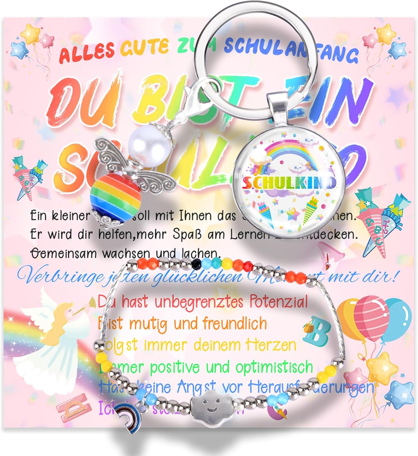 Regali unici per la scuola: braccialetto per bambini con ciondolo a forma di angelo custode per ragazze che vengono a scuola. Il ciondolo simboleggia la benedizione e la protezione. SCUOLA 2025 RAGAZZA: il bracciale con angelo custode è ben progettato e inciso con la parola "scolaretto". Perfetto come regalo per l'inizio della scuola o come sorpresa nel cono della scuola. Misura regolabile: la lunghezza del braccialetto elastico per bambini della scuola è di 16,5 cm e si adatta alla maggior parte delle ragazze. Bella confezione: viene fornito con un biglietto ben confezionato con auguri e parole di incoraggiamento per l'inizio della scuola. Idea regalo versatile: perfetta per l'inizio della scuola, l'inizio della scuola e molto altro ancora. Regalo ideale per l'inizio della scuola e per le prime elementari.
