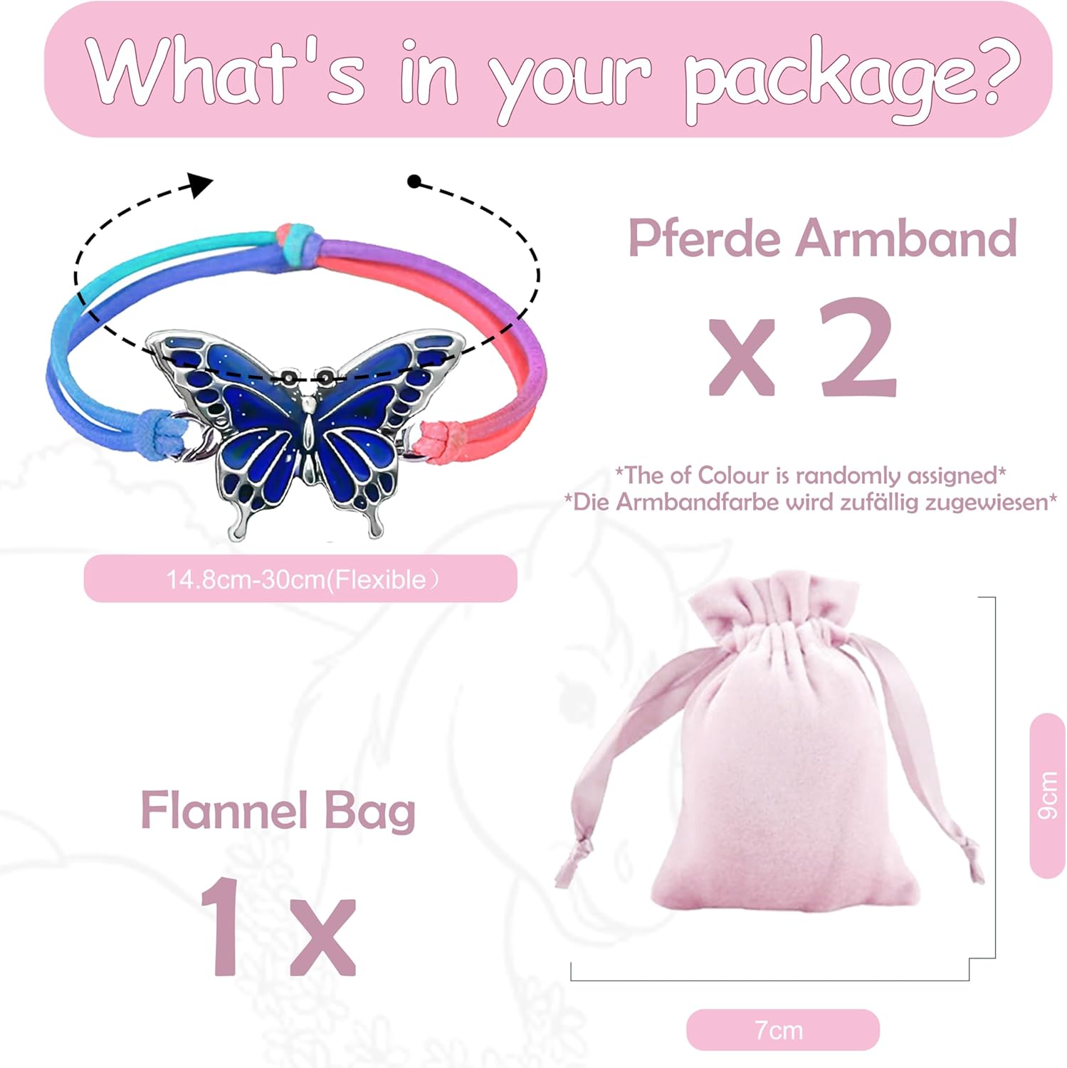 Regalo per ragazza cavallo, braccialetto dell'umore da 2 pezzi per ragazze (scolorimento dovuto alla temperatura) con borsa per gioielli da 1 pezzo, borsa da festa, regali di compleanno per bambini per ragazze, braccialetto dell'amicizia