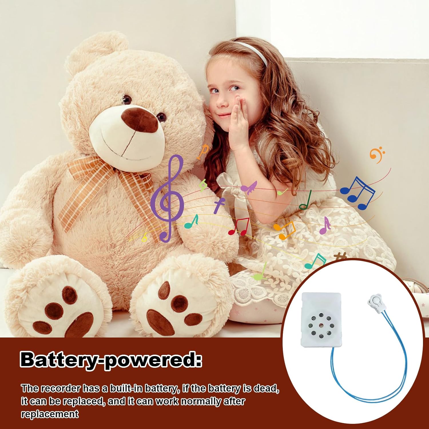 Esperienza di registrazione senza soluzione di continuità: catturare momenti preziosi attraverso la funzione di registrazione di questo peluche. Basta premere il pulsante per registrare suoni o canzoni e rilasciare per fermarti. Partner rilassante: l'atmosfera dei tuoi con il nostro lussuoso registratore di giocattoli, progettato per offrire una riproduzione senza rumore e una chiara qualità del suono, rendendolo strumento per calmare i bambini e gli animali domestici. Batteria duratura: massimizza la tua esperienza con un lussuoso registratore di giocattoli che viene fornito con una batteria integrata per un basso consumo di energia, impedendo la necessità di sostituti frequenti. Delizia fai -da -te: trasforma i tuoi animali di peluche in amici vivaci con questo lussuoso registratore di giocattoli. Crea facilmente regali fai -da -te unici e affascinanti o usali per rendere gli orsi e altri giocattoli più attraenti. Presente premuroso: conservi messaggi con questo lussuoso registratore di giocattoli, per dare un regalo di compleanno o un modo per mostrare ai propri durante le vacanze.
