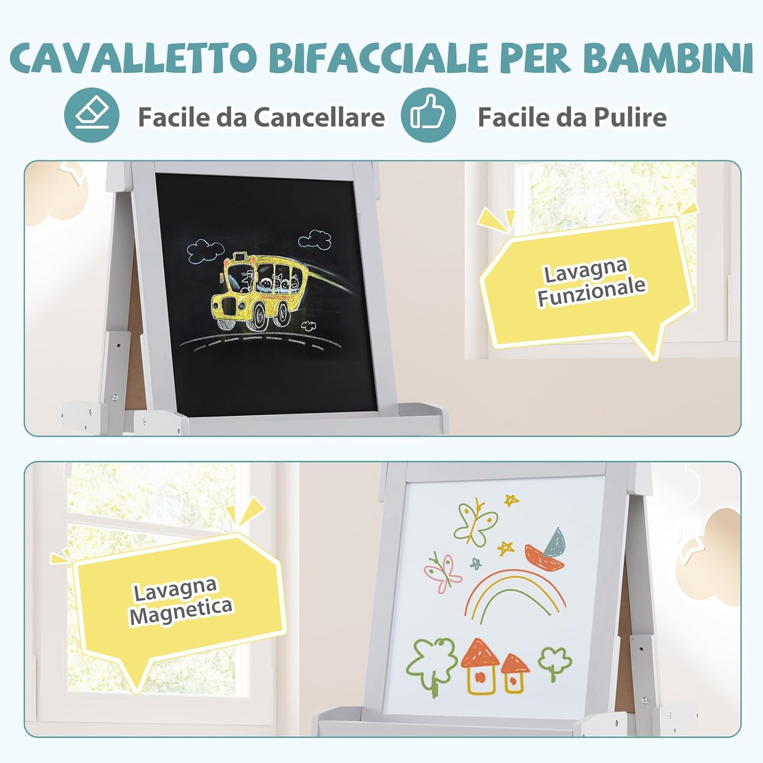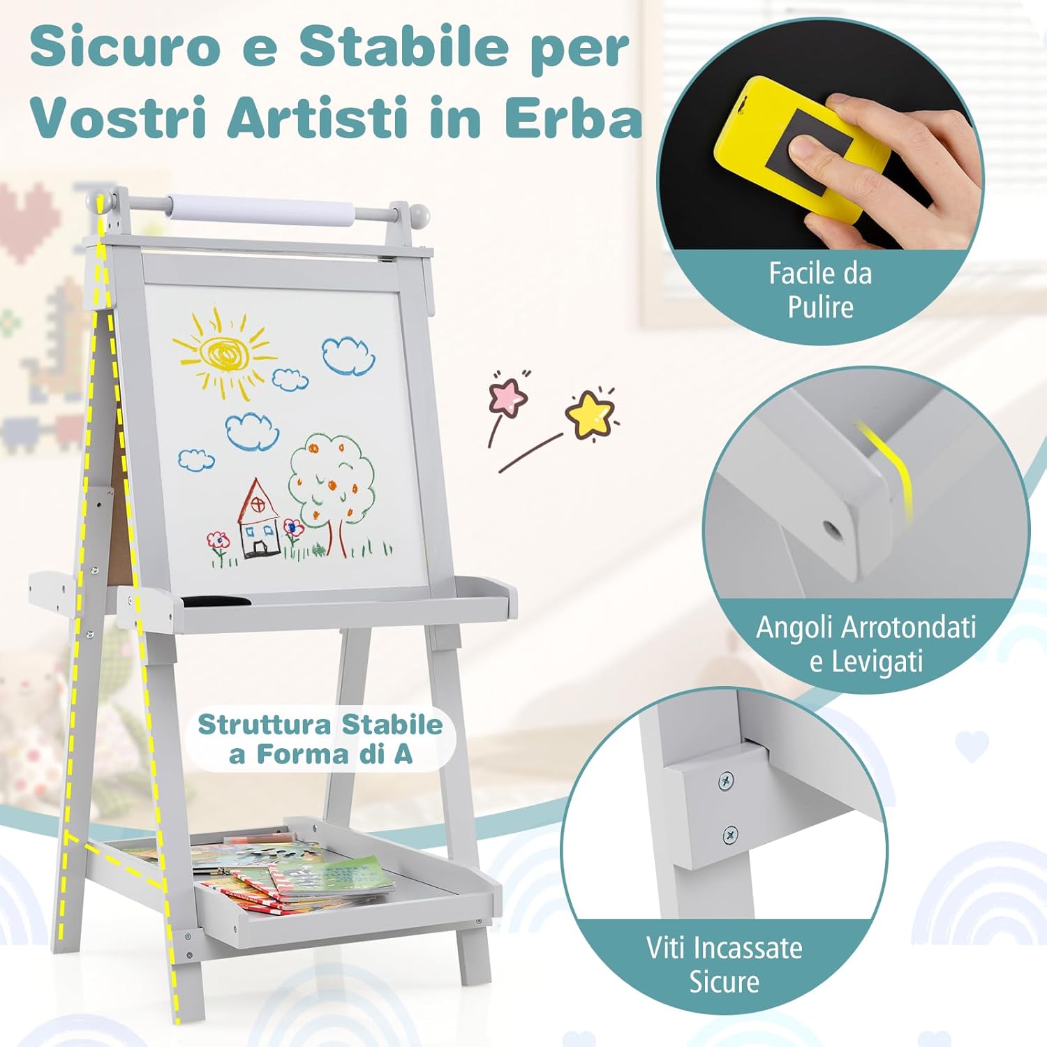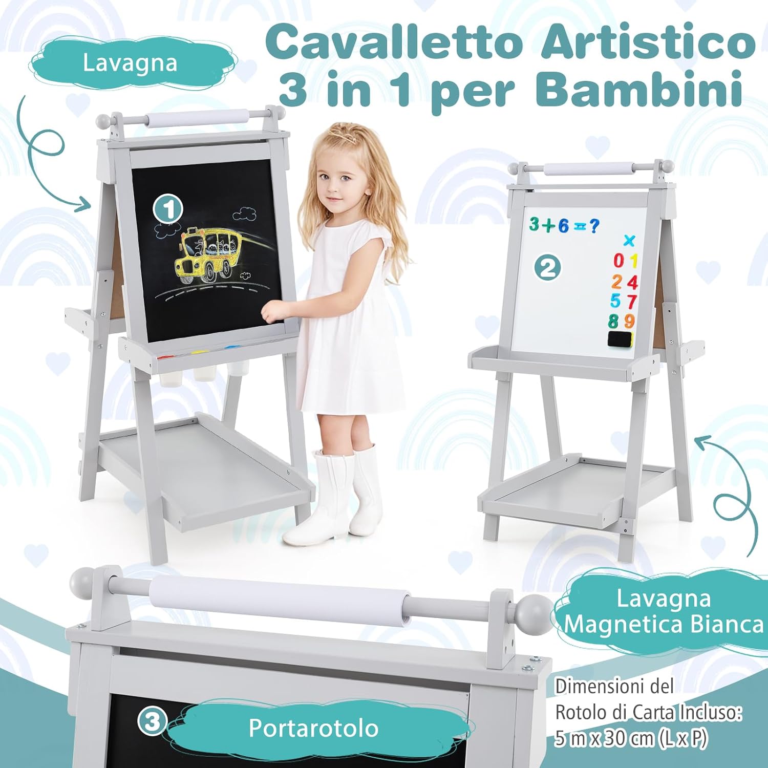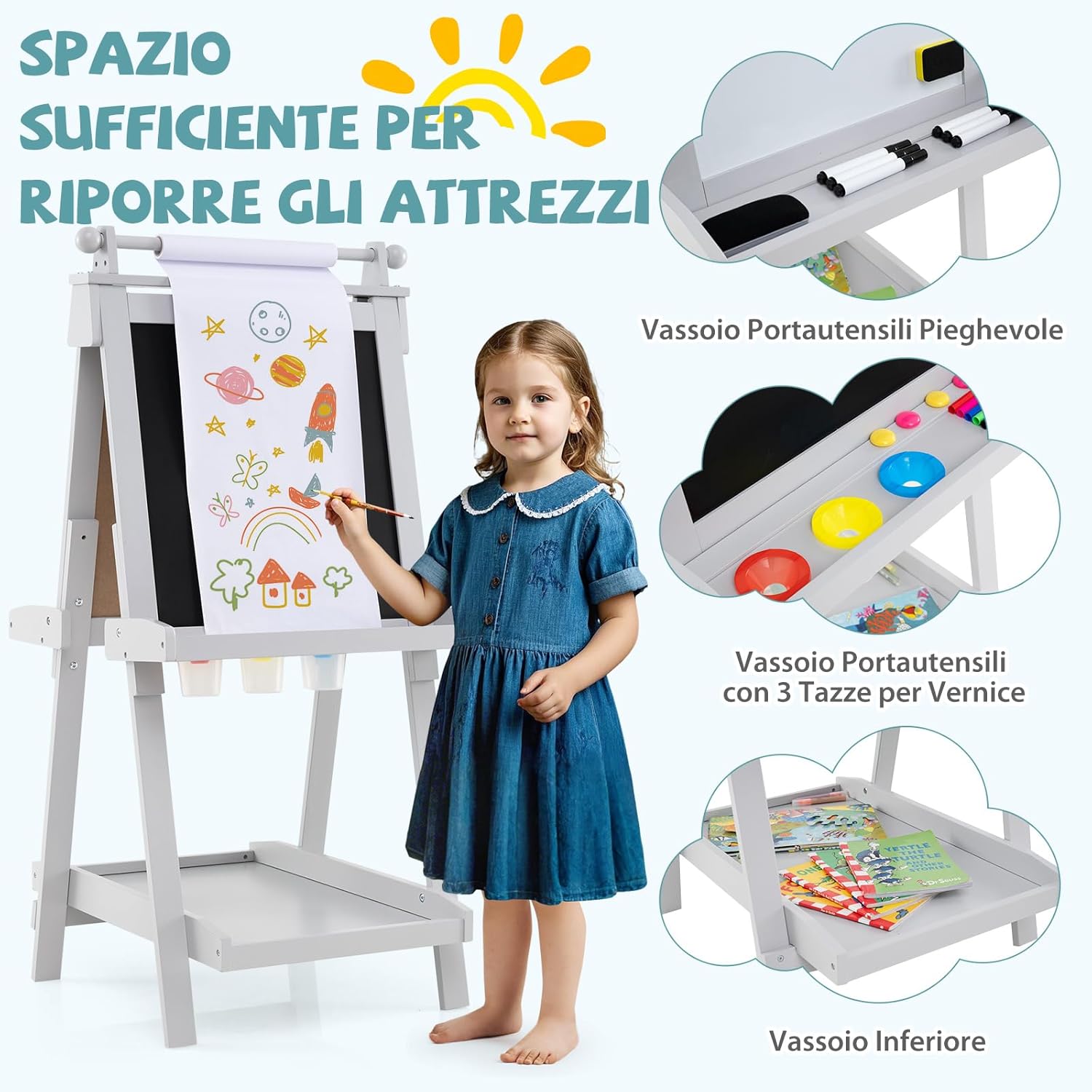 ★Regolazione Flessibile★ Il cavalletto ha tre regolazioni di altezza di 106 cm, 116 cm e 126 cm, adattandosi facilmente alle esigenze di altezza dei bambini di diverse età, e può essere utilizzato dai bambini dalla scuola materna fino ai primi anni di scuola, accompagnando la crescita dei bambini e a lungo termine pratico e non inutilizzato. ★Design a Doppia Faccia★ Un lato della lavagna può essere utilizzato per disegni con gesso, e l'altro lato è adatto per pennarelli ad acqua; le due esperienze di pittura possono essere cambiate liberamente per soddisfare le diverse esigenze di creatività dei bambini e raddoppiare il divertimento della pittura. ★Stoccaggio Considerato★ La parte centrale e inferiore del cavalletto sono dotate di vassoio di stoccaggio, facile da conservare pennelli, gessi e altri piccoli oggetti; tre bicchieri di plastica hanno un posto esclusivo per mettere la vernice, per coltivare le abitudini di ordine infantile e mantenere l'ambiente creativo in ordine. ★Archiviazione Pieghevole★ Il cavalletto infantile ha un design pieghevole, facile da riporre quando non viene utilizzato, non occupa spazio in casa; leggero e facile da conservare, è l'opzione ideale per famiglie piccole, per permettere ai bambini di godere del divertimento di dipingere in qualsiasi momento. ★Facile da Pulire★ La superficie del pannello di disegno è facile da cancellare, i segni di gesso e pennarello ad acqua possono essere puliti senza alcuno sforzo; il design del rotolo di carta consente ai bambini di esprimere la loro creatività e può essere sostituito quando hanno finito di disegnare.