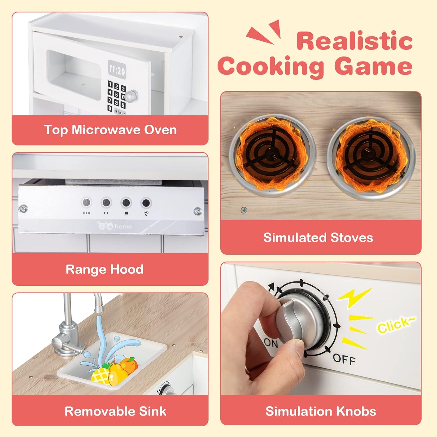 ✅★Mini Cucina Realistica★ Questa cucina giocattolo è dotata di microonde, forno, fornelli e frigorifero per simulare una vera cucina. I bambini possono imparare a lavare, tagliare e cucinare, come il real chef. ✅★Design Angolare & Combinazione Libera★ La parte di frigorifero e la parte principale della cucina possono essere combinate. liberamente. Grazie al suo design angolare salvaspazio, è adatto a qualsiasi angolo della cameretta dei bambini. ✅★Tanto spazio★ La credenza consente di riporre piatti, tazze e utensili da cucina ecc. è una opportunità perfetta dai piccoli per imparare a riordinare la cucina e essere responsabile del disordine. ✅★Materiali Atossici e Sicuri★ Realizzata in PP premium e pannello di qualità, la cucina giocattolo ha una struttura robusta. Il rivestimento con vernice ecologica è sicuro e inodore. Angoli levigati per evitare graffi. ✅★Ottimo Come Idea Regalo★ I giochi di ruolo influenzano positivamente la creatività e contribuiscono allo sviluppo del bambino. È il regalo perfetto per compleanni, Natale e altre feste.