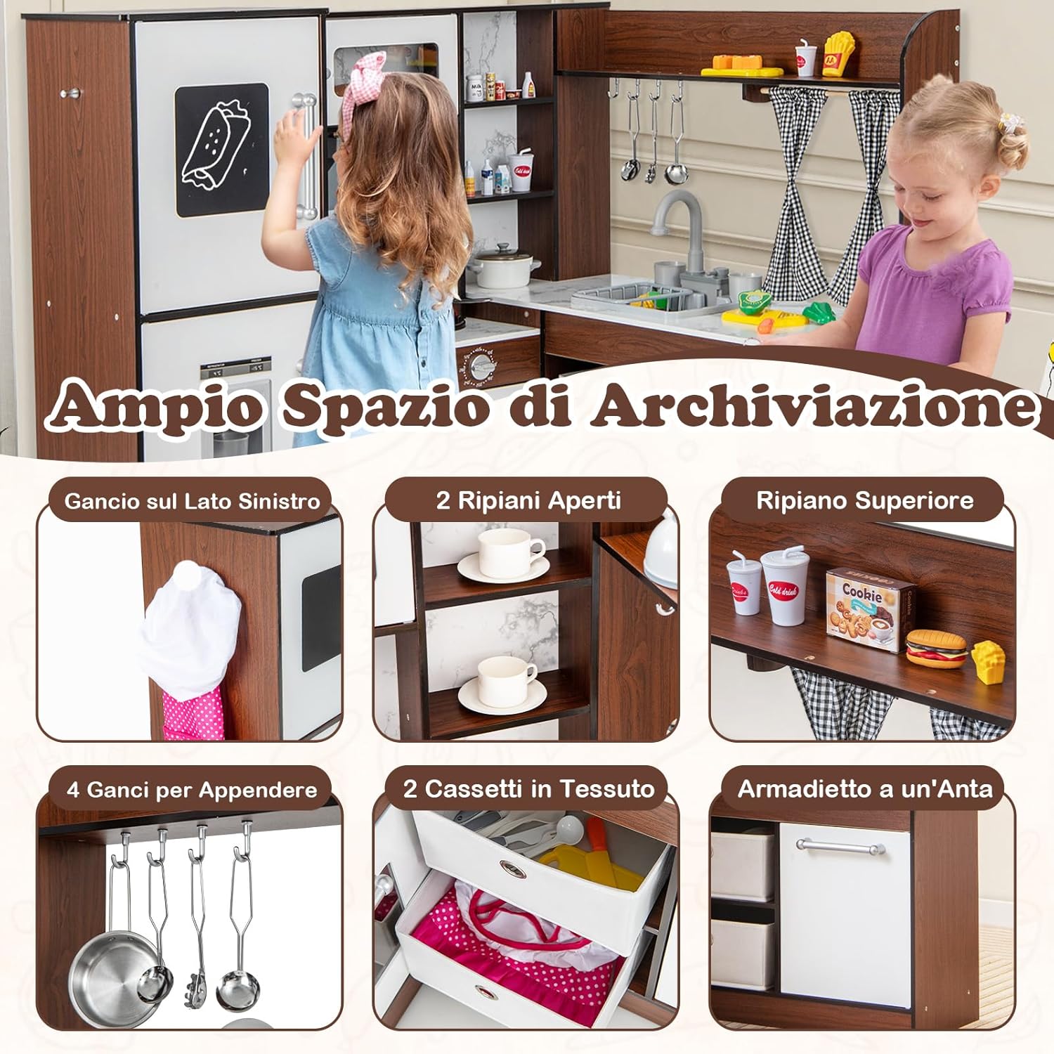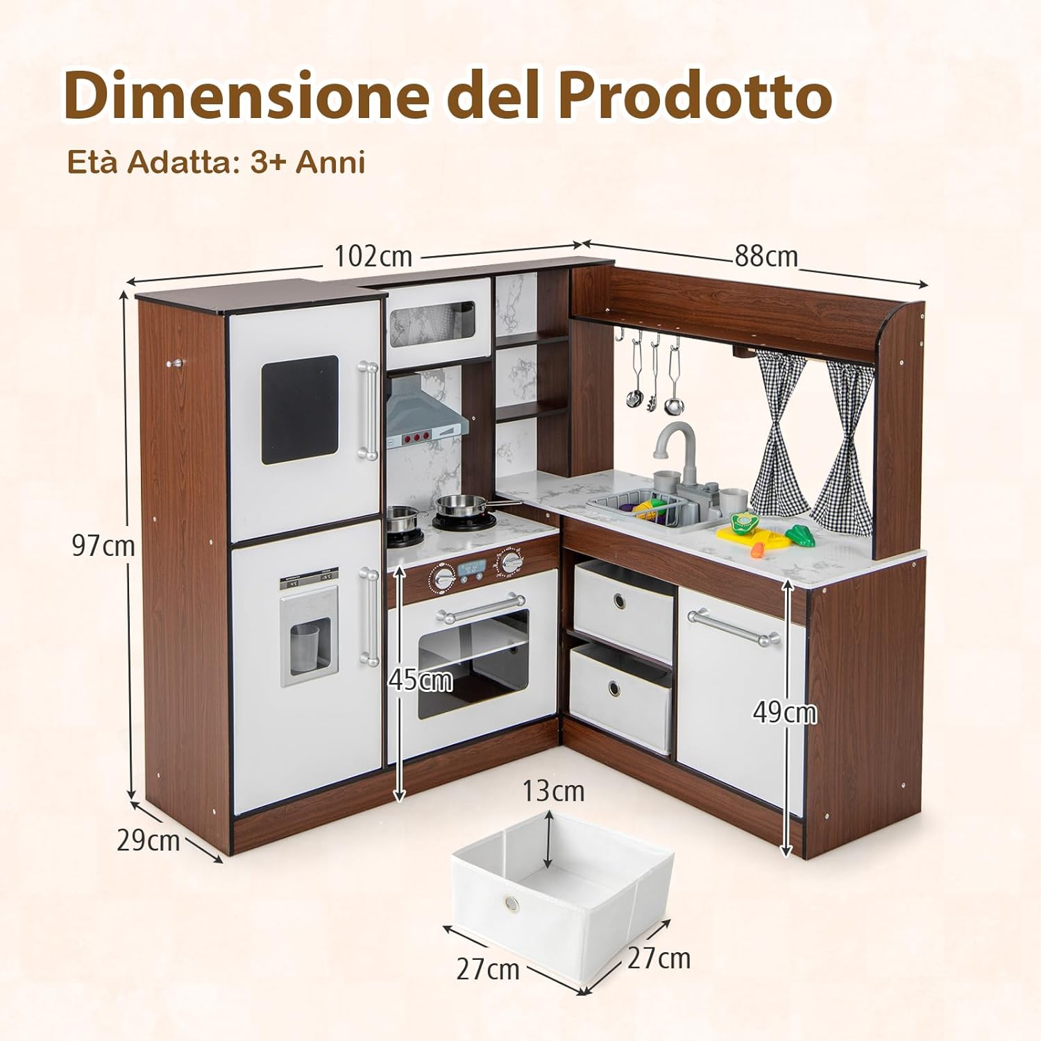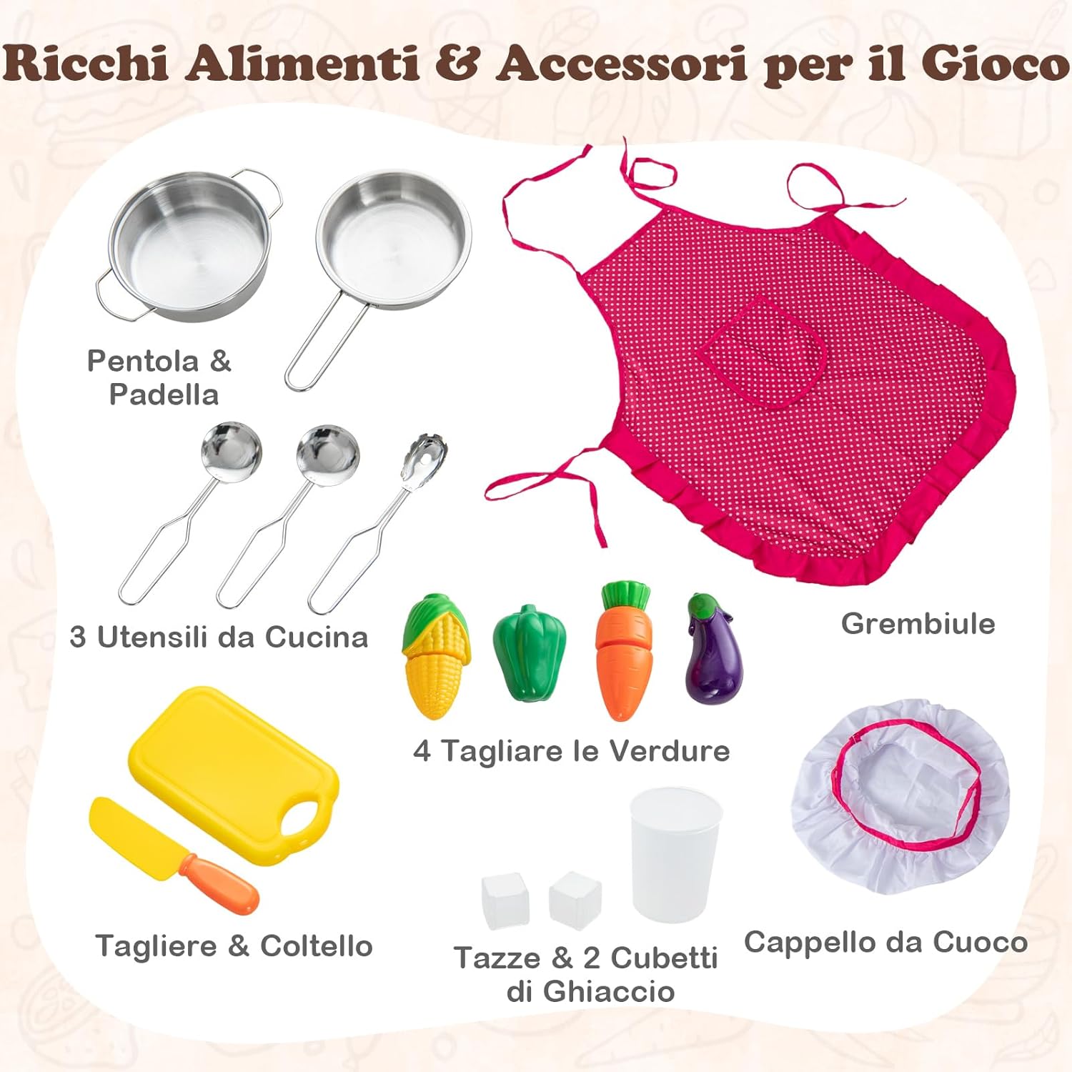 ✅★Mini Cucina ★ Questa cucina giocattolo è dotata di microonde, forno, fornelli, frigorifero e macchina per il ghiaccio per simulare una vera cucina. Indossando grembiule e cappello, il piccolo può imparare a lavare, tagliare e cucinare, come il real chef. ✅★Esperienza di Cucina Realistica★ Premendo il pulsante di macchina per il ghiaccio, i cubetti di ghiaccio cadranno nella tazza. Le manopole del gas dei fornelli producono gli effetti di luce e suoni quando vengono girate. Richiede 6 batterie AAA (non incluse). ✅★Circolazione dell'Acqua★ Questo set di cucina comprende un rubinetto girevole a 360°, un lavello rimovibile e un sistema di circolazione dell'acqua, che consente di simulare il lavaggio di frutta e verdura. ✅★Ampio Spazio di Archiviazione★ La credenza consente di riporre piatti, tazze e utensili da cucina ecc. Il frigorifero apribile può essere utilizzato per conservare "frutta e formaggio". Inoltre, il piano di lavolo spazioso permette ai bambini di cucinare insieme. ✅★Giocattoli Educativi Montessori★ I giochi di ruolo influenzano positivamente la creatività, stimolano l’immaginazione e aumentano le capacità sociali. È il regalo perfetto per compleanni, Natale e altre feste.