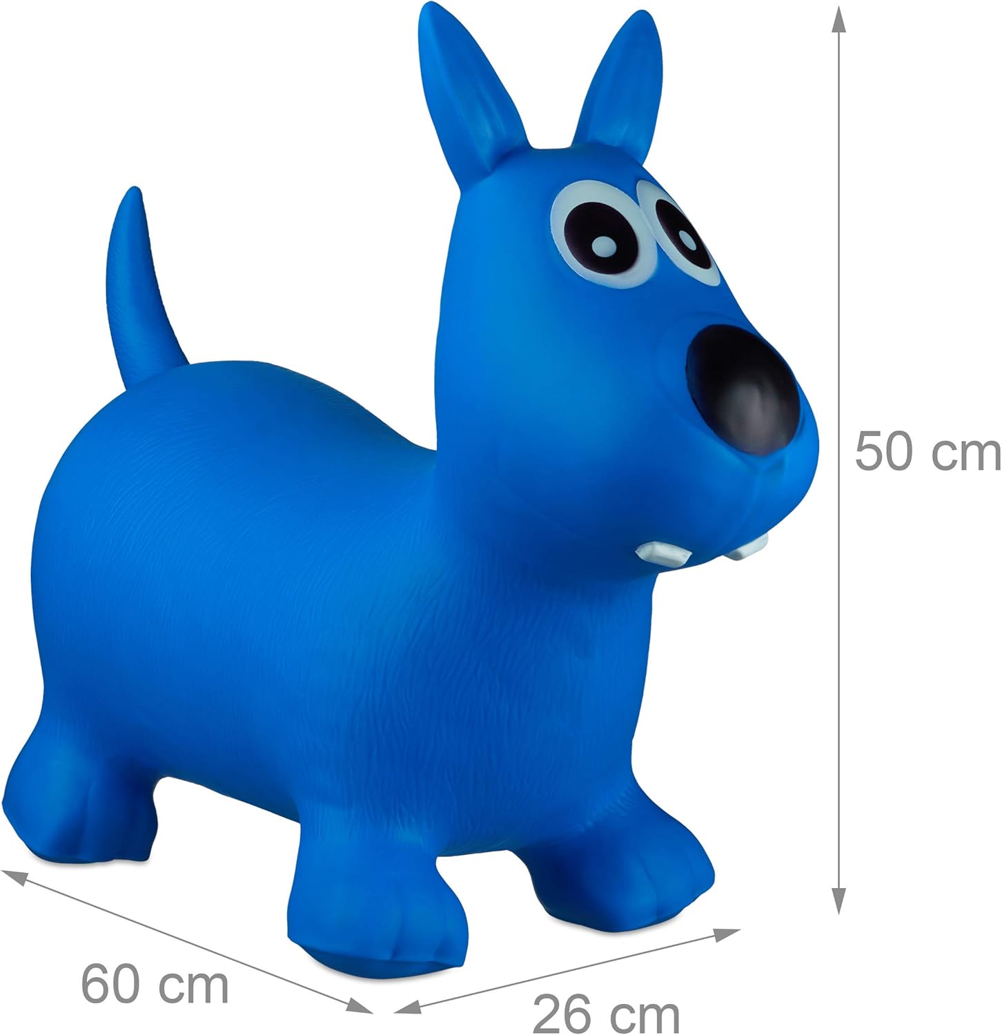Grazioso: : divertente cagnolino cavalcabile per bambini - giocattolo di colore blu intenso Attività: il pupazzo cavalcabile regge fino a 50 kg - migliore l'equilibrio e il coordinamento Per interni ed esterni: divertimento assicurato in casa e in giardino - Altezza seduta: 25 cm ca. Fantastica idea regalo: giocattolo gonfiabile per bimbe e bimbi - con pompa manuale inclusa Dettagli: misure complessive giocattolo HxLxP: 50 x 26 x 60 cm ca. - in plastica - BPA-free