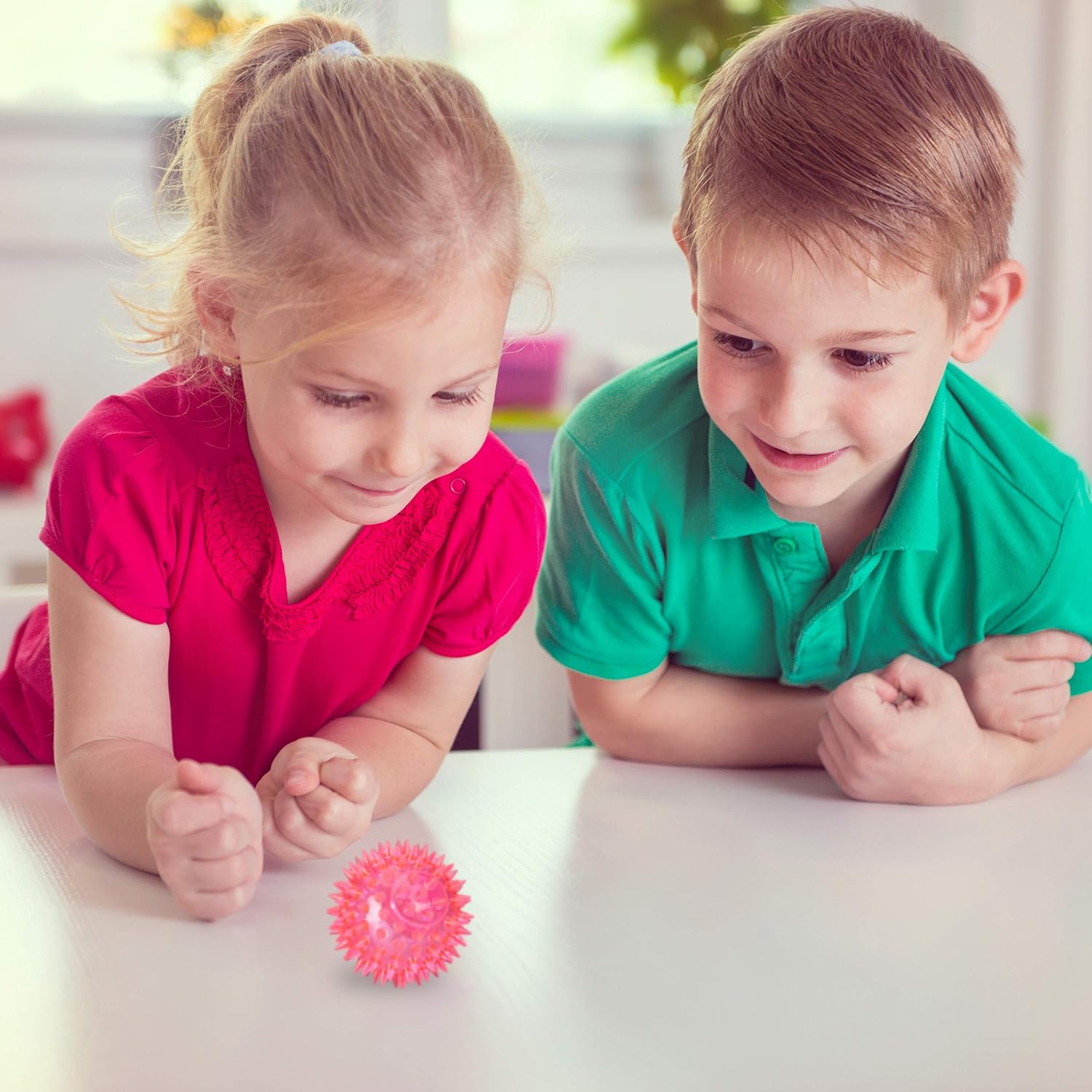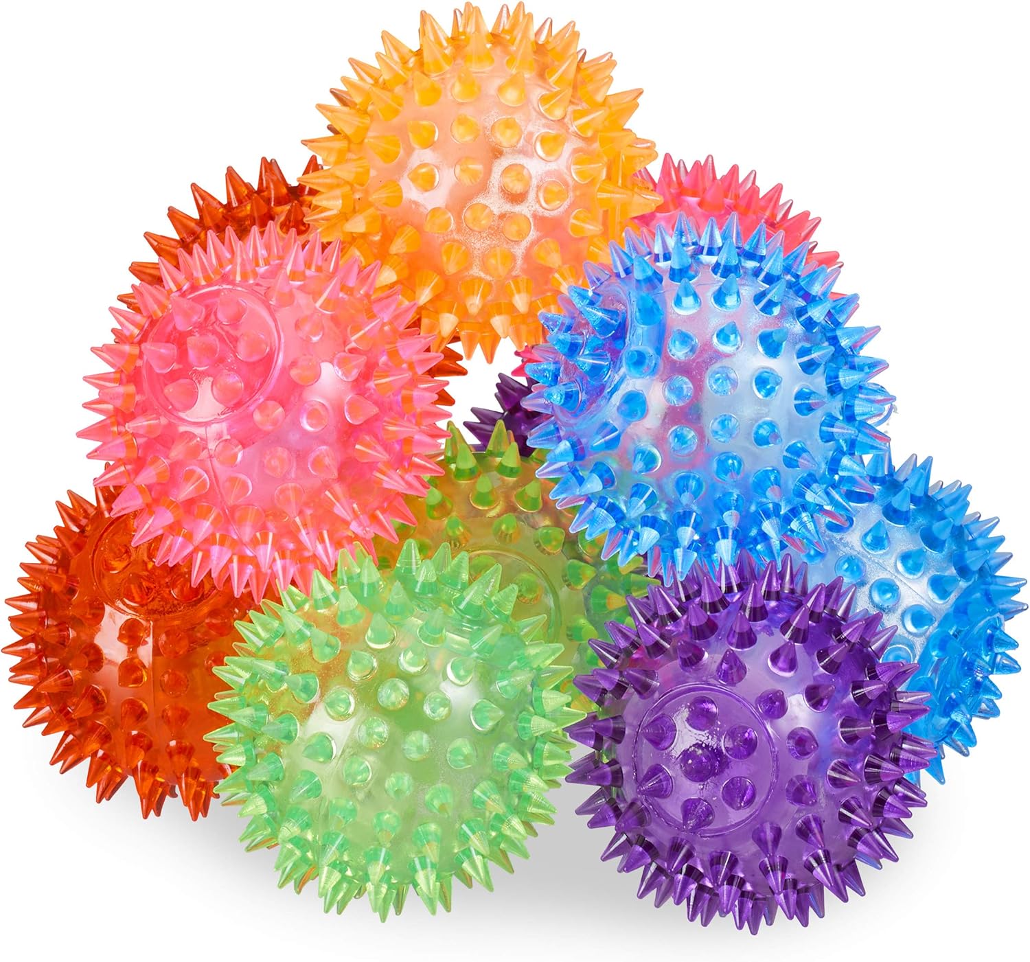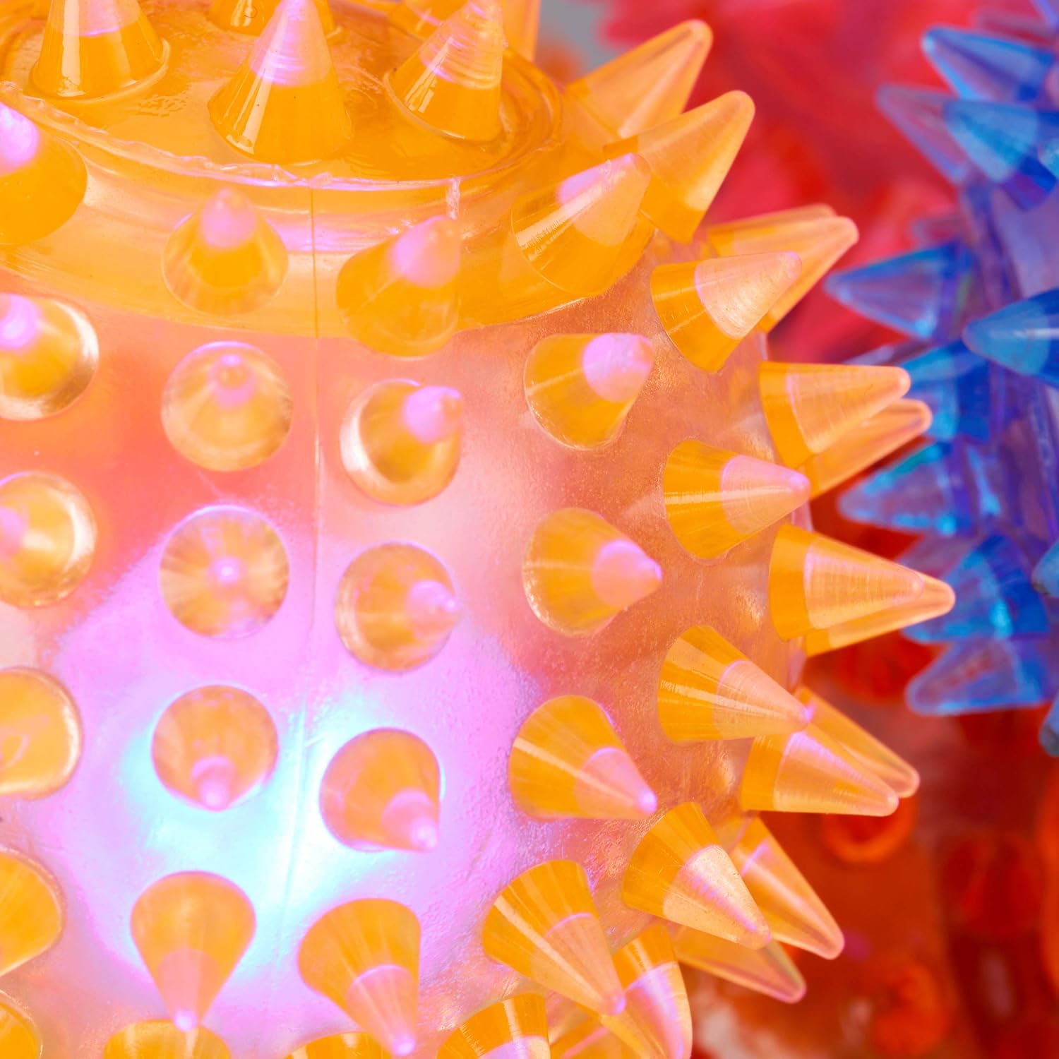 Set da 48 palline in 6 diversi colori, 8 in rosso, blu, verde, rosa, viola e arancione Con gommini: pallina con gommini morbidi per una piacevole sensazione al tatto – per saltare e impastare Luminoso: LED lampeggia in rosso e blu durante il movimento – Grande divertimento per ragazze e ragazzi Per bambini: i ciondoli colorati sono il regalo ideale per compleanni e altre feste Dettagli: diametro della gomma gigante: circa 6,5 cm - In gomma - In confezione decorativa per display